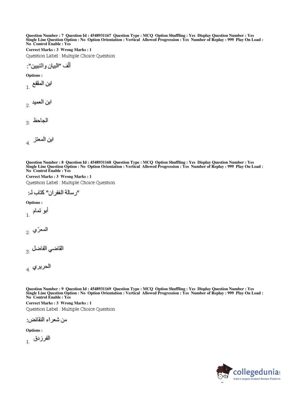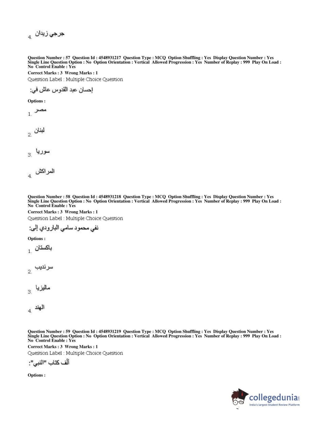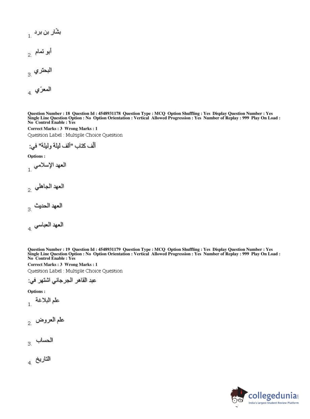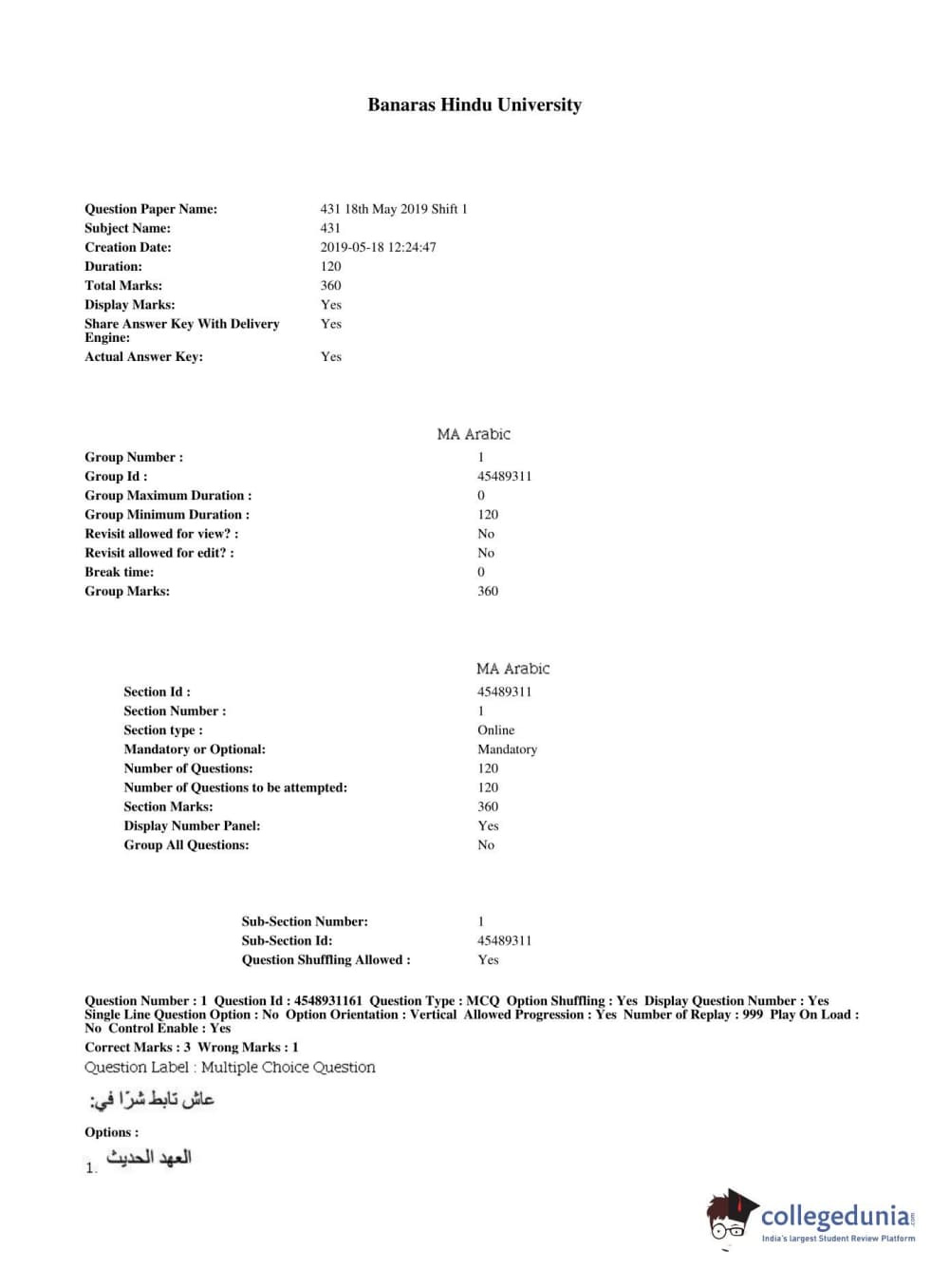 BHU PET 2019 MA IN ARABIC Question Paper with Answer Key PDFs, Shift 1