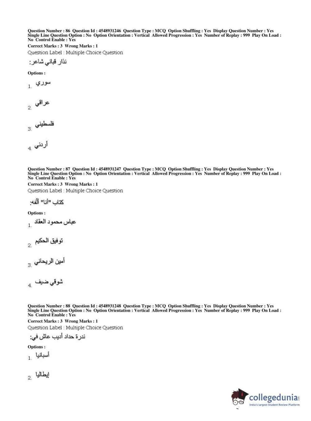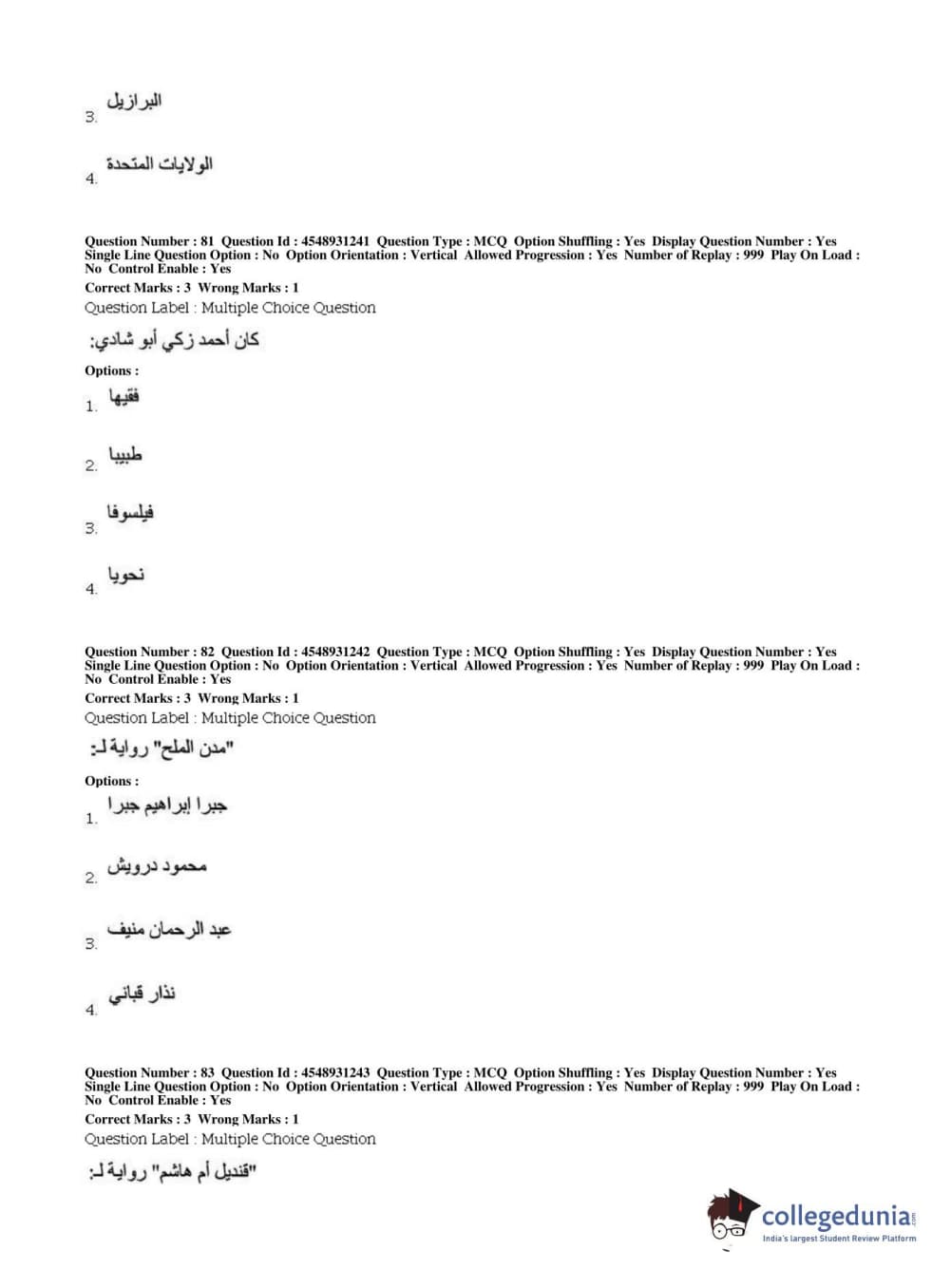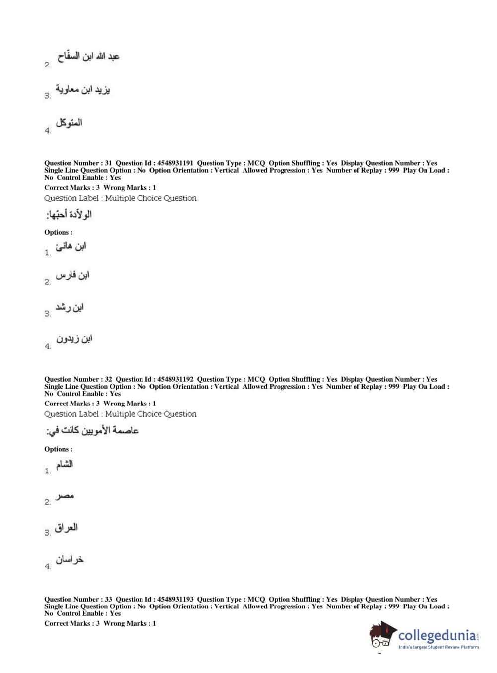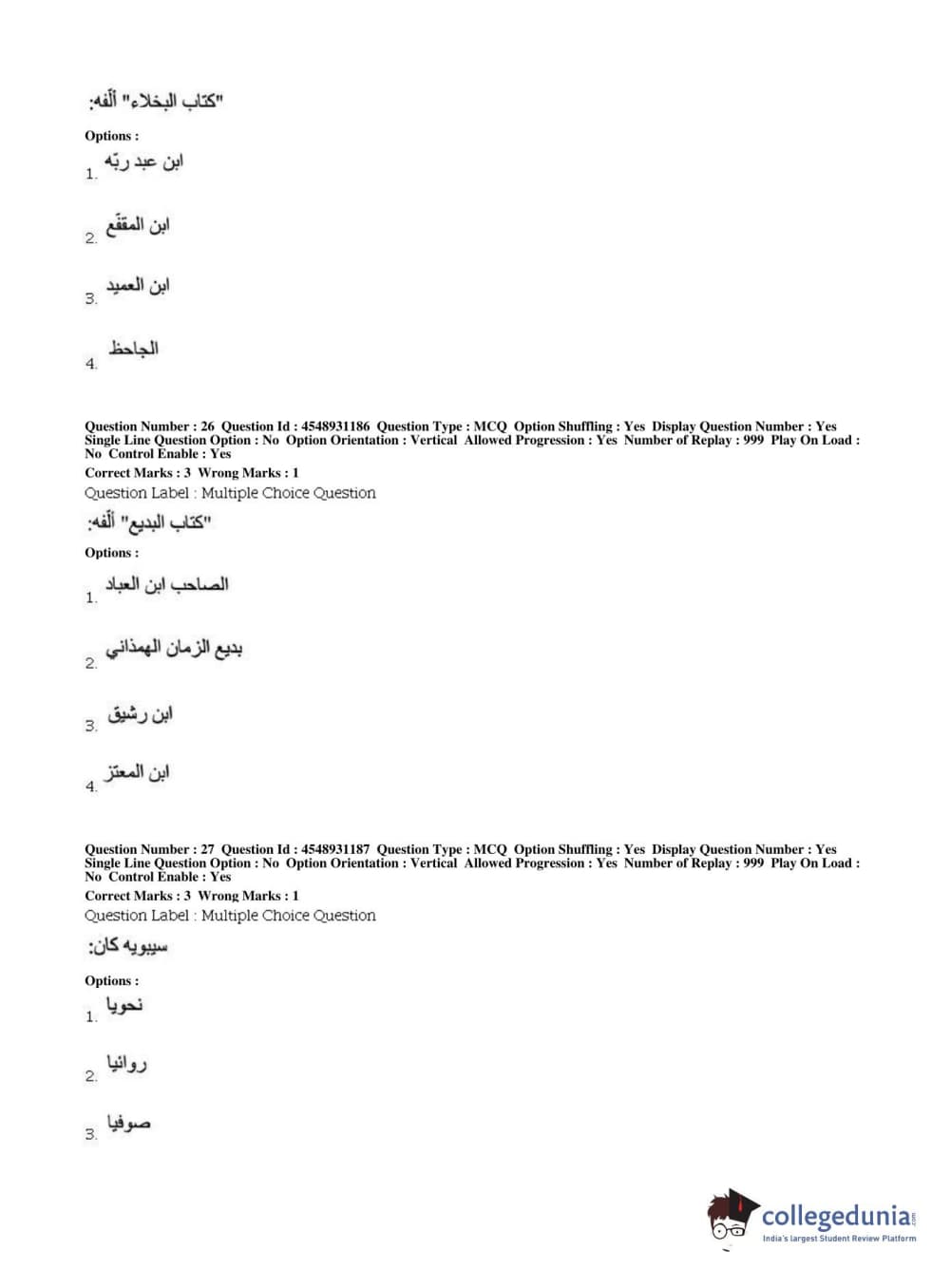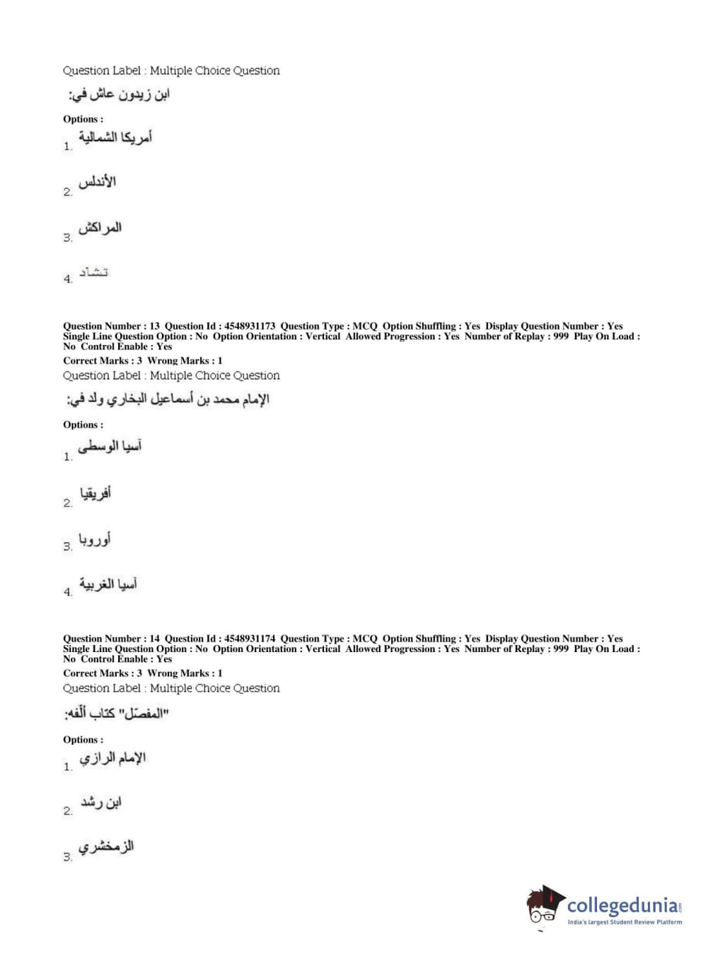 BHU PET 2019 MA IN ARABIC Question Paper with Answer Key PDFs, Shift 1