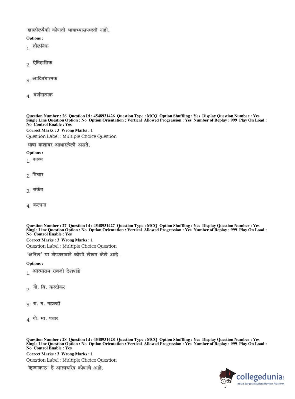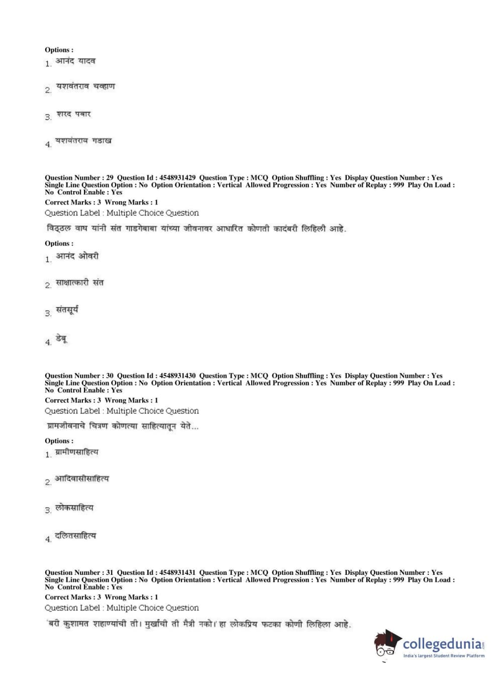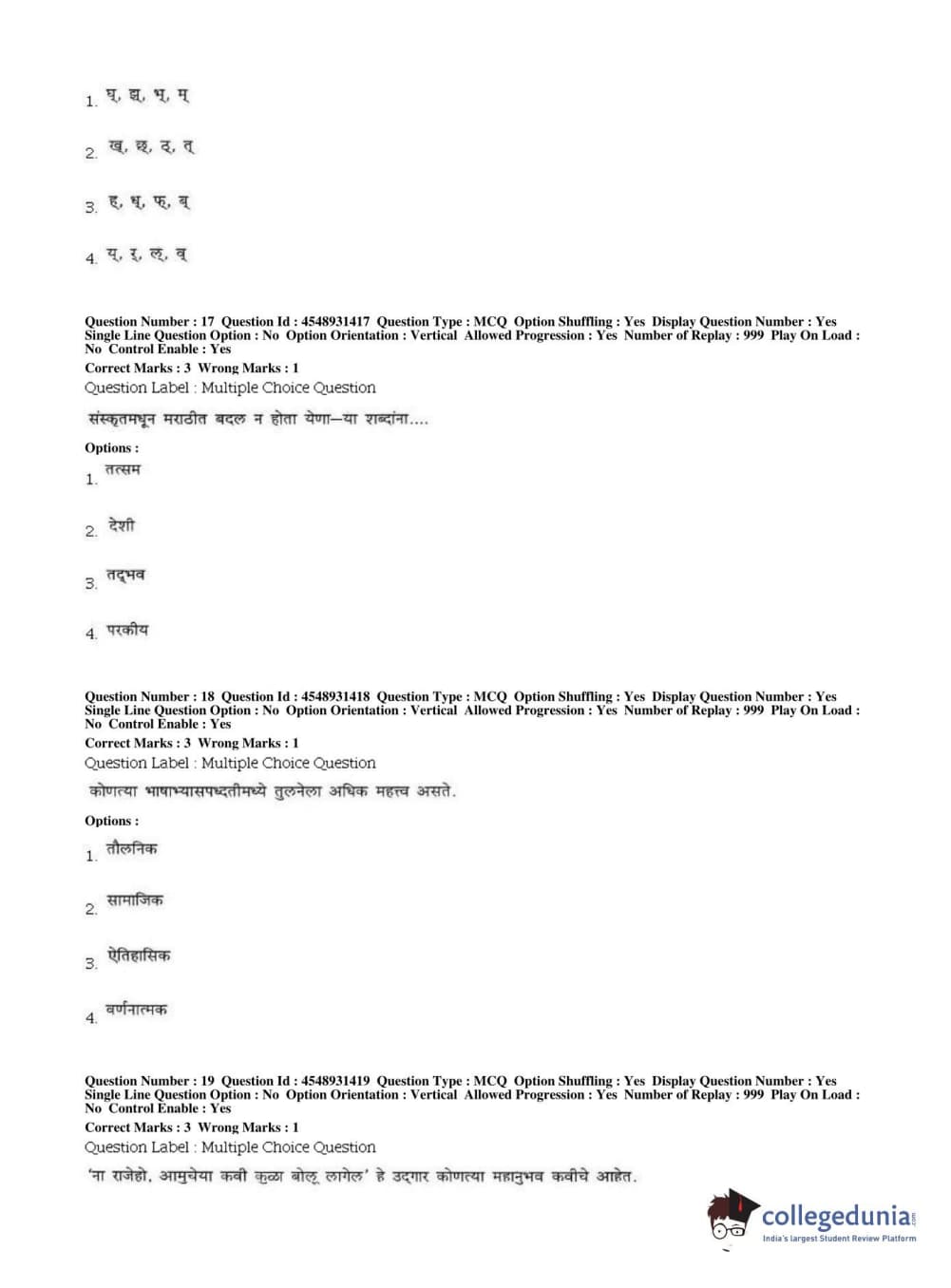 BHU PET 2019 MA MARATHI Question Paper with Answer Key PDFs in Marathi ,Shift 1