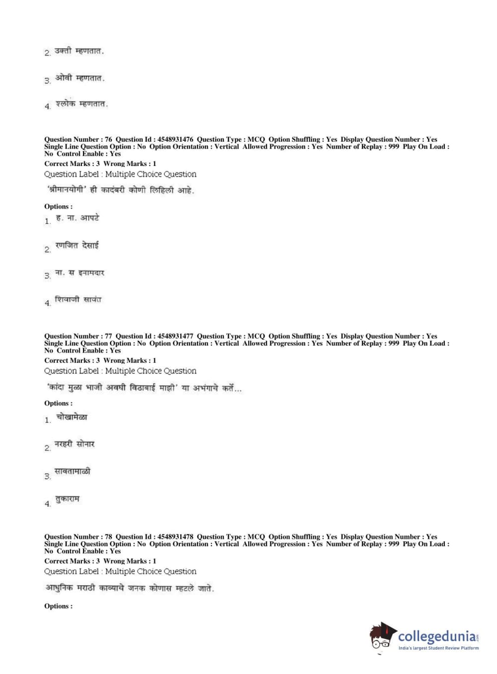 | BHU PET 2019 MA MARATHI Question Paper PDF | BHU PET 2019 MA MARATHI Answer Key PDF |