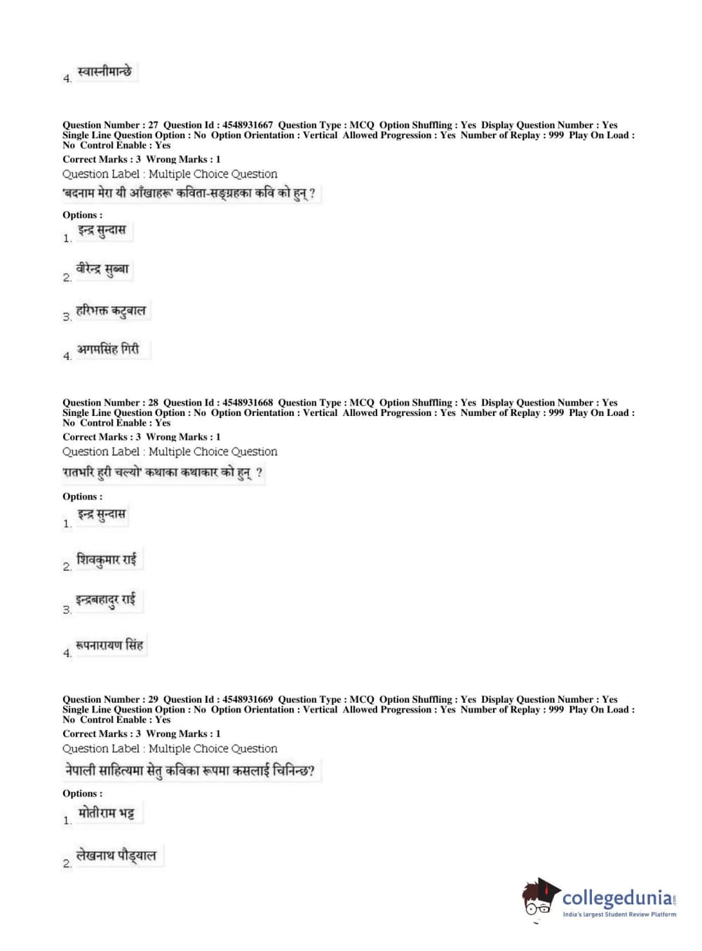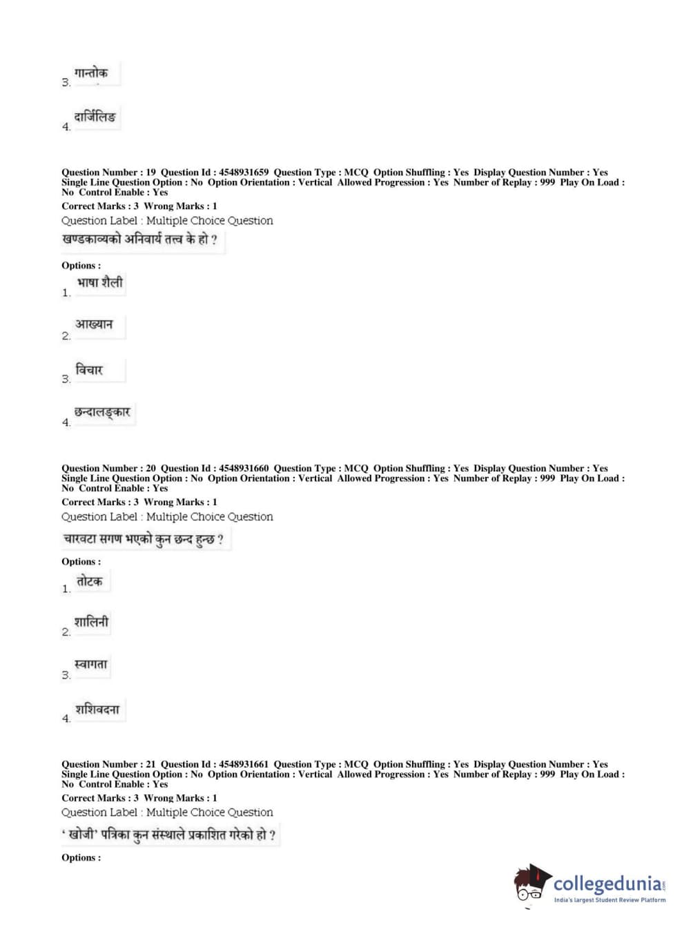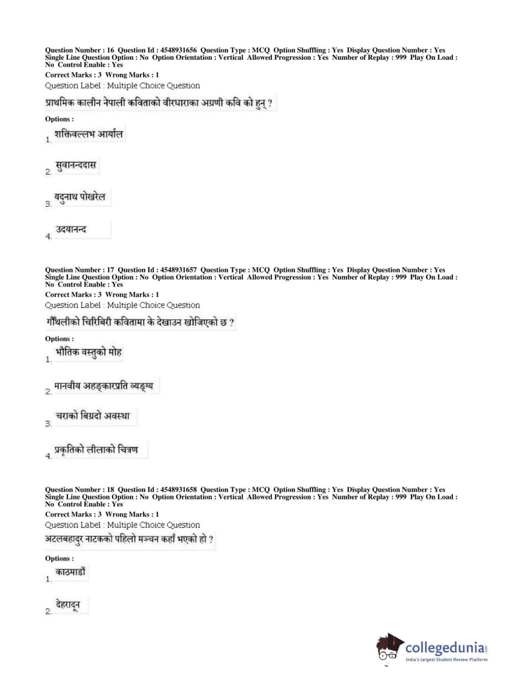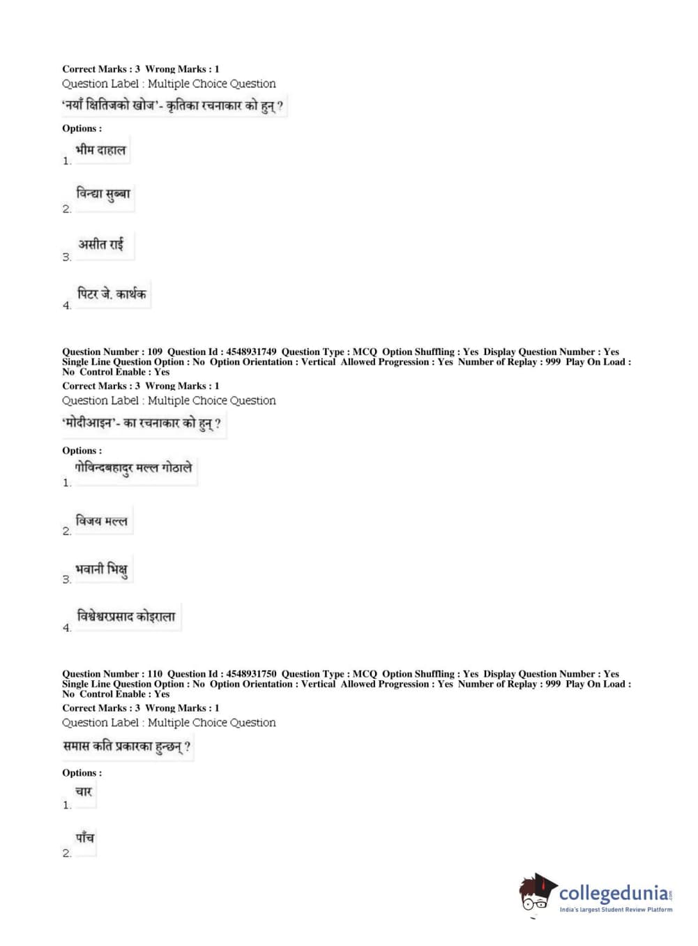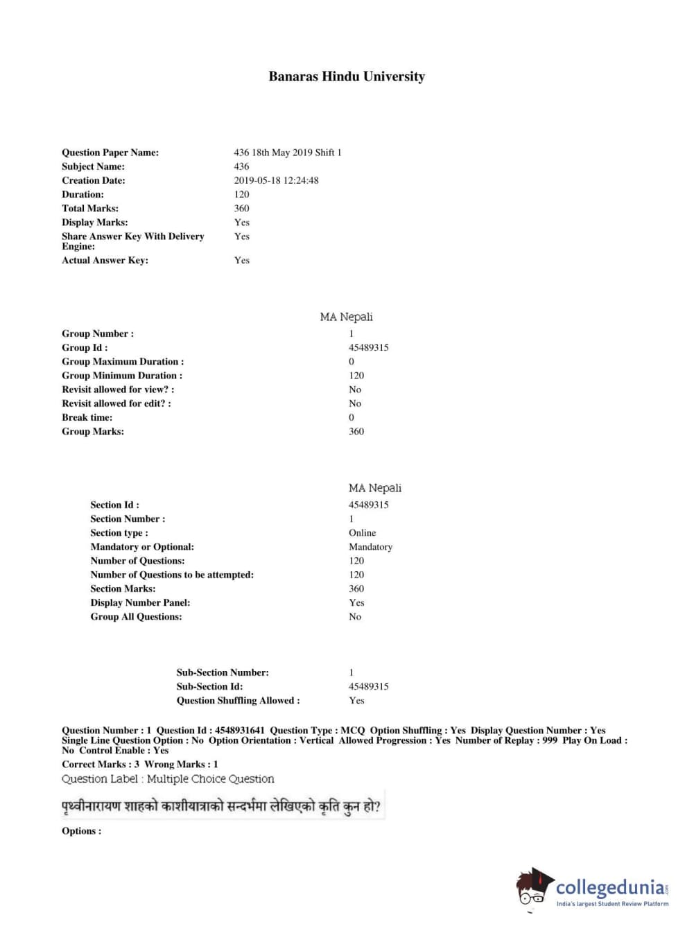 BHU PET 2019 M.A Nepali Question Paper with Answer Key PDFs, Shift 1
