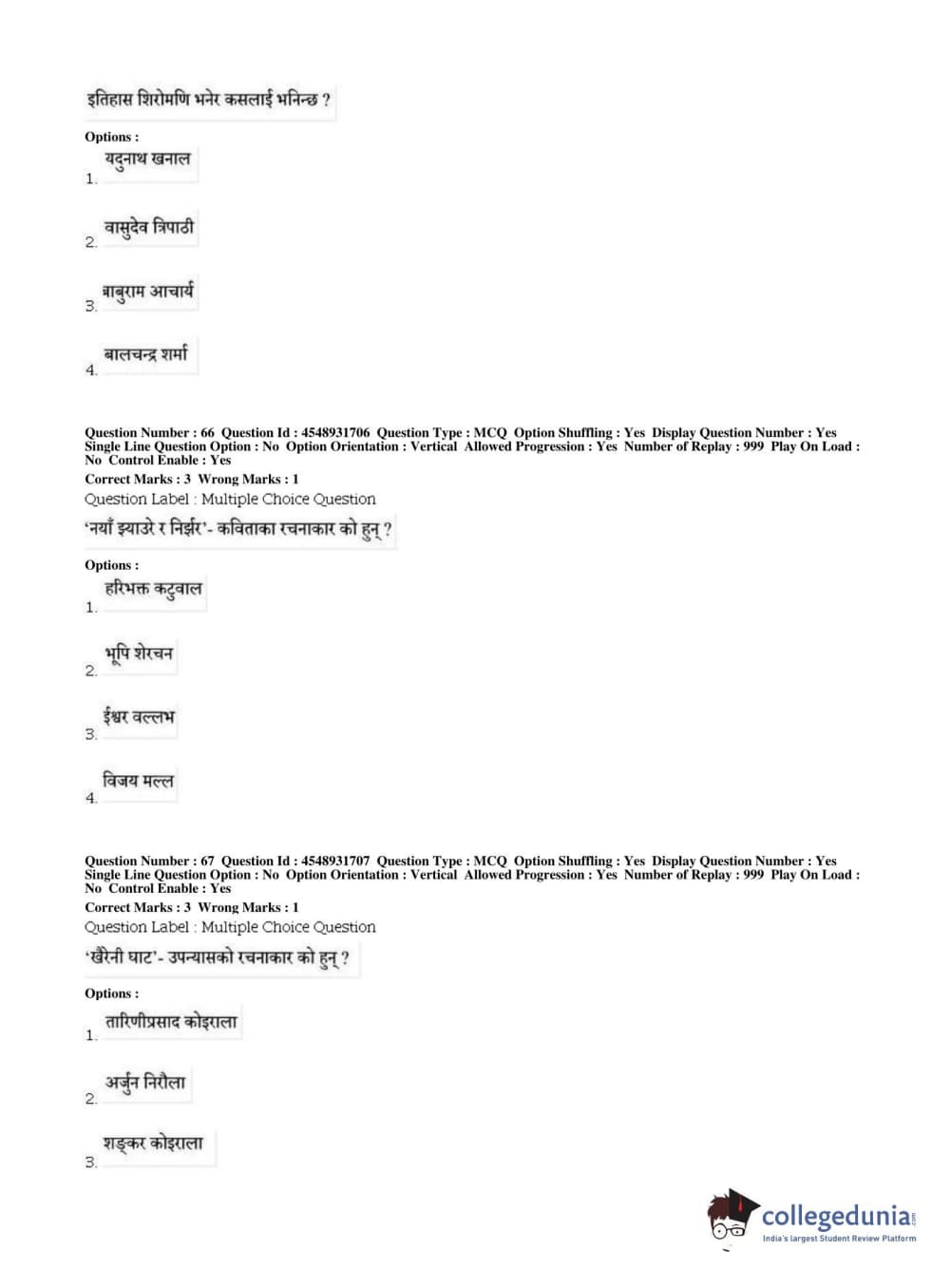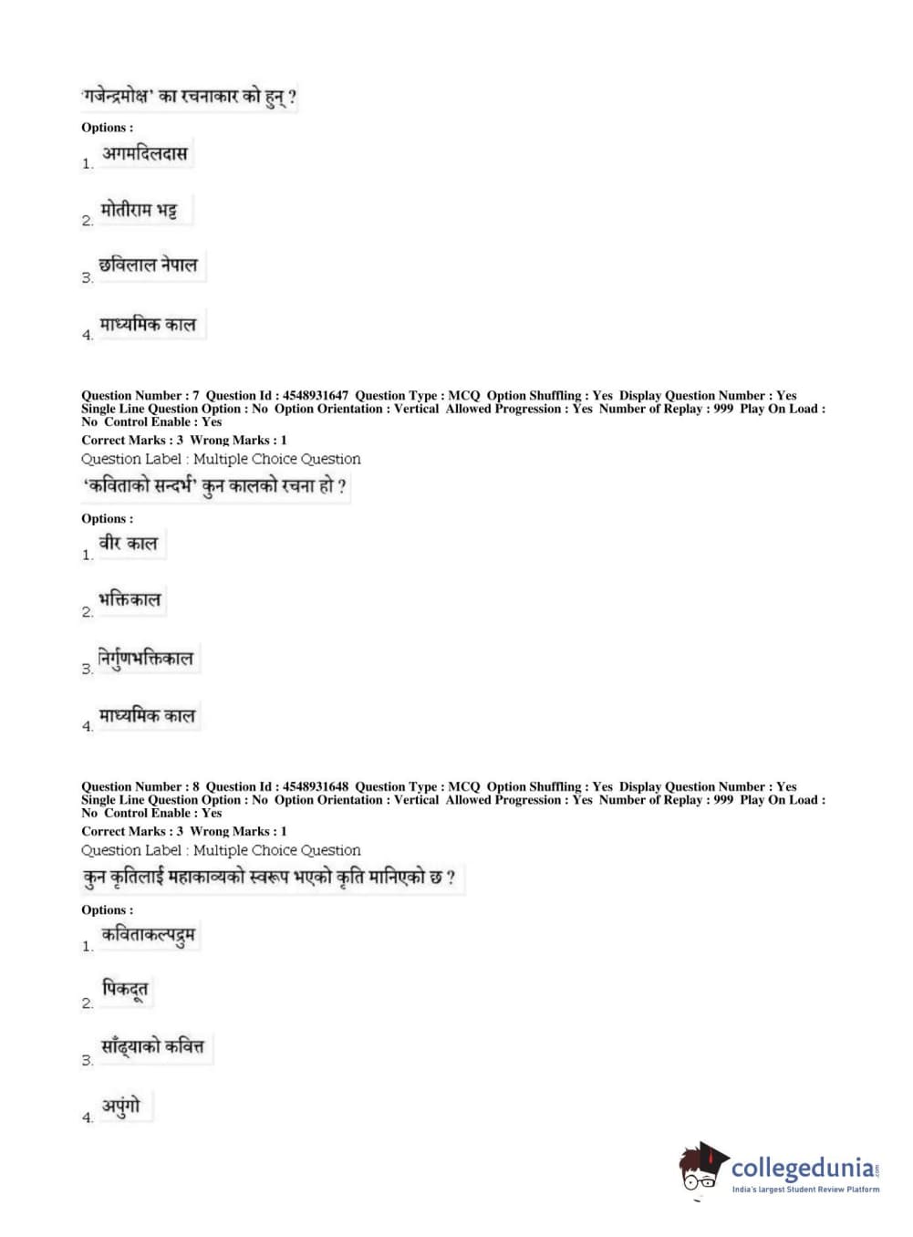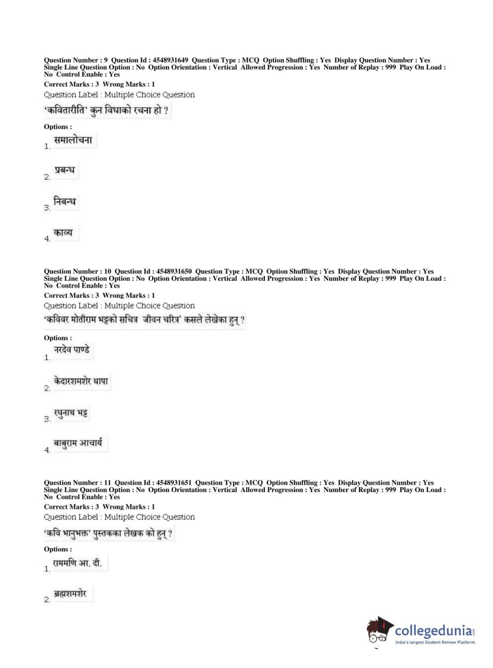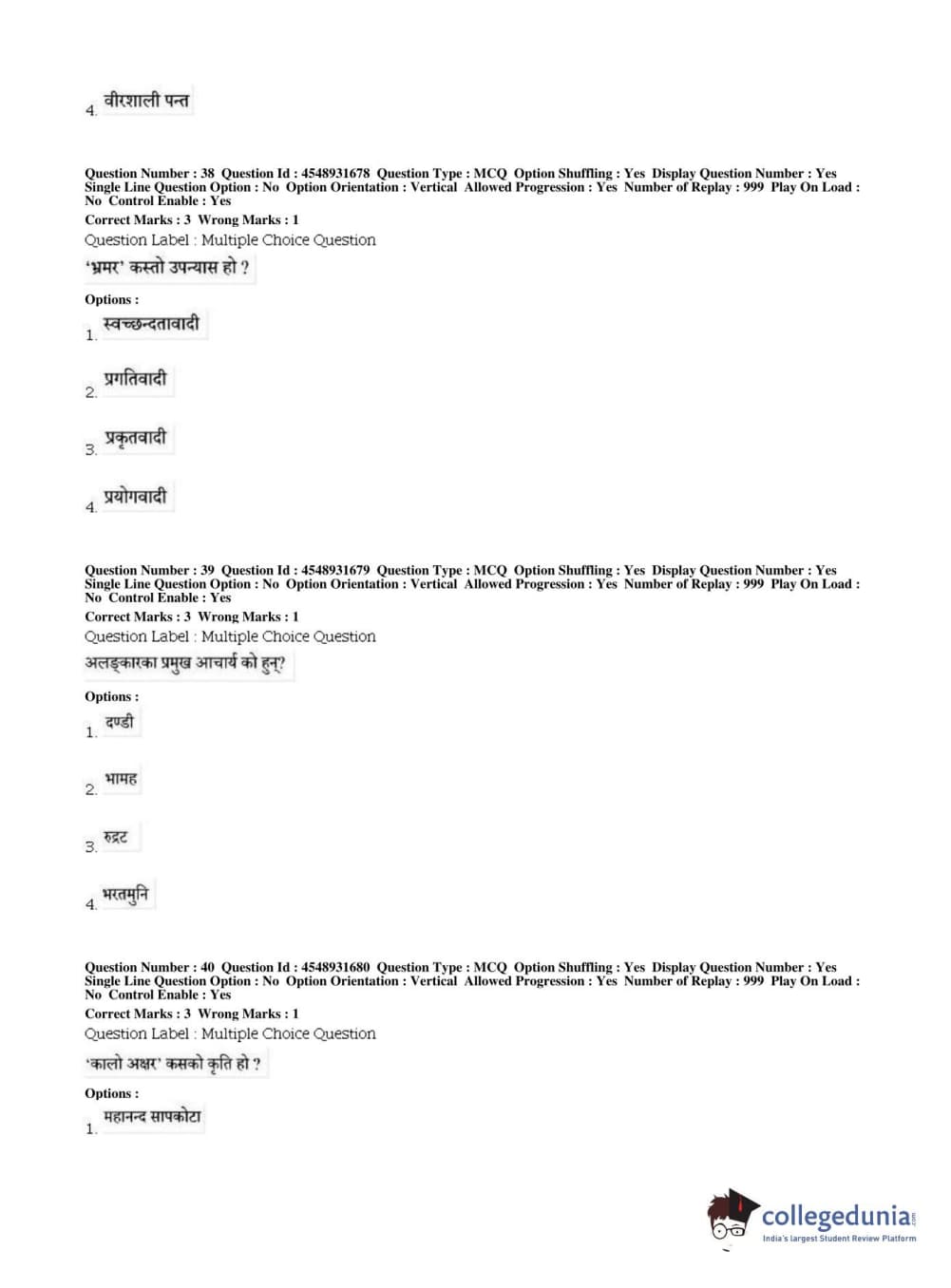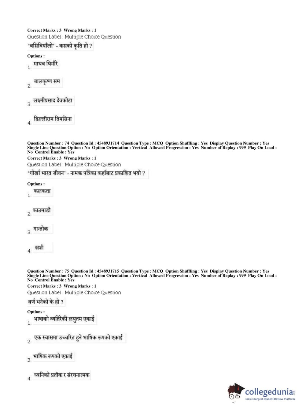 BHU PET 2019 M.A Nepali Question Paper with Answer Key PDFs, Shift 1