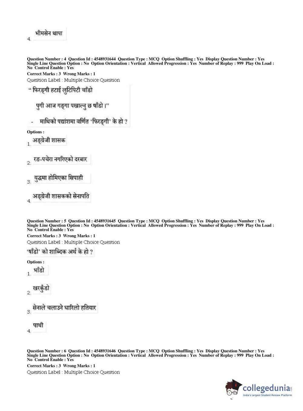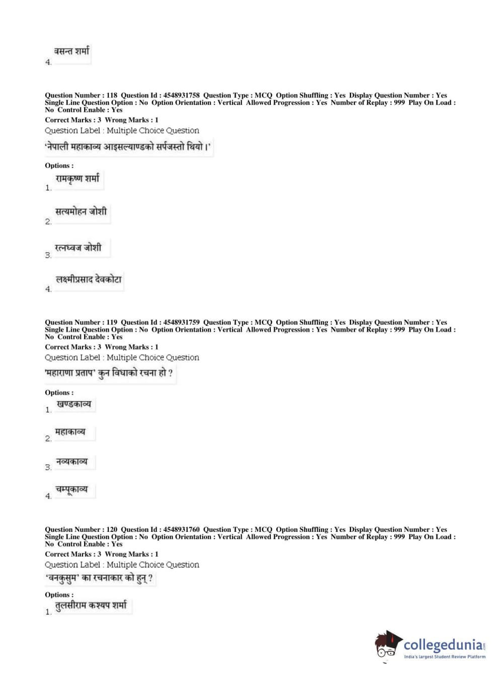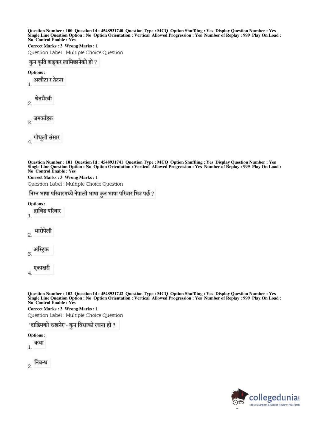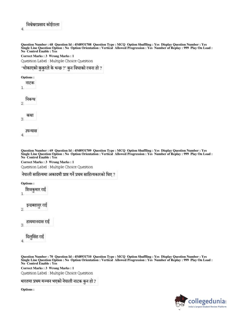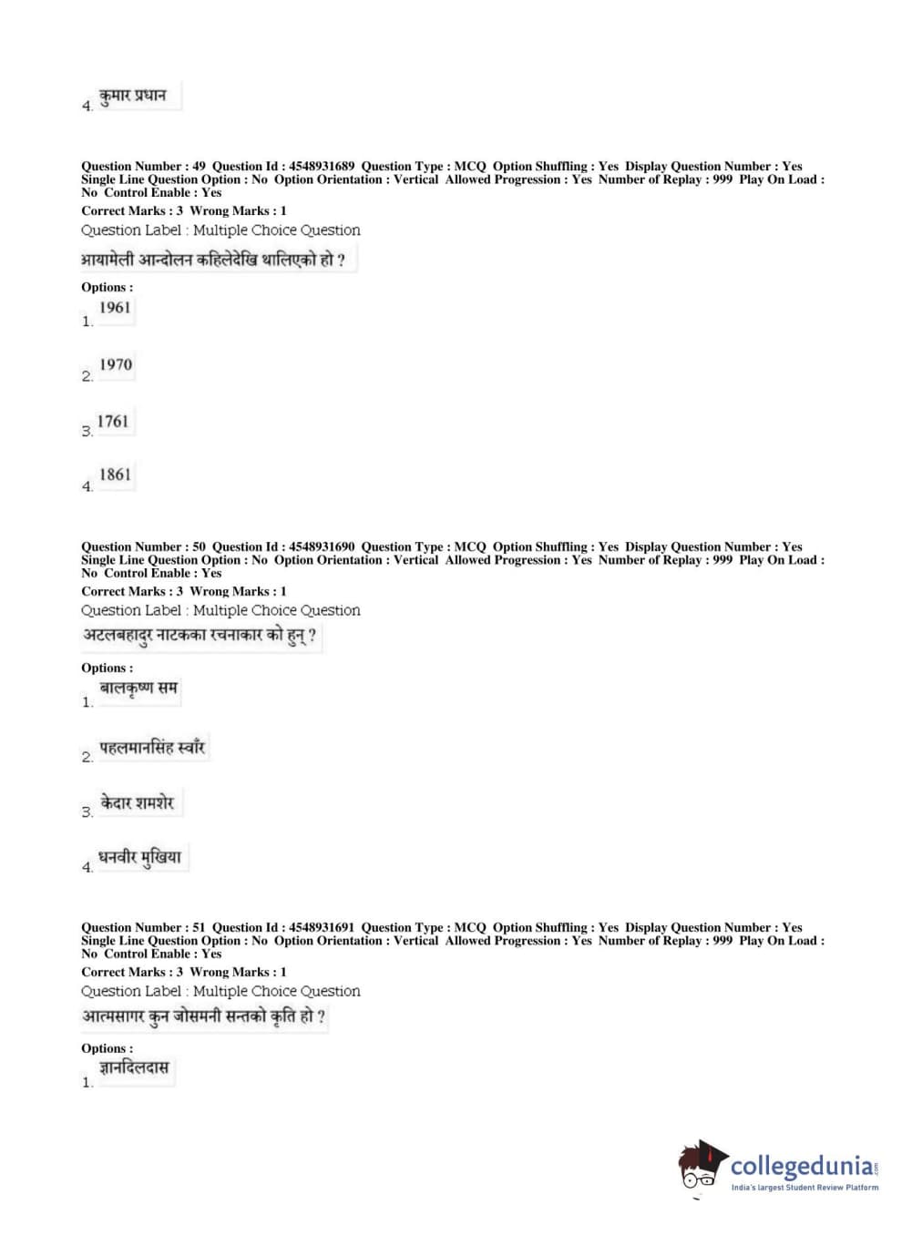 BHU PET 2019 M.A Nepali Question Paper with Answer Key PDFs, Shift 1