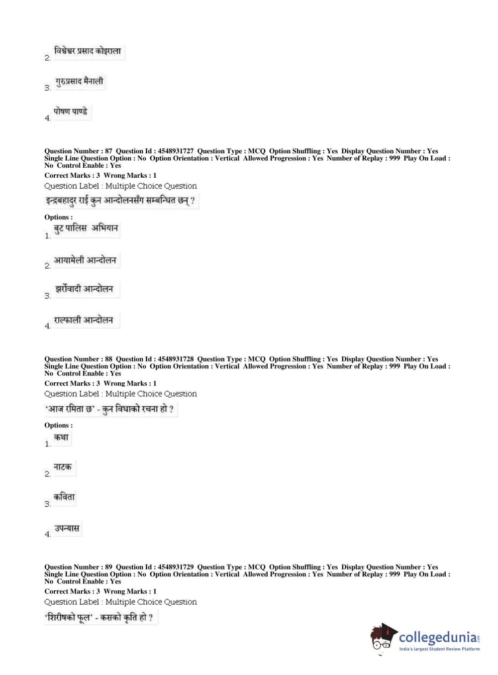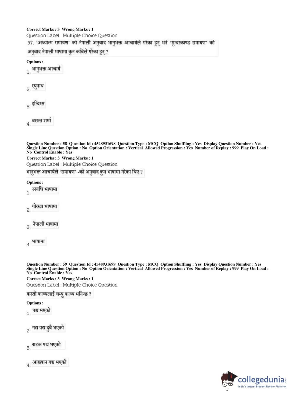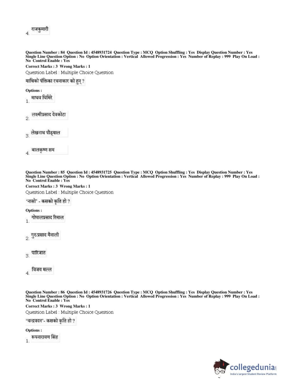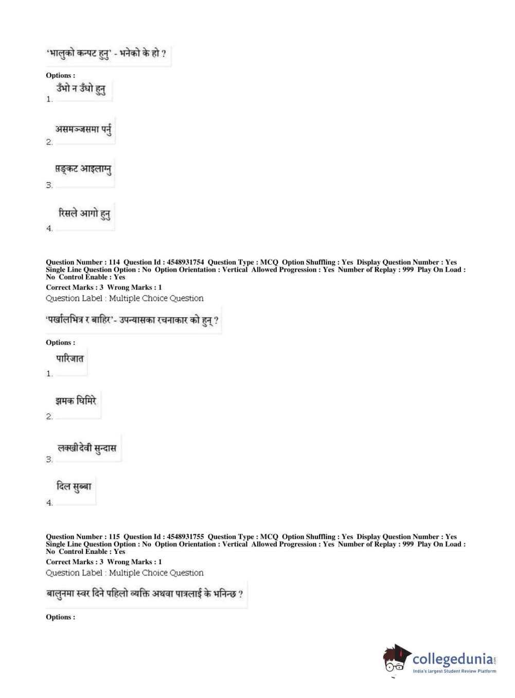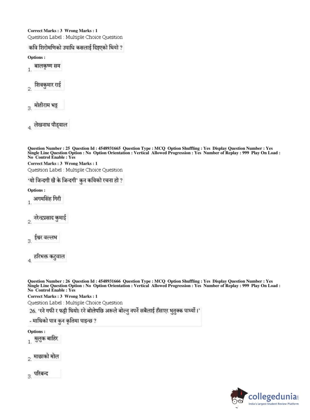 BHU PET 2019 M.A Nepali Question Paper with Answer Key PDFs, Shift 1