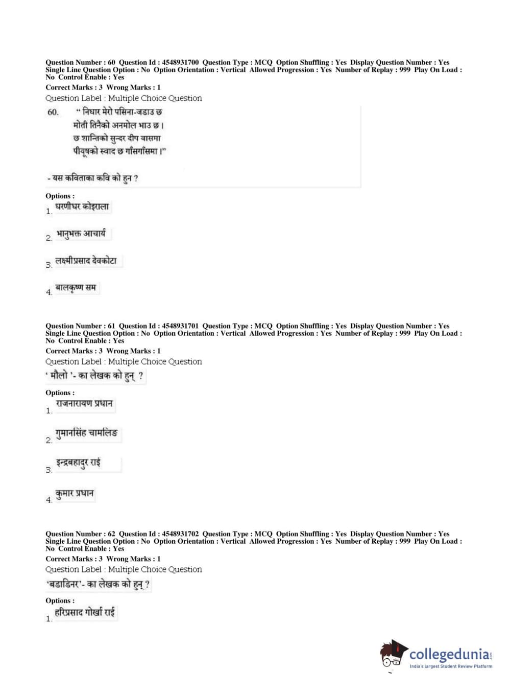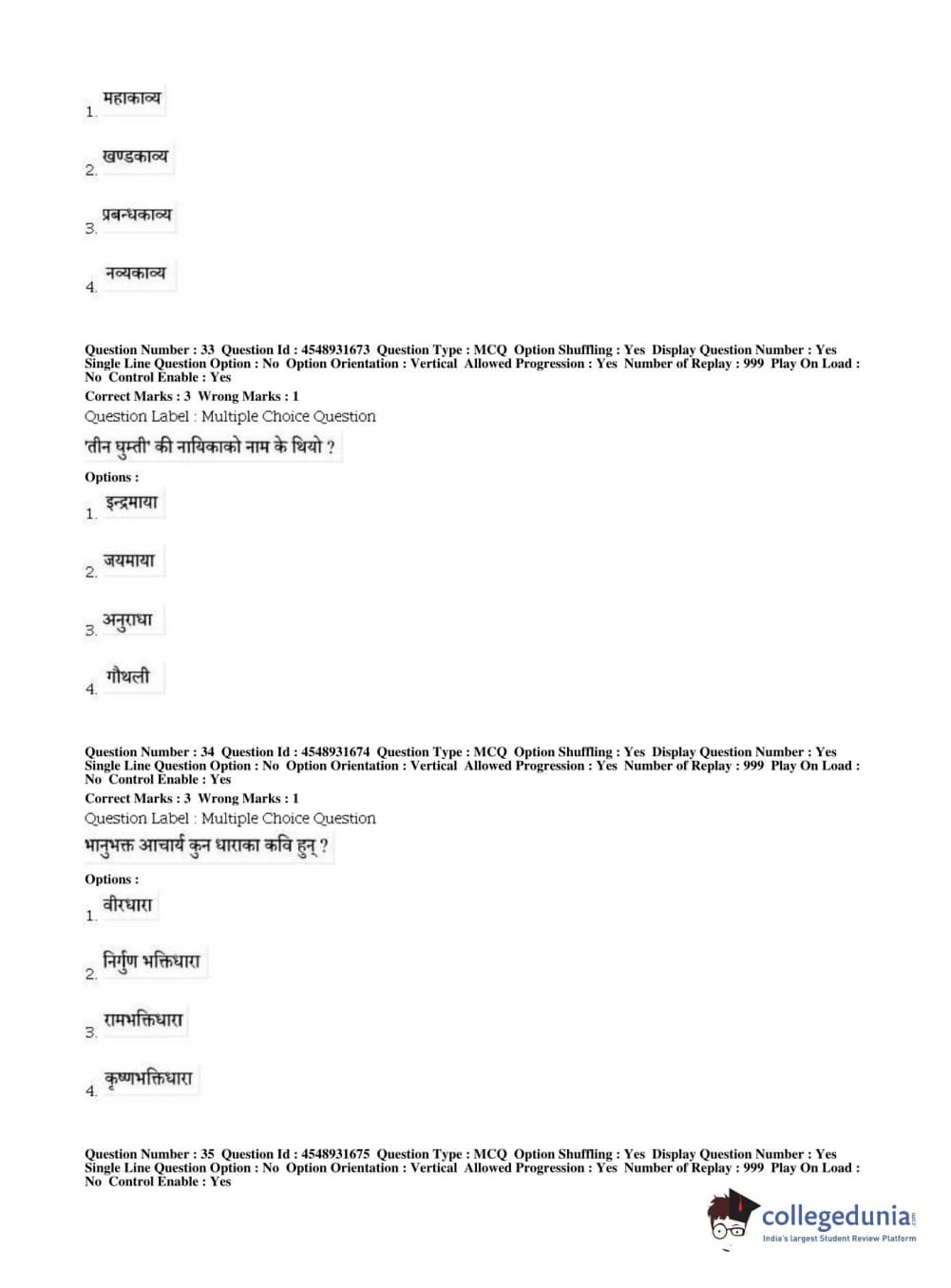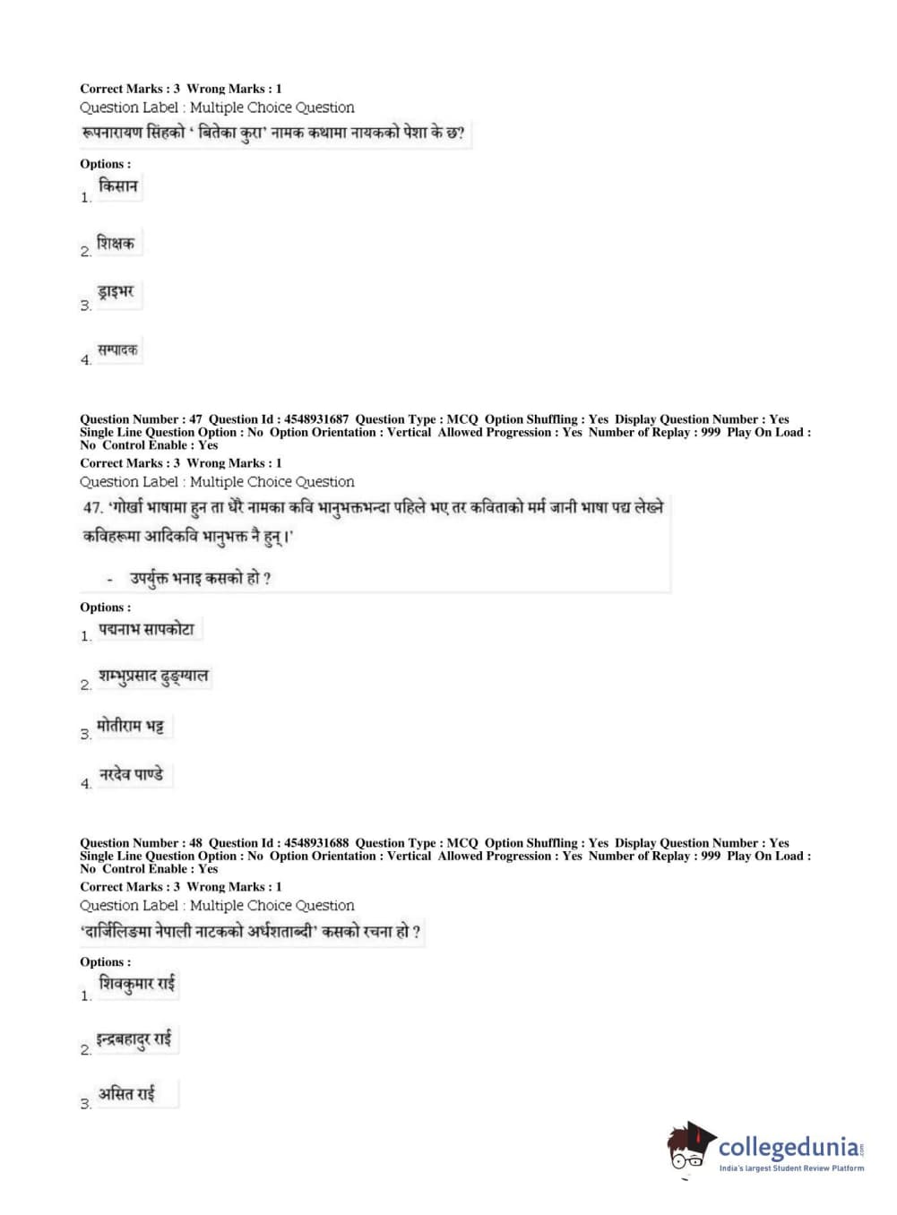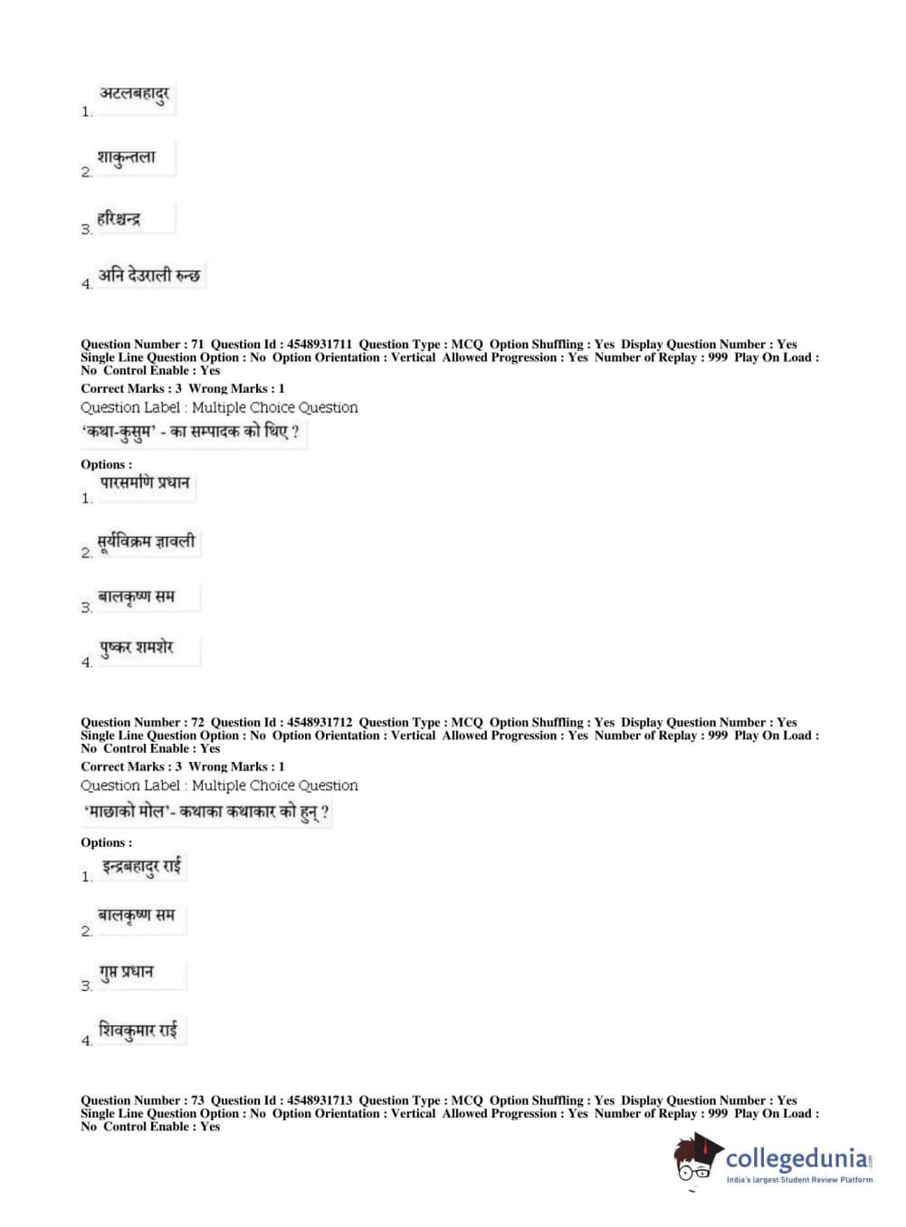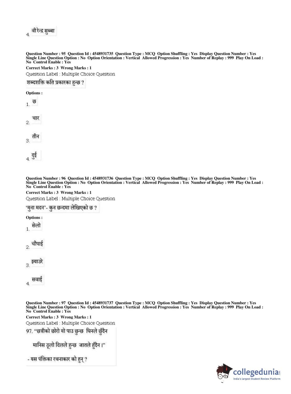 BHU PET 2019 M.A Nepali Question Paper with Answer Key PDFs, Shift 1