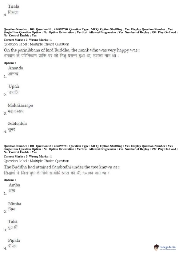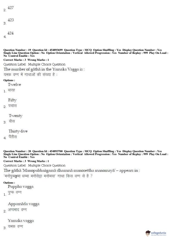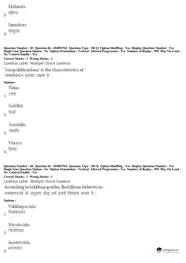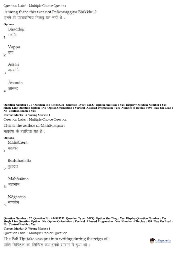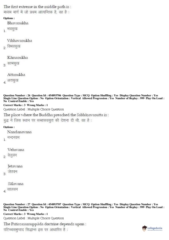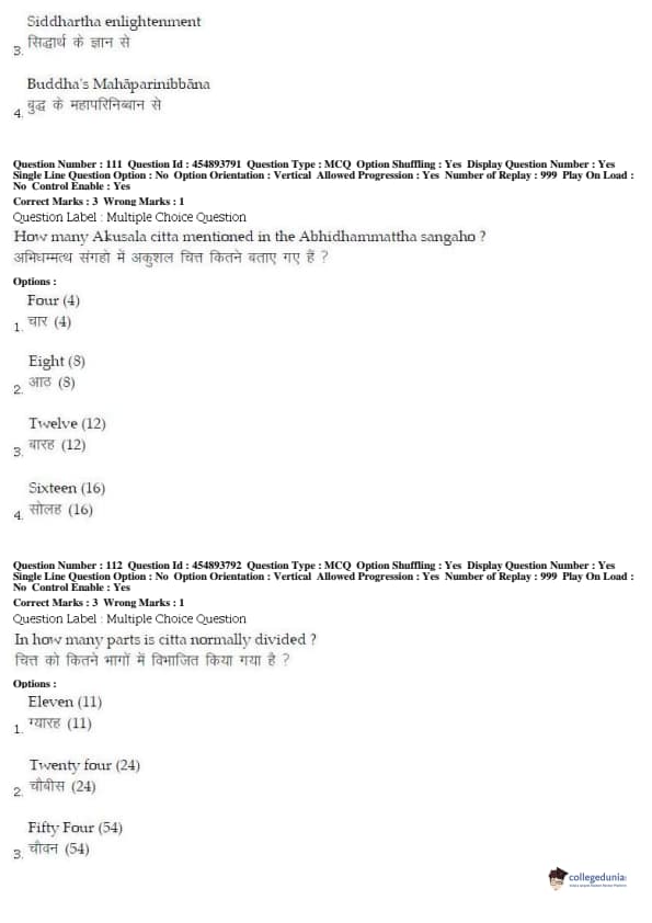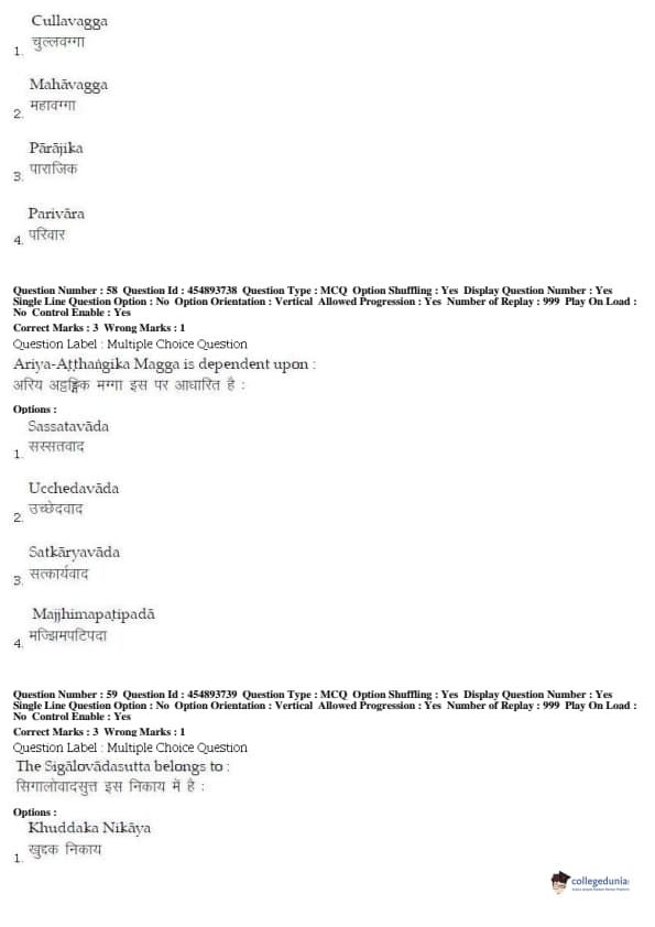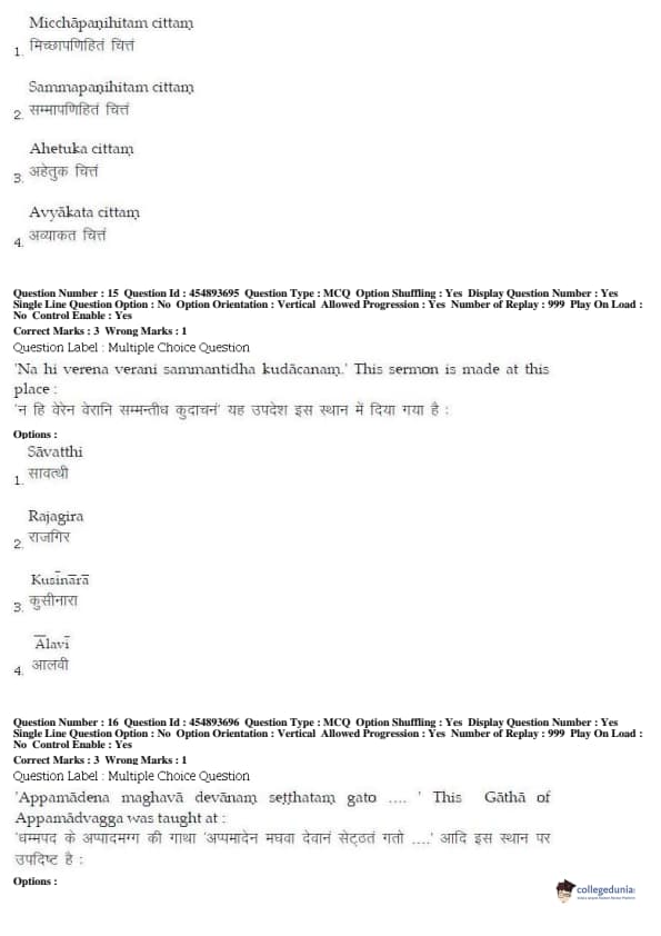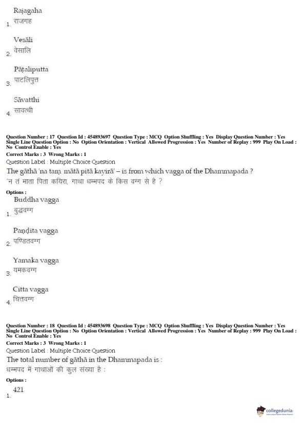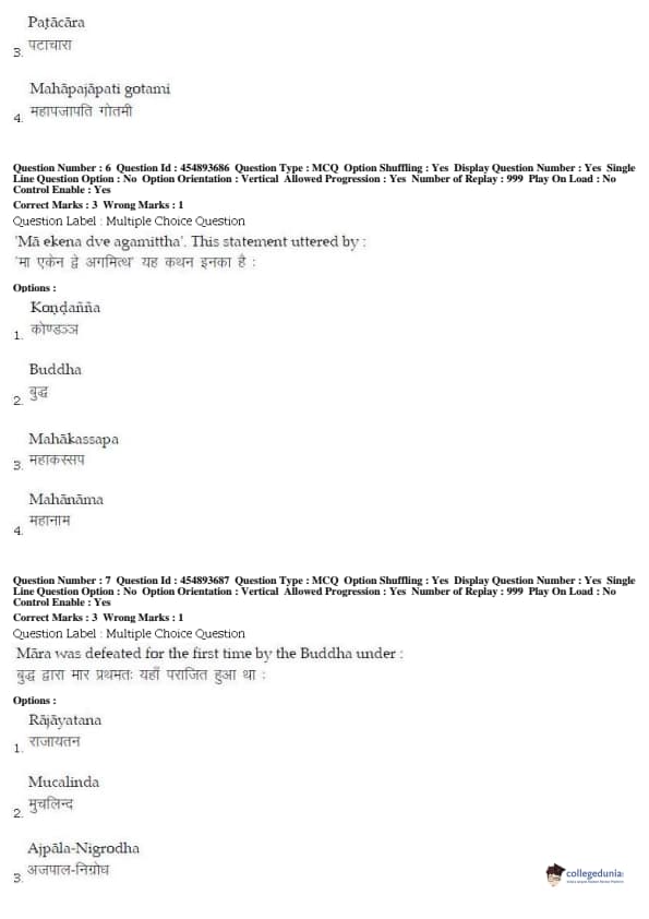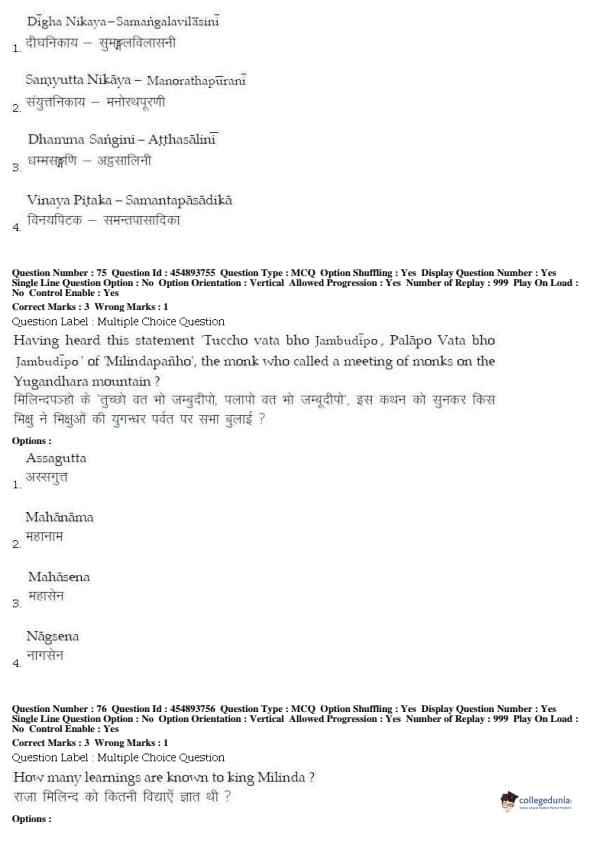 BHU PET 2019 MA PALI Question Paper with Answer Key PDFs, Shift 1