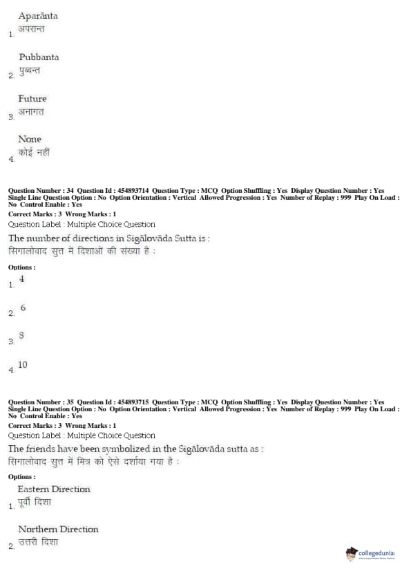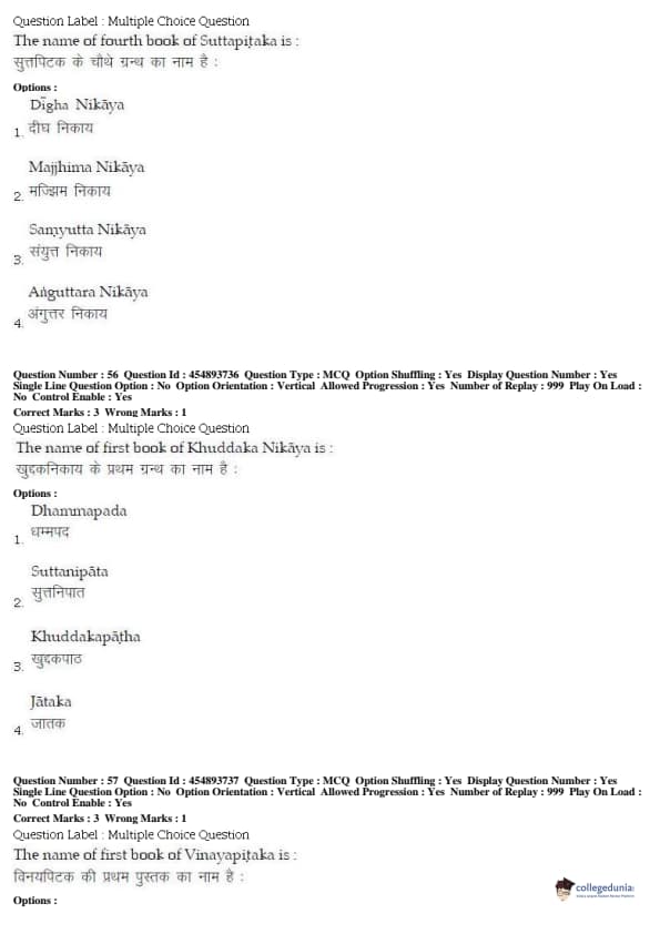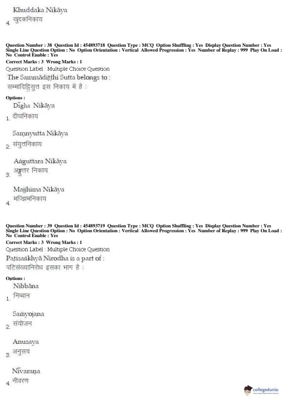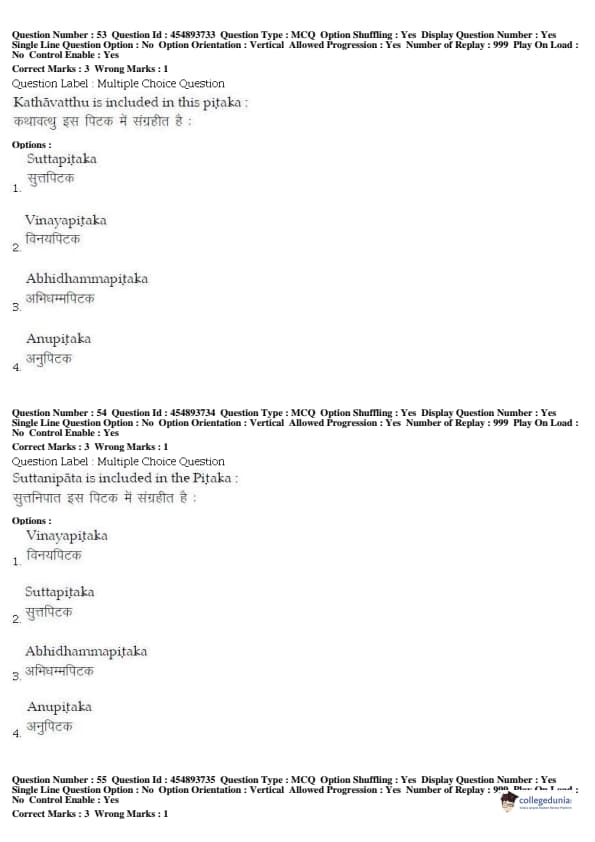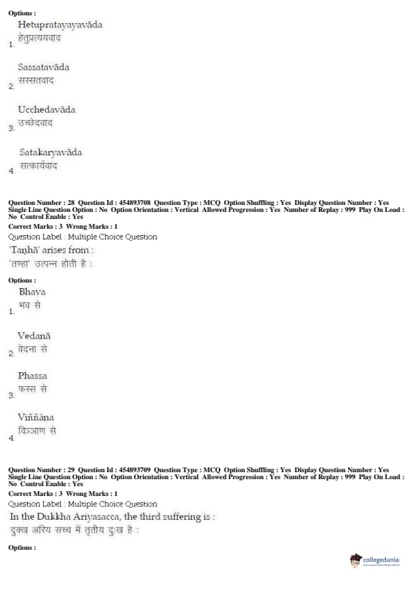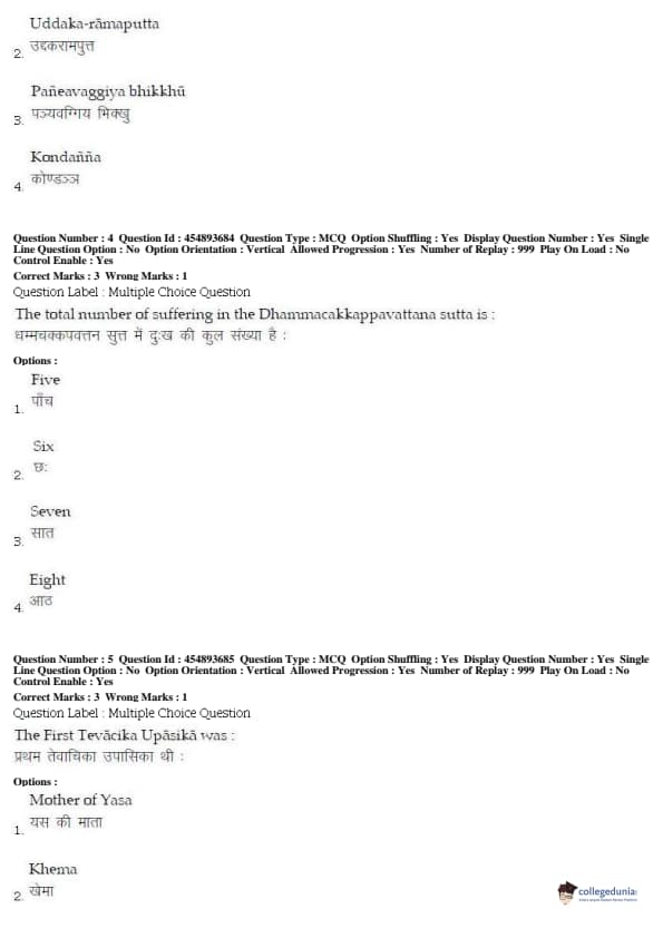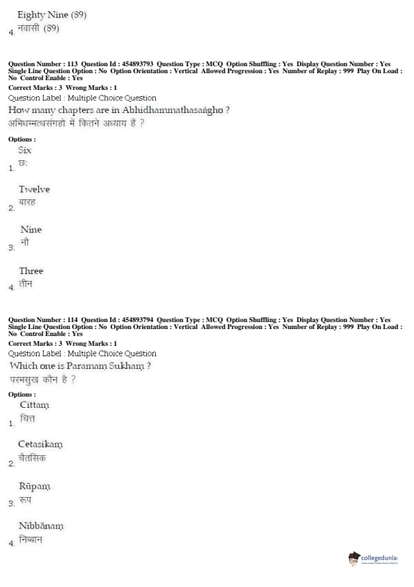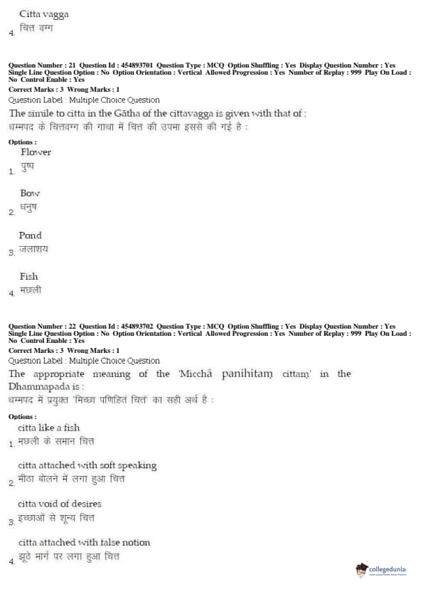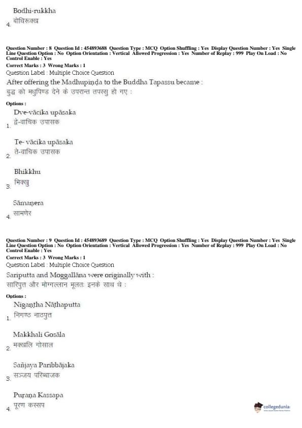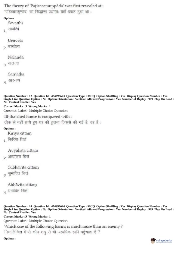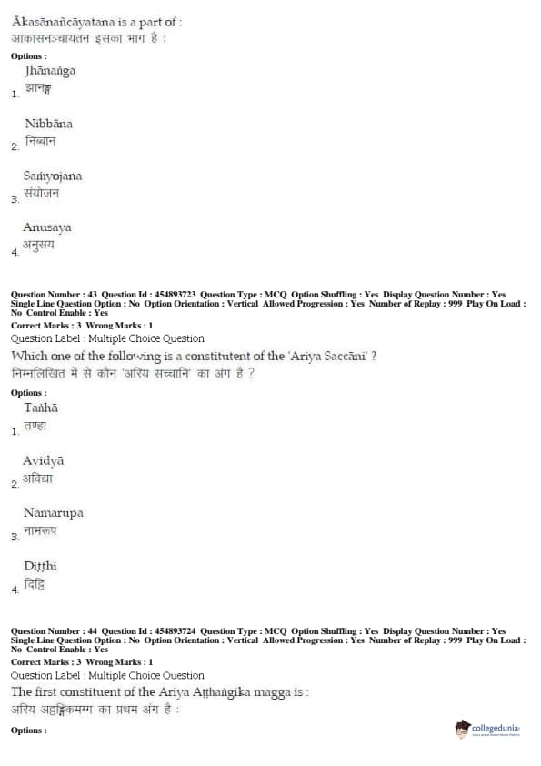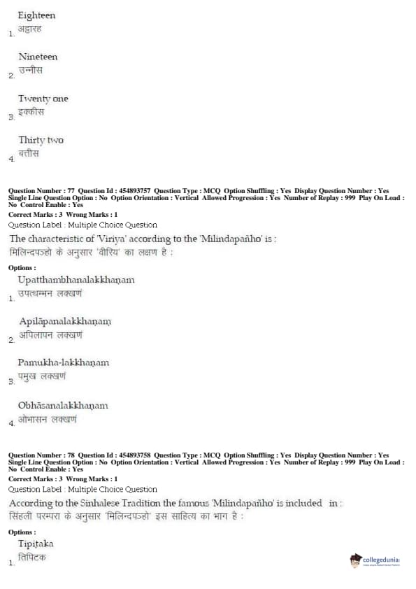 BHU PET 2019 MA PALI Question Paper with Answer Key PDFs, Shift 1
