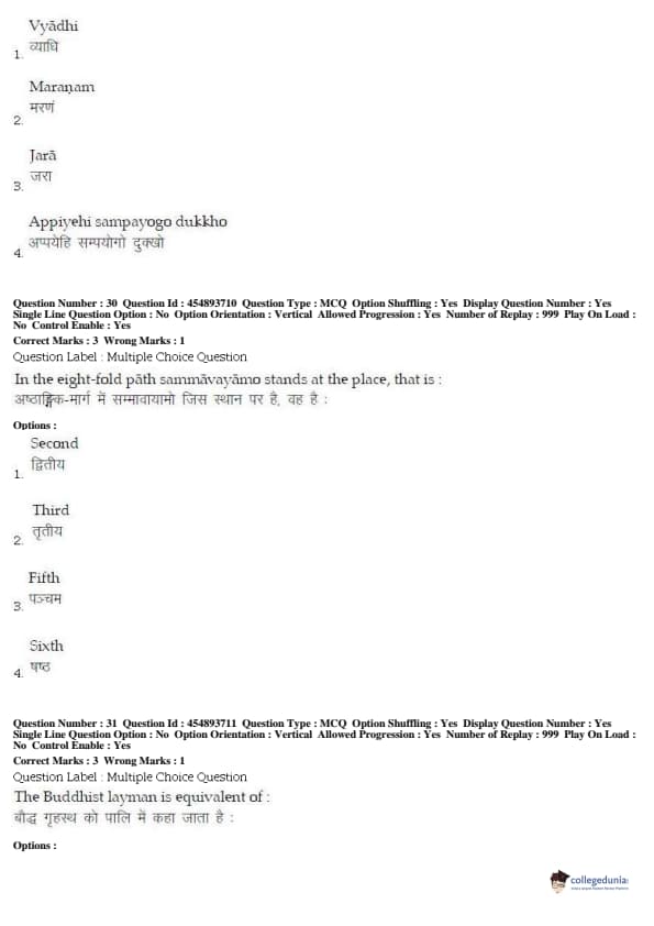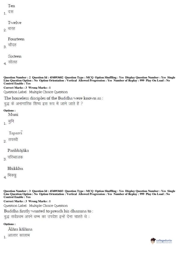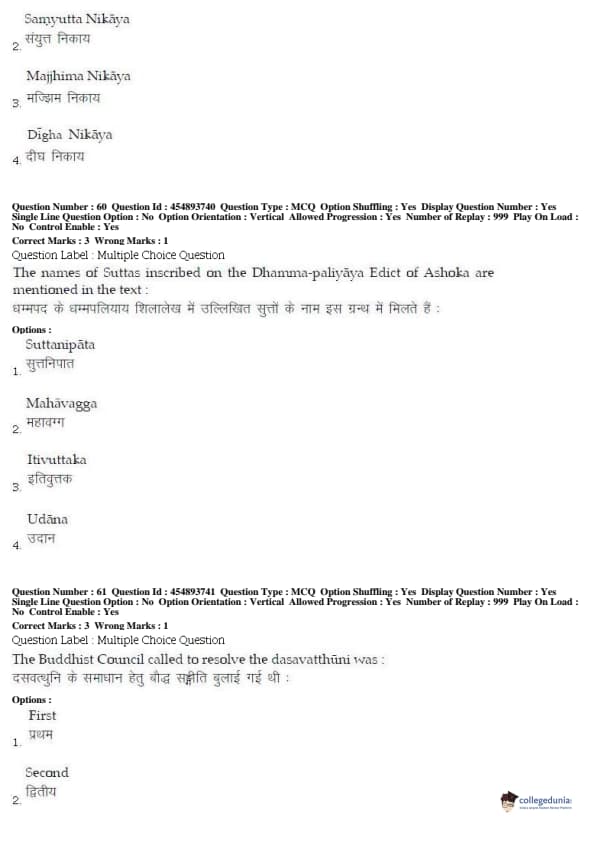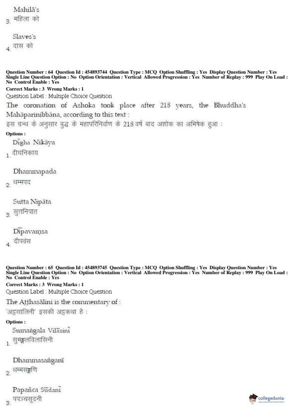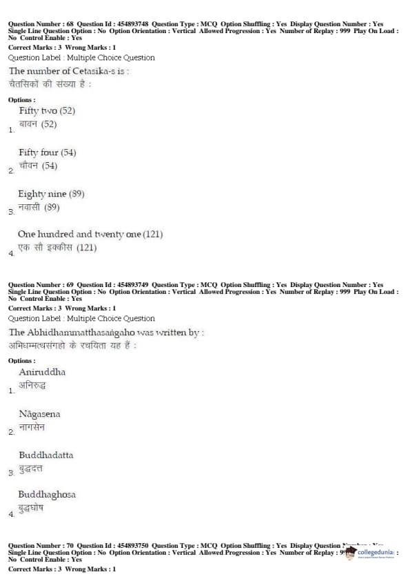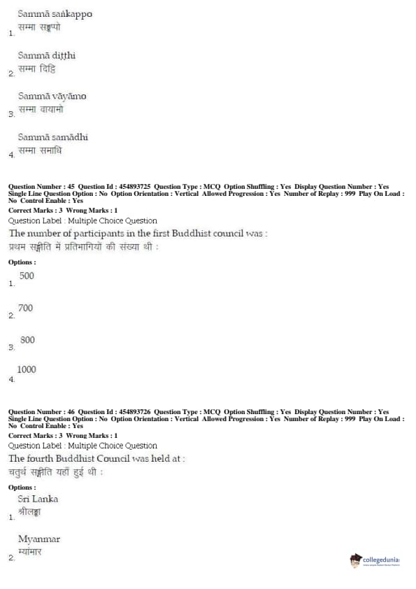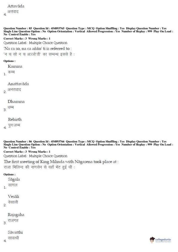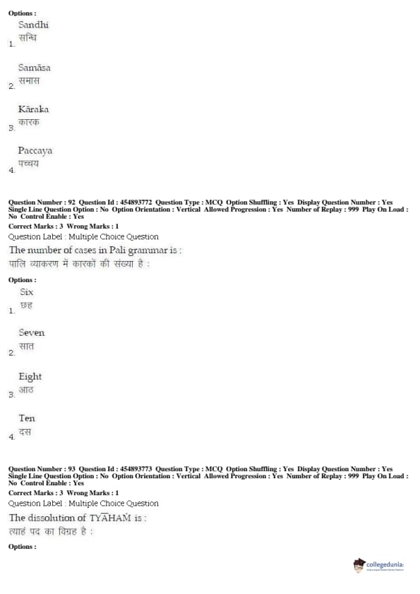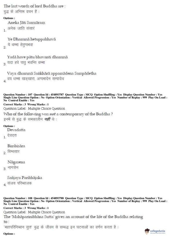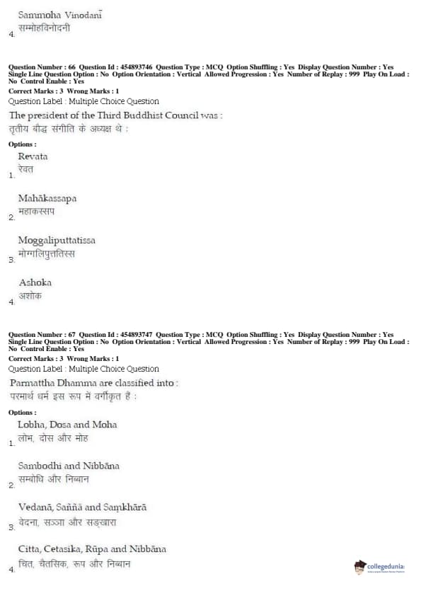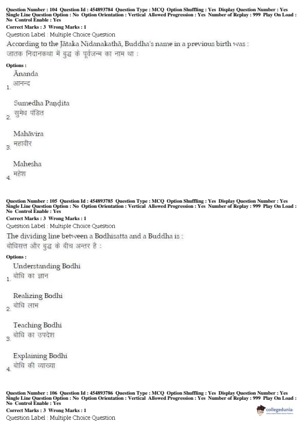 BHU PET 2019 MA PALI Question Paper with Answer Key PDFs, Shift 1