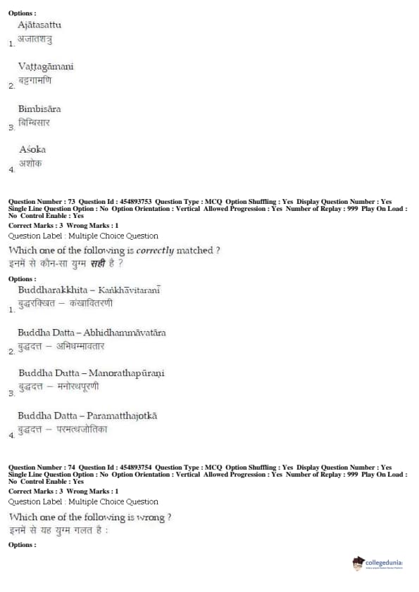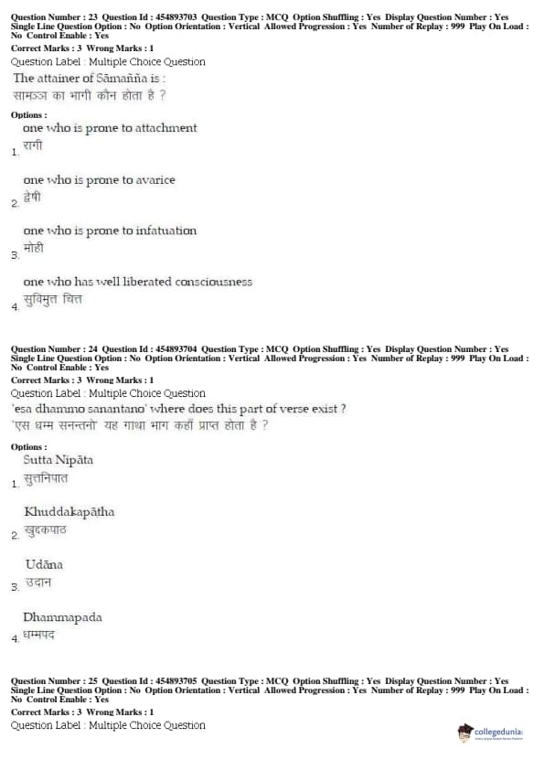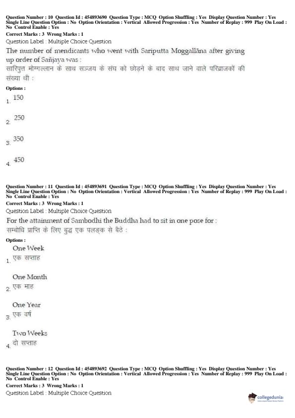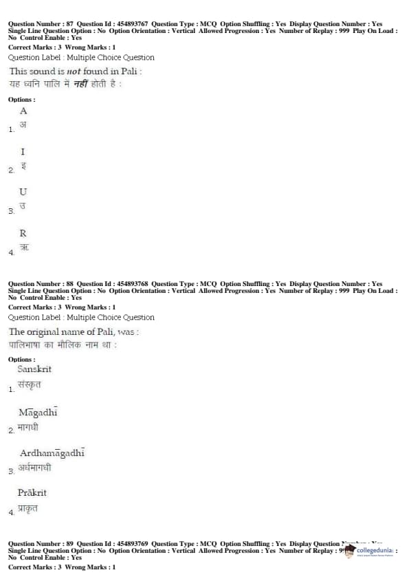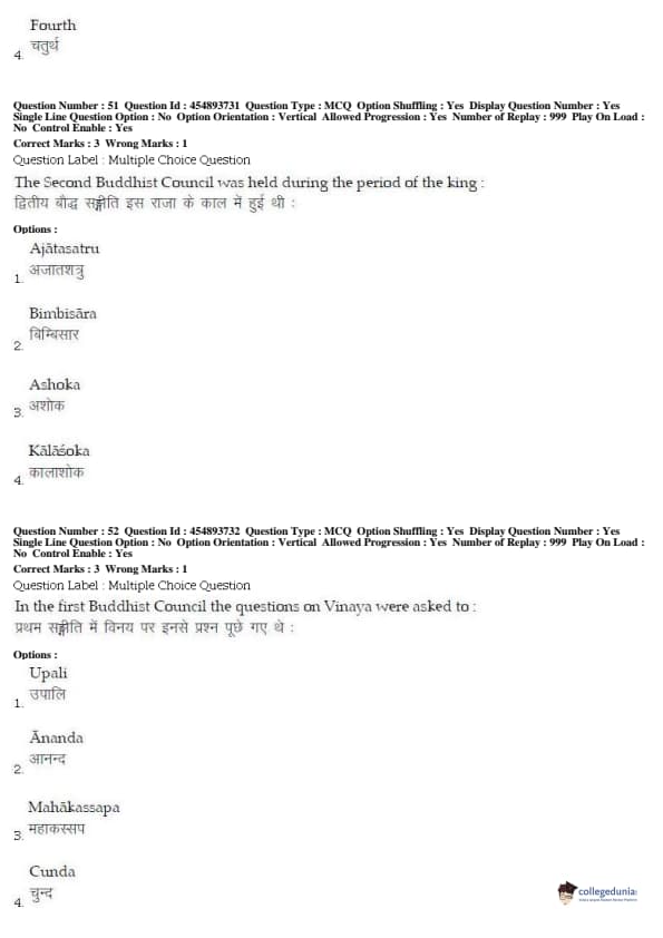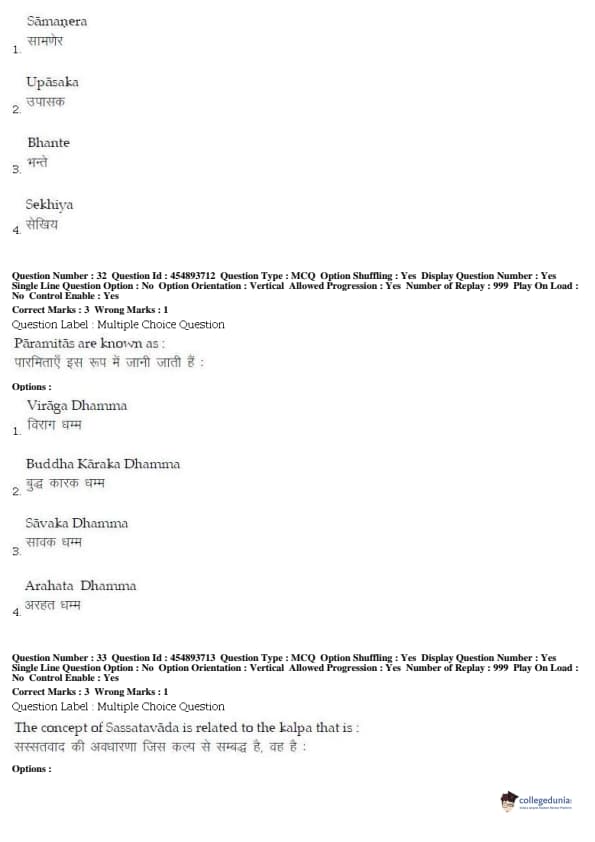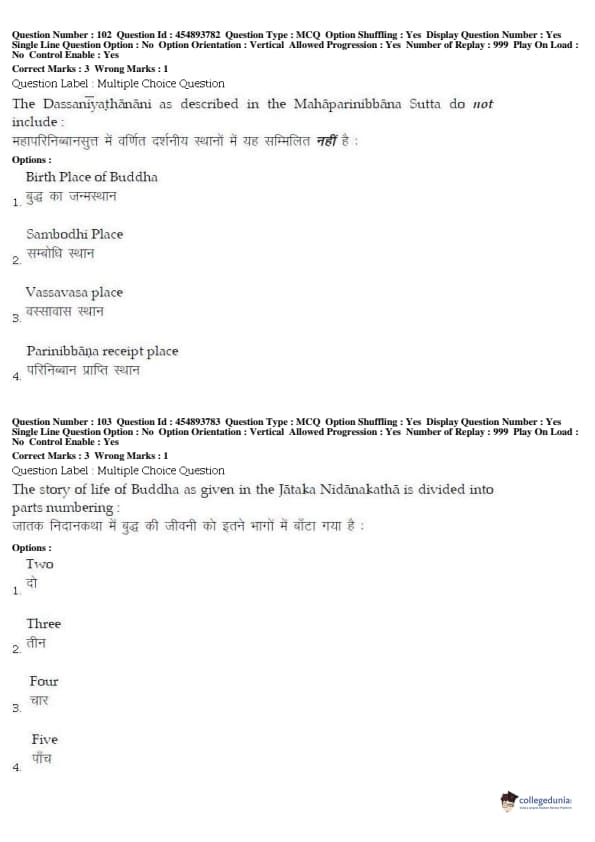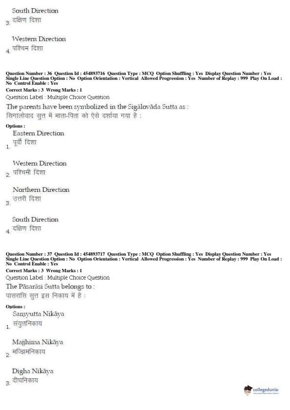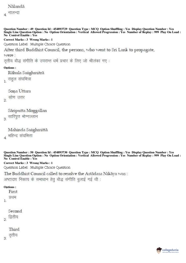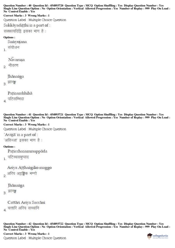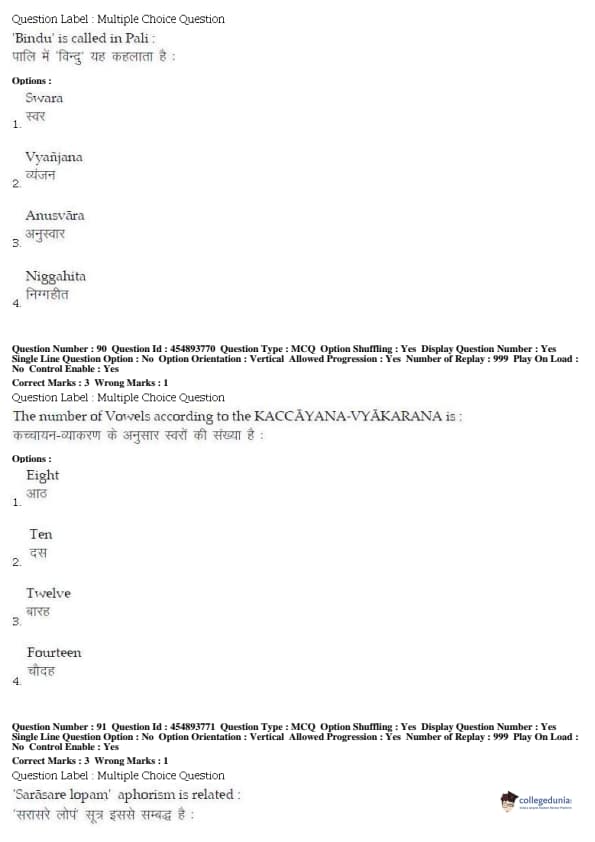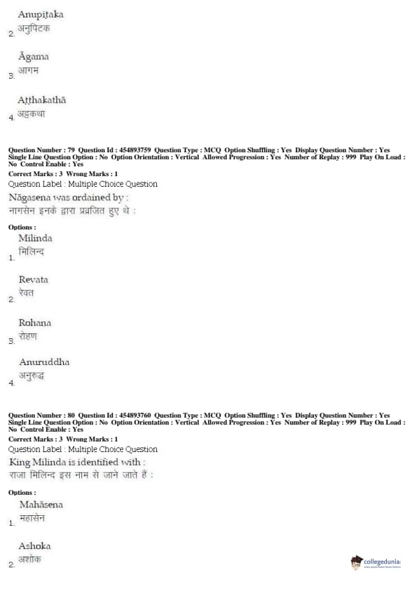 BHU PET 2019 MA PALI Question Paper with Answer Key PDFs, Shift 1