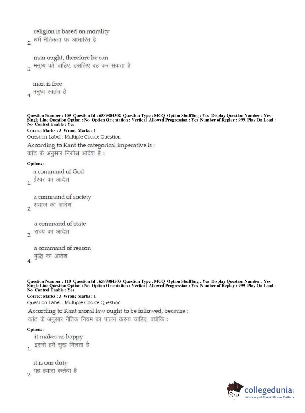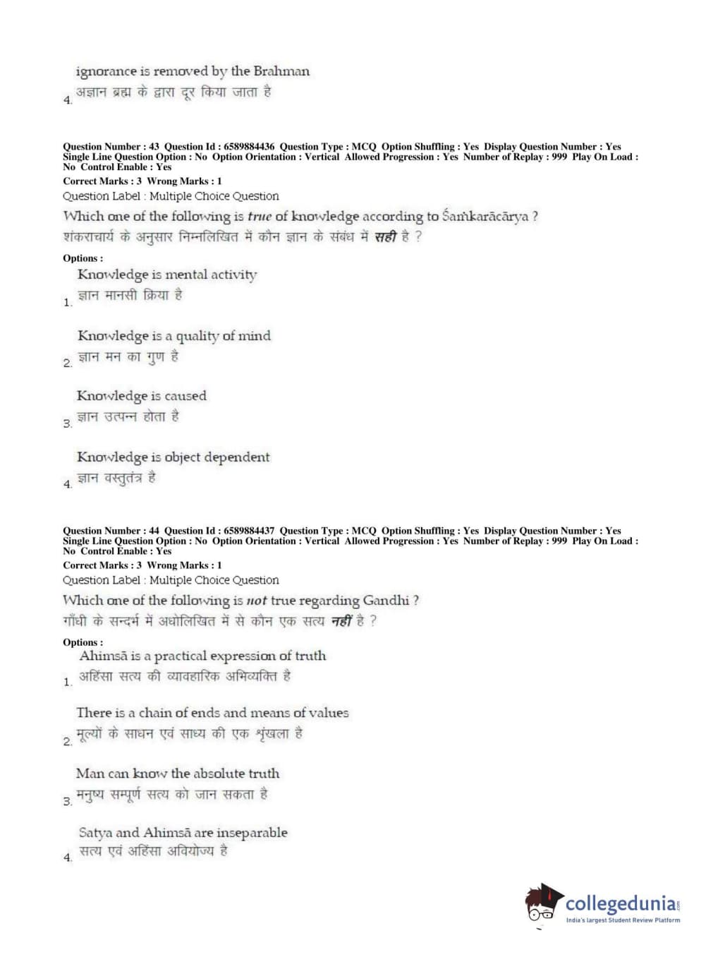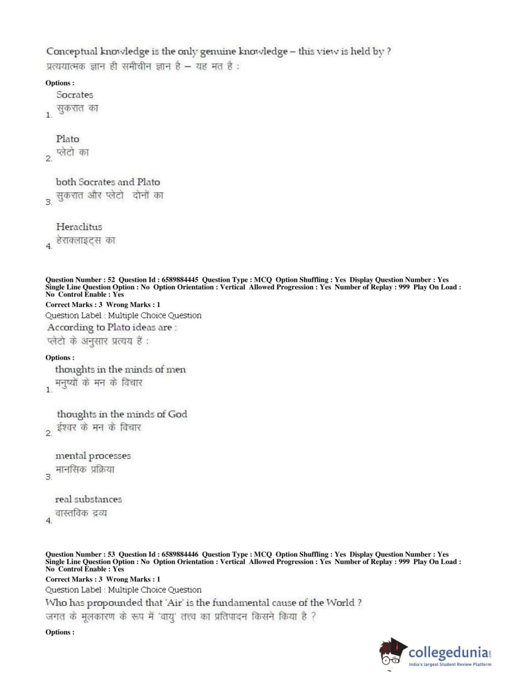 BHU PET 2019 MA PHILOSOPHY AND MA IPR Question Paper with Answer Key PDFs in English ,Shift 2
