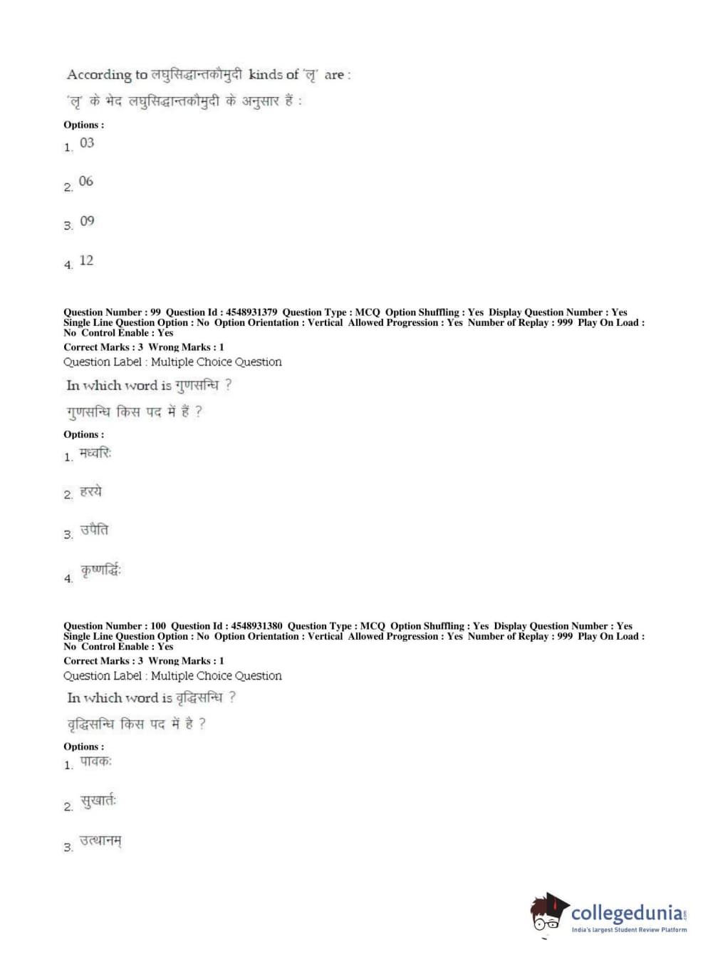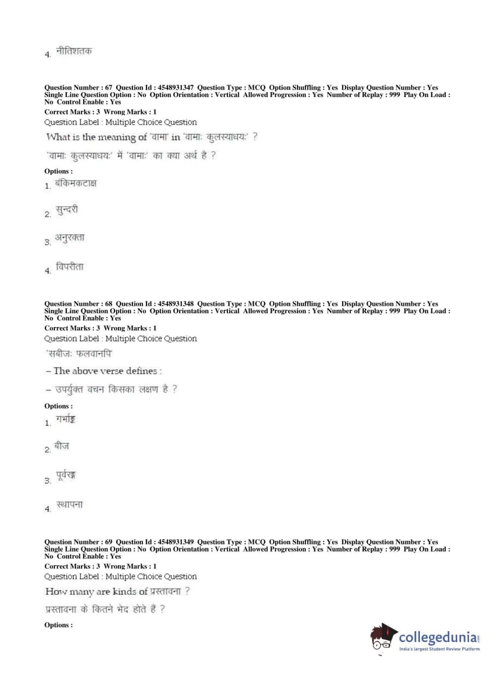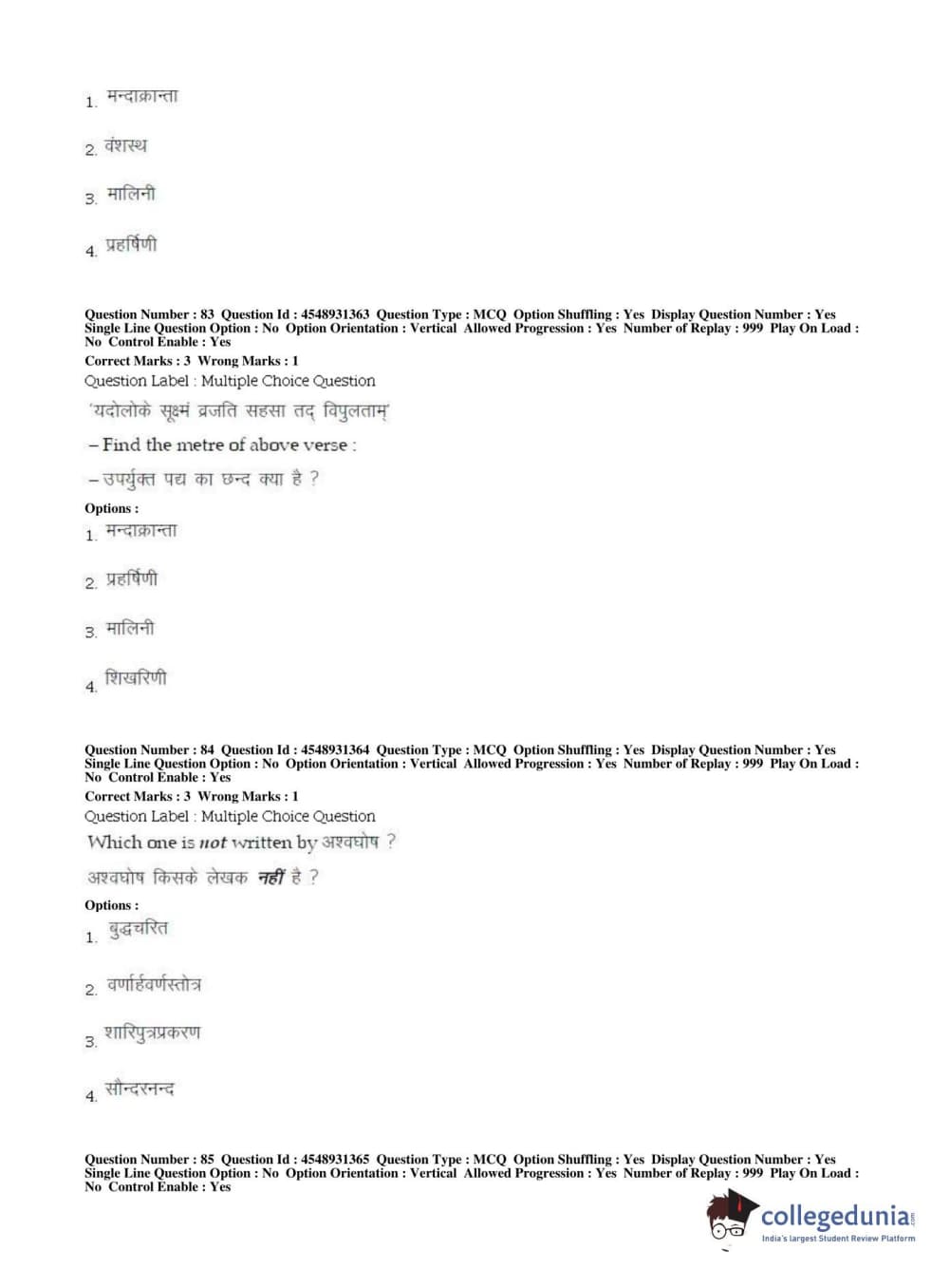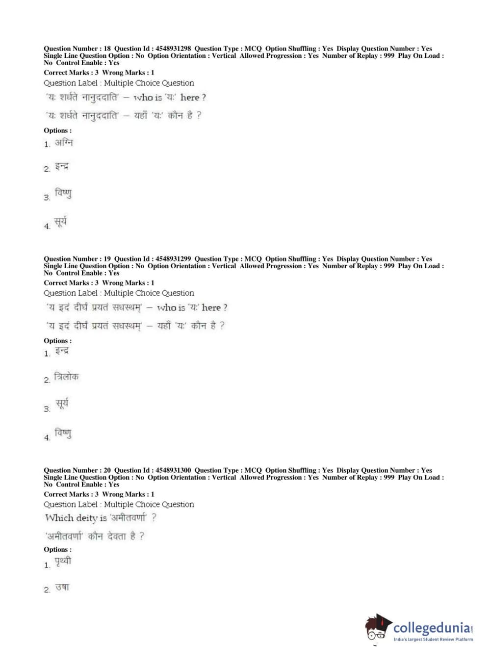 BHU PET 2019 MA SANSKRIT Question Paper with Answer Key PDFs, Shift 1