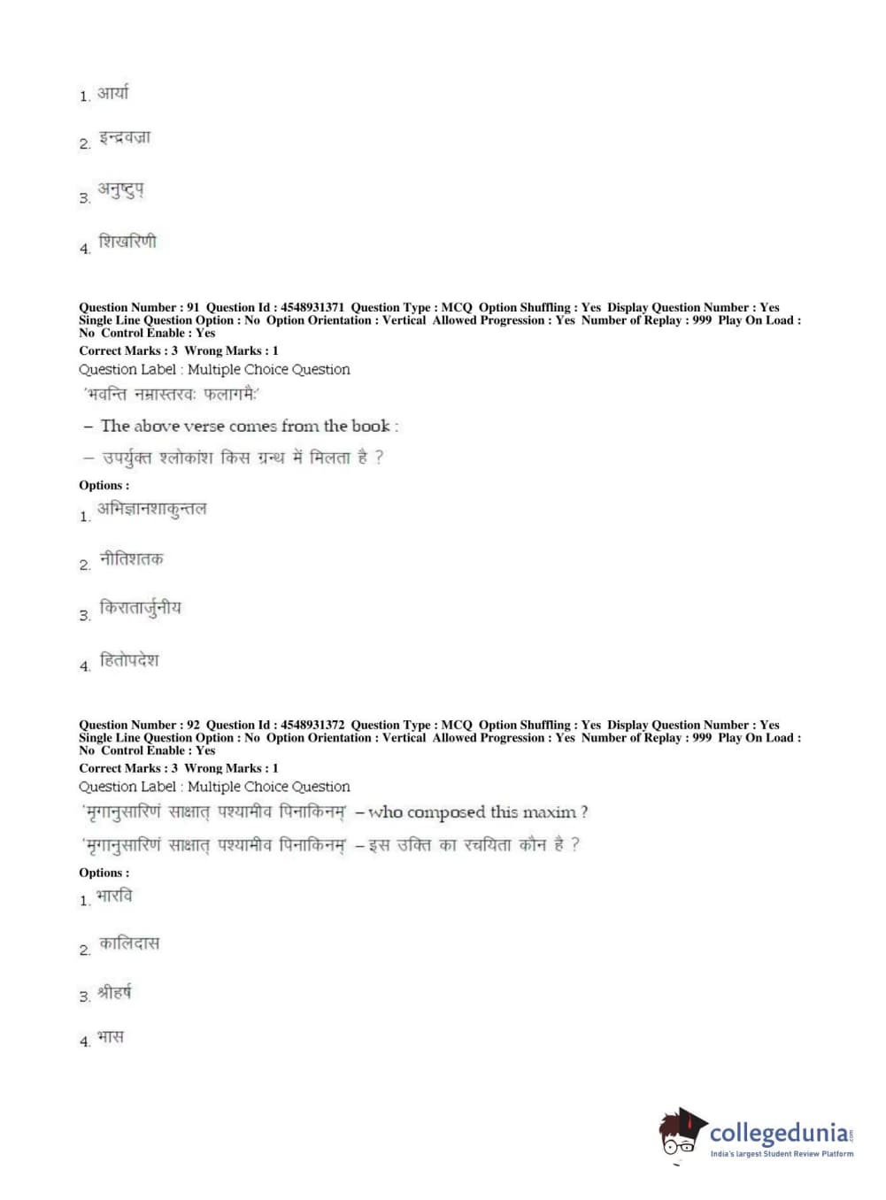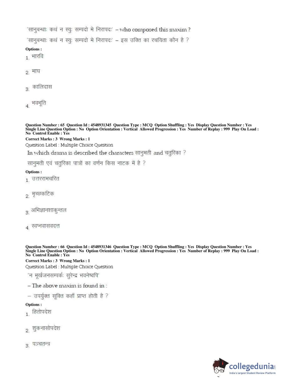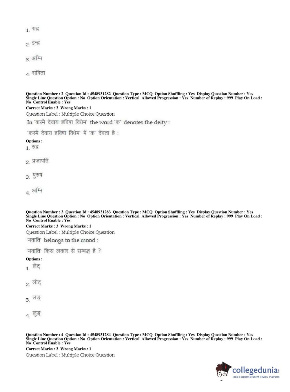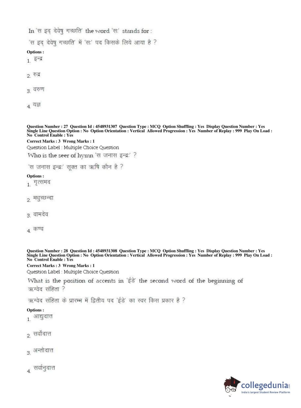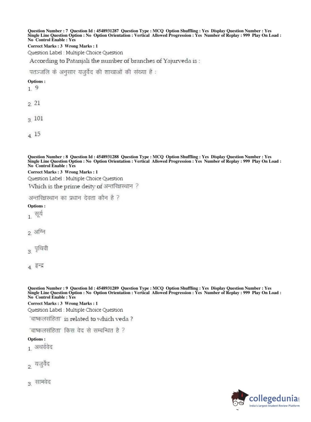 BHU PET 2019 MA SANSKRIT Question Paper with Answer Key PDFs, Shift 1