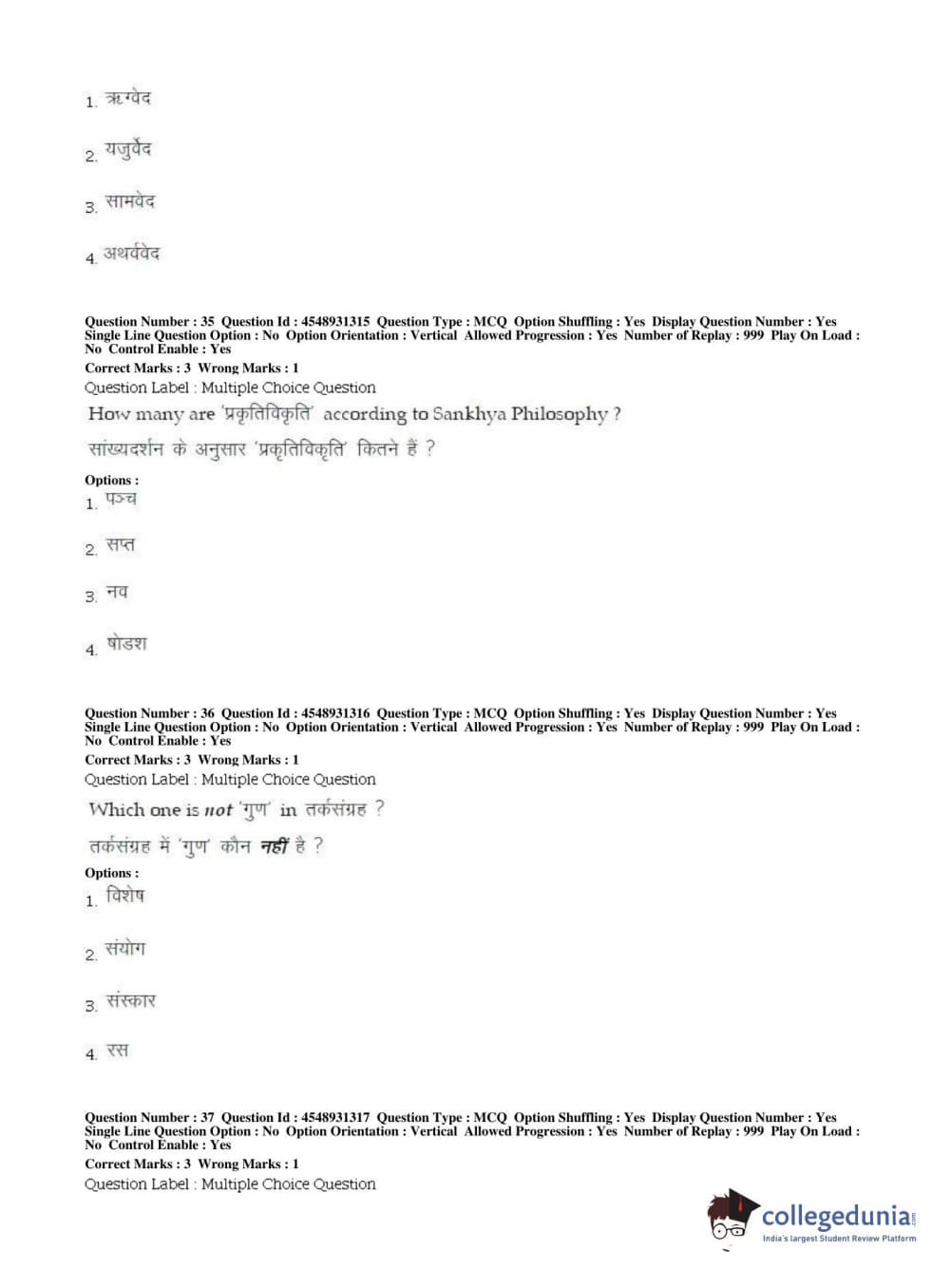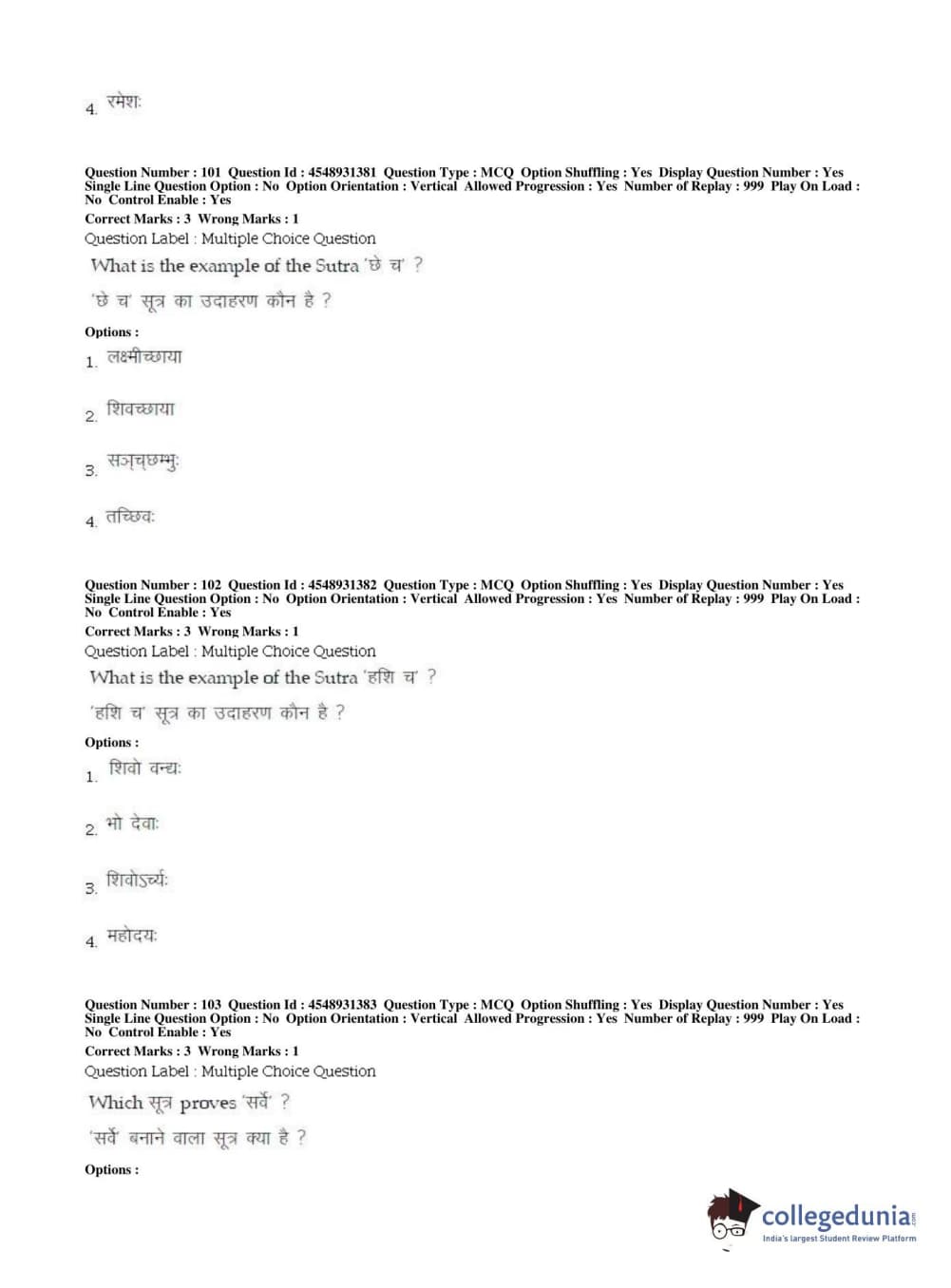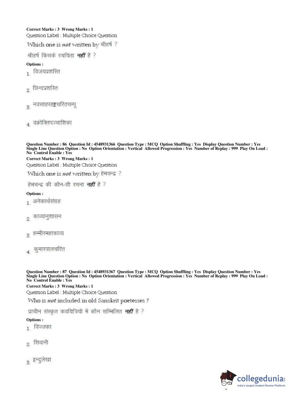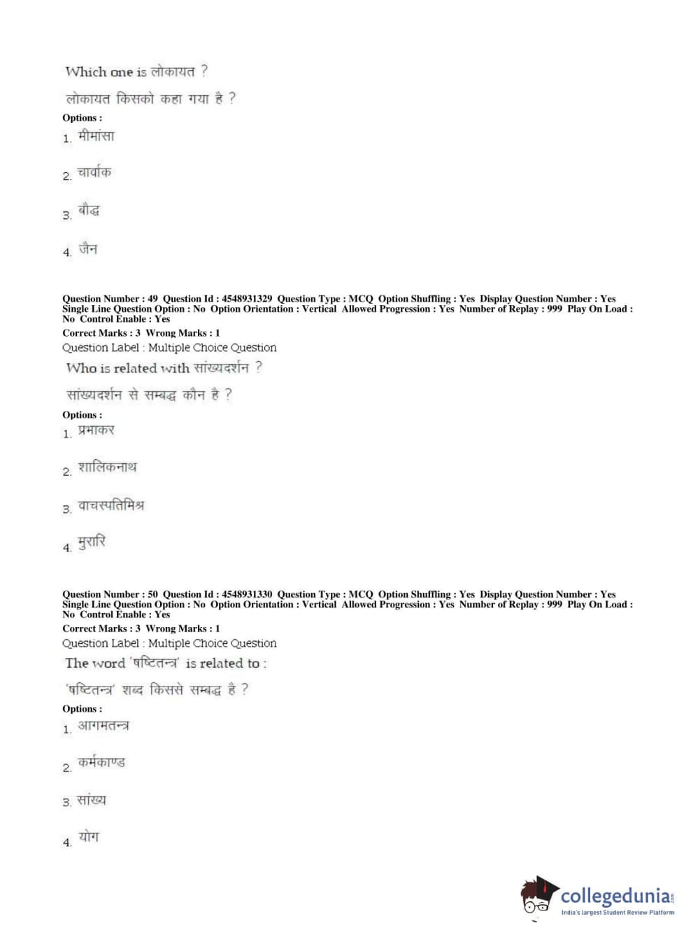 BHU PET 2019 MA SANSKRIT Question Paper with Answer Key PDFs, Shift 1
