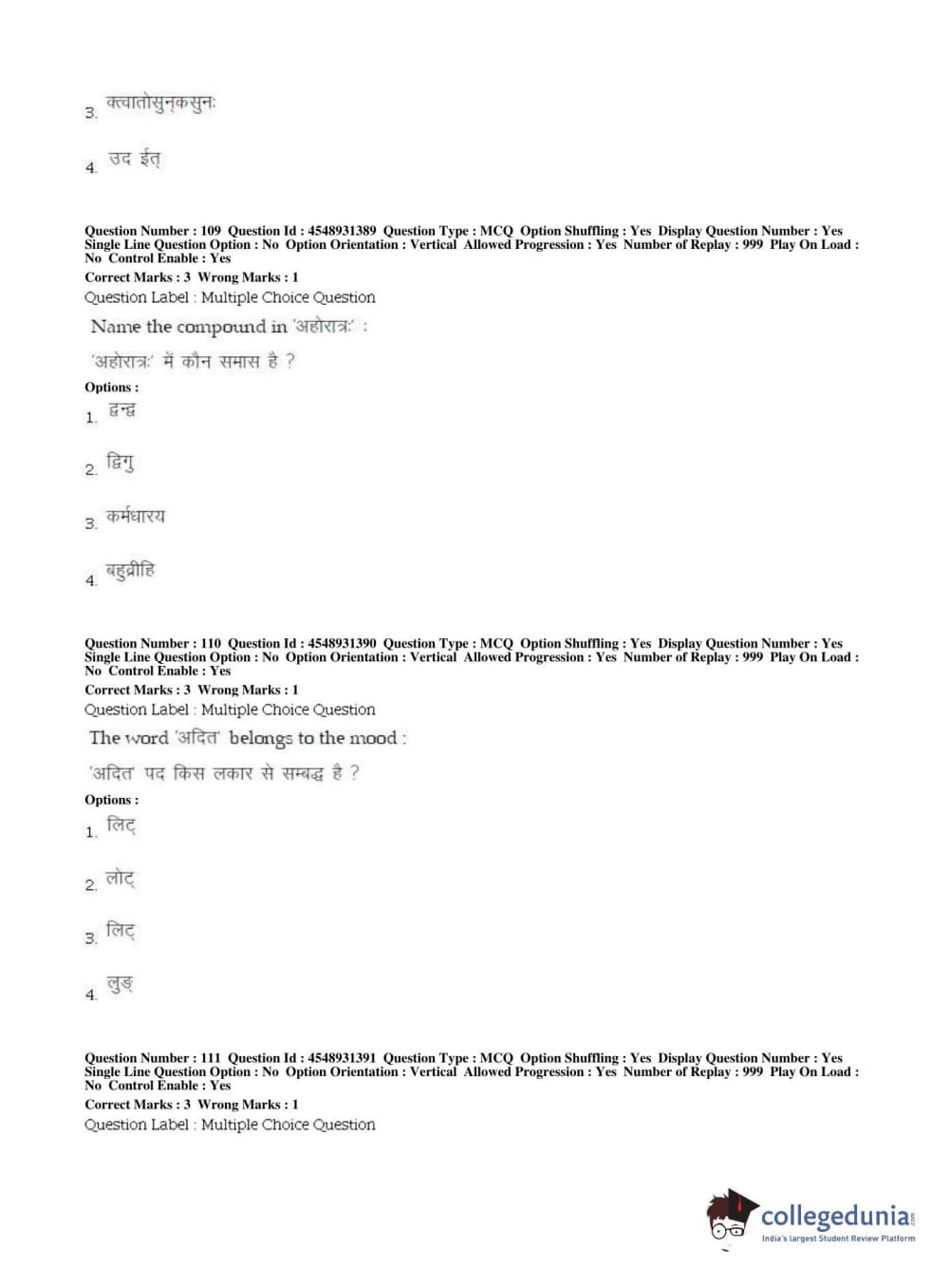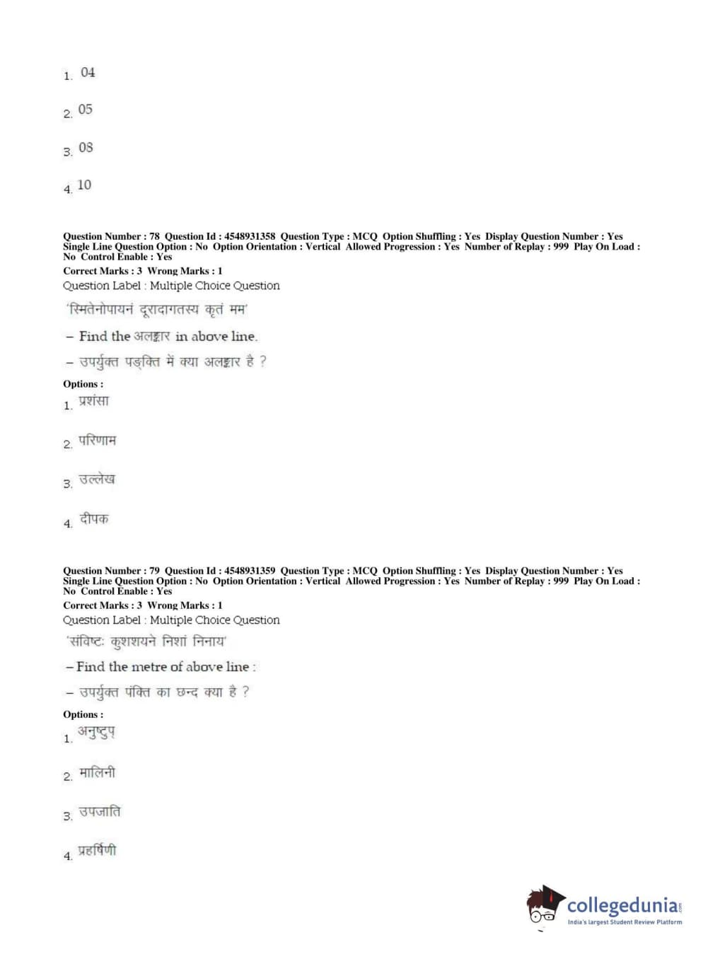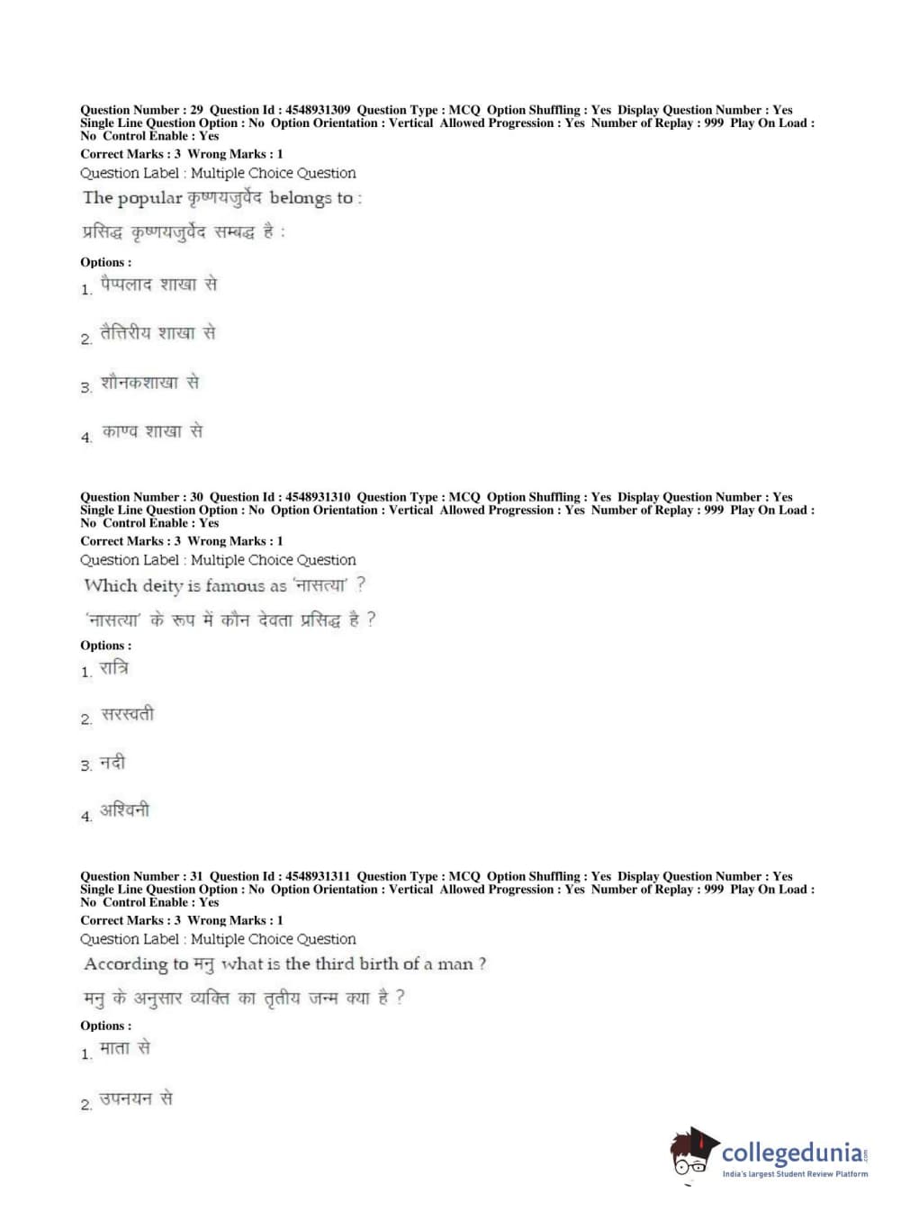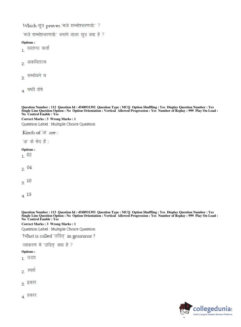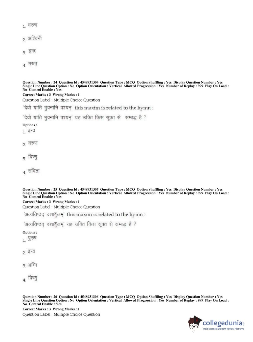 BHU PET 2019 MA SANSKRIT Question Paper with Answer Key PDFs, Shift 1