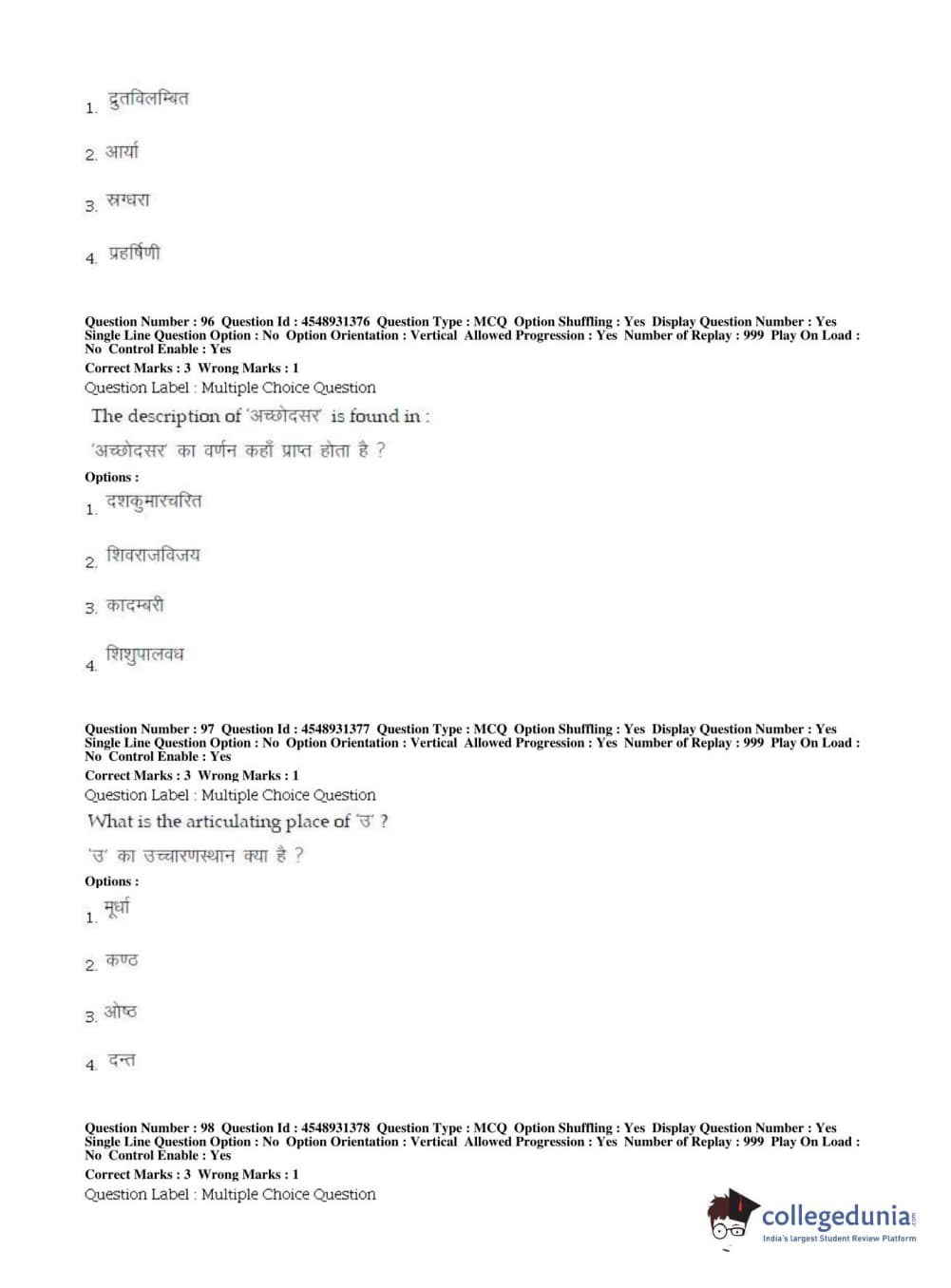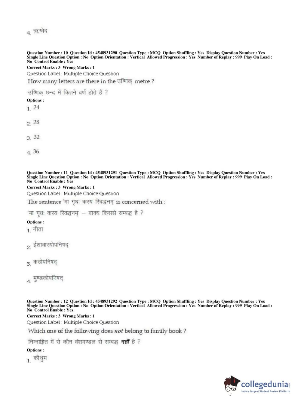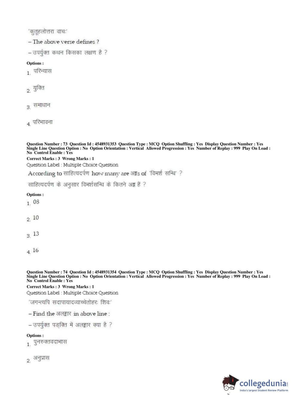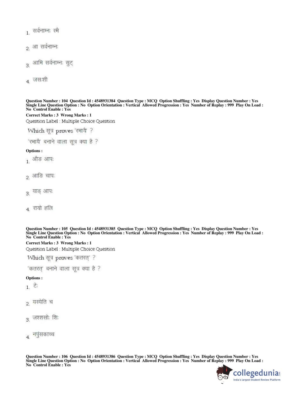 BHU PET 2019 MA SANSKRIT Question Paper with Answer Key PDFs, Shift 1