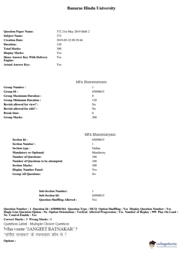 | BHU PET 2019 MPA BHARATNATYAM Question Paper PDF | BHU PET 2019 MPA BHARATNATYAM Answer Key PDF |