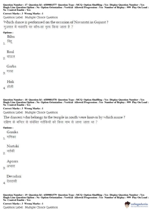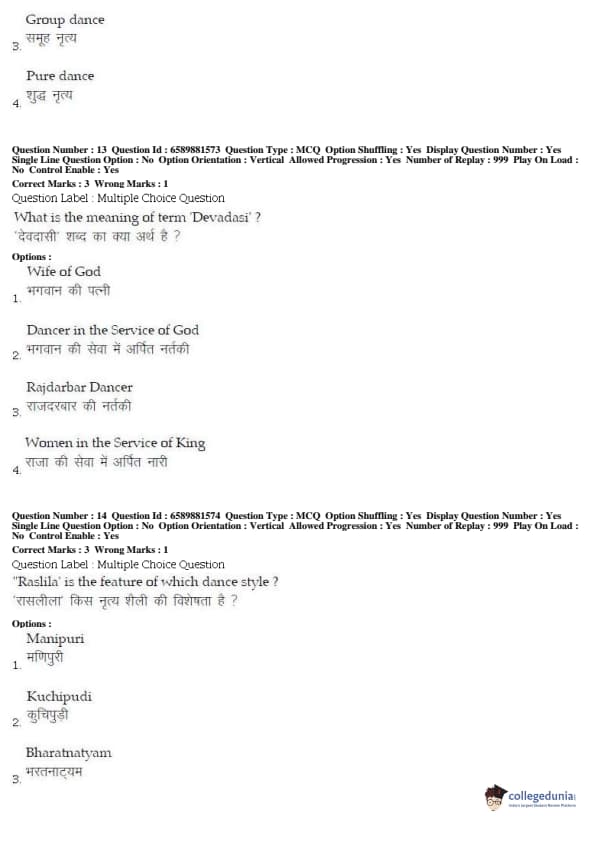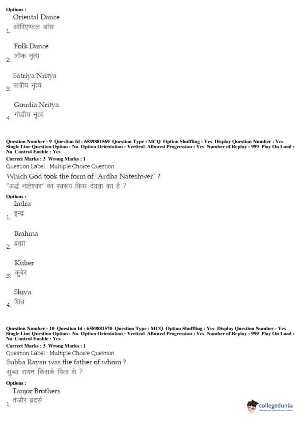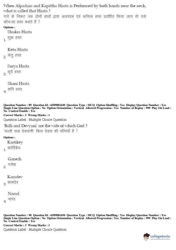 BHU PET 2019 MPA BHARATNATYAM Question Paper with Answer Key PDFs, Shift 2