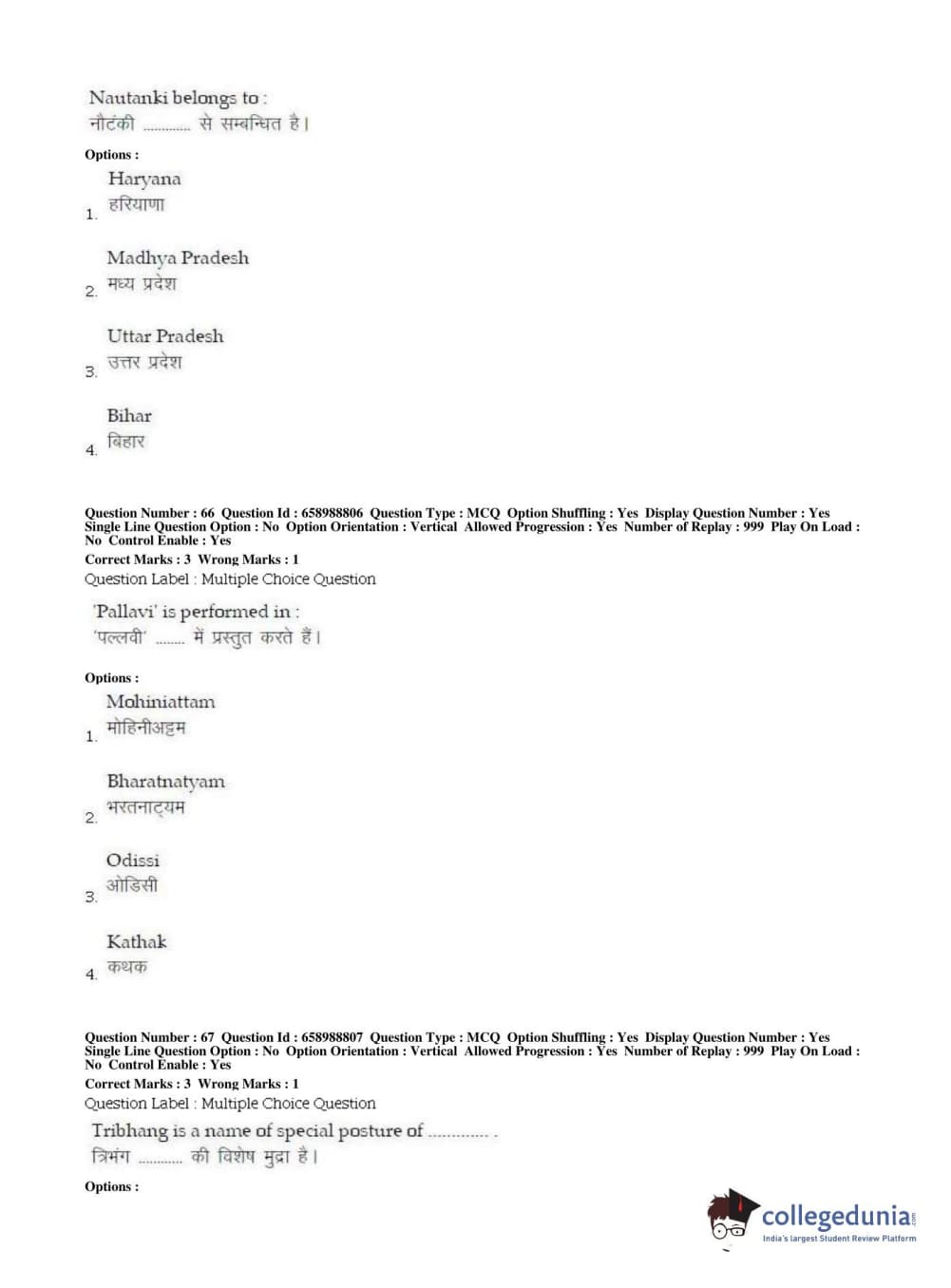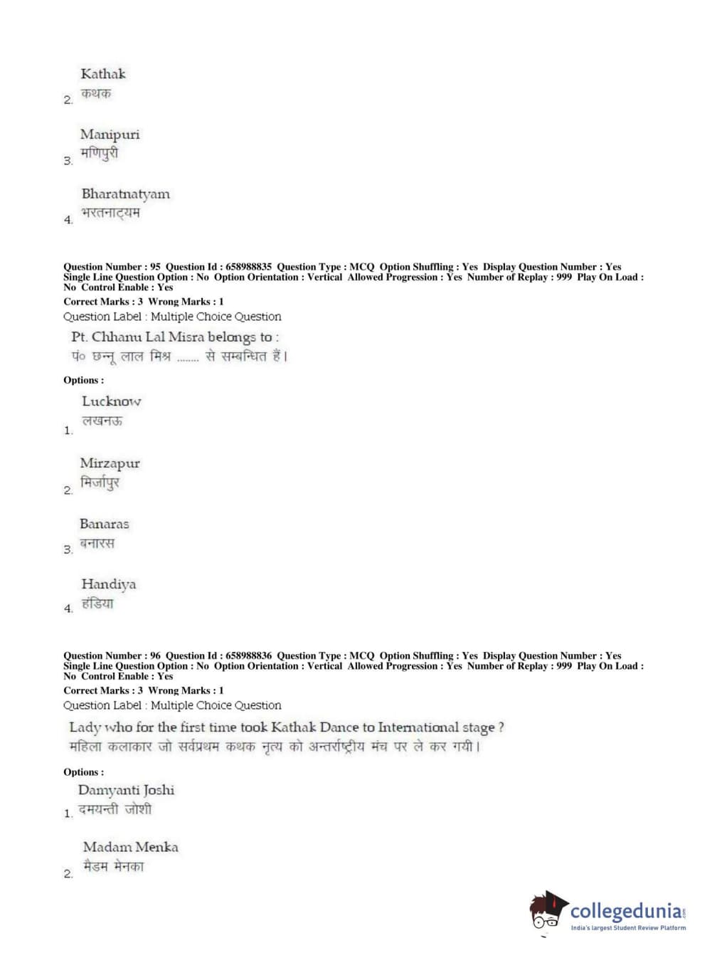 | BHU PET 2019 MPA KATHAK Question Paper PDF | BHU PET 2019 MPA KATHAK Answer Key PDF |