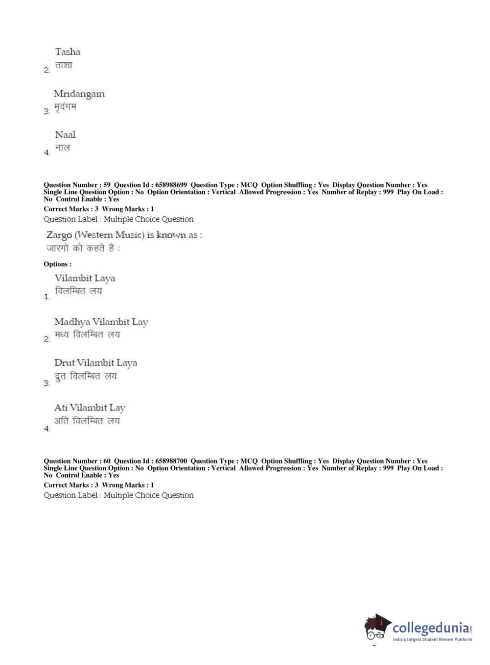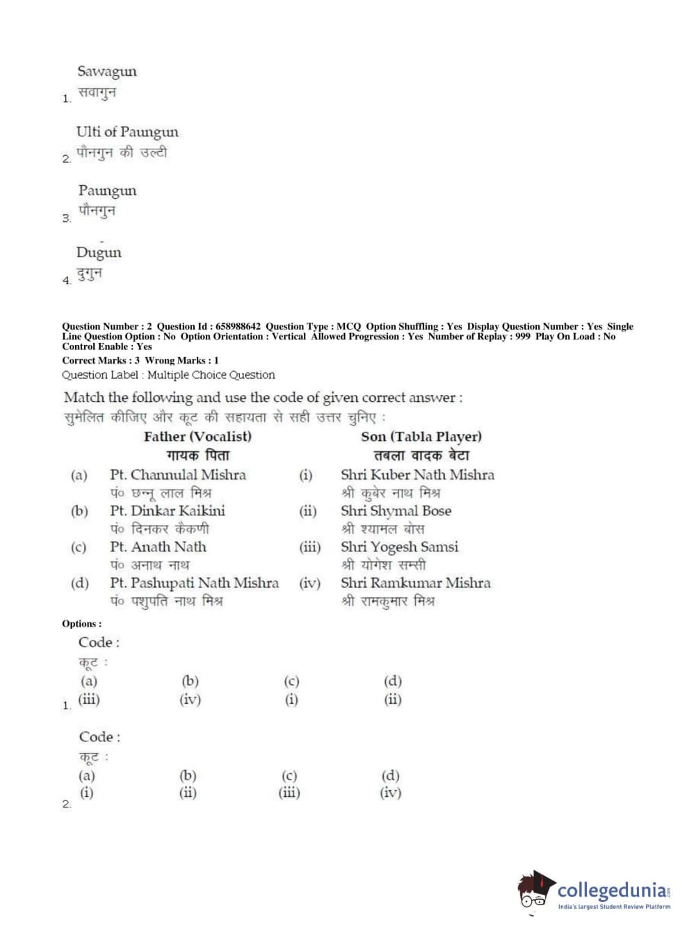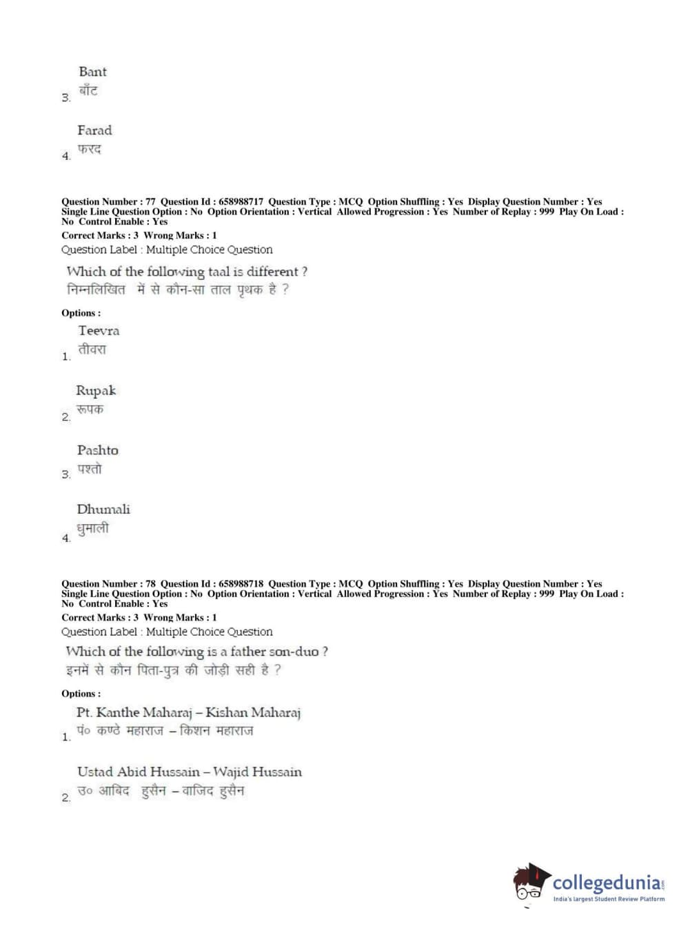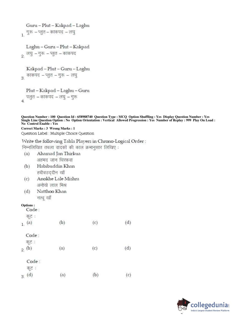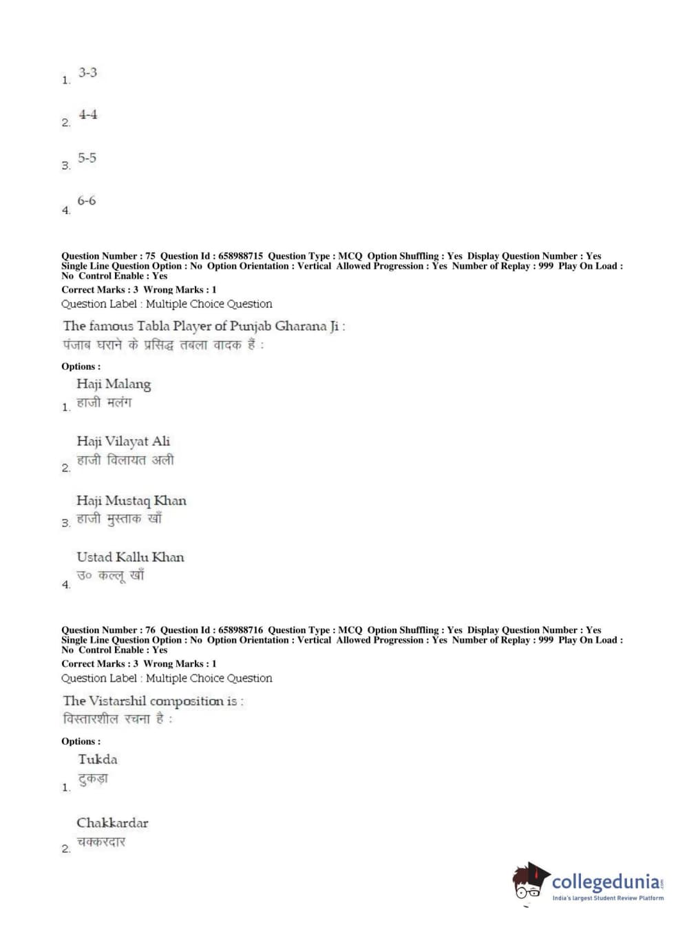 BHU PET 2019 MPA TABLA Question Paper with Answer Key PDFs, Shift 2