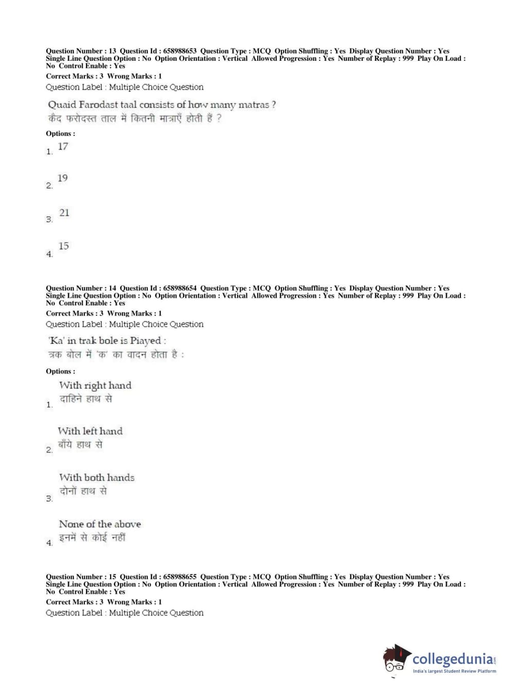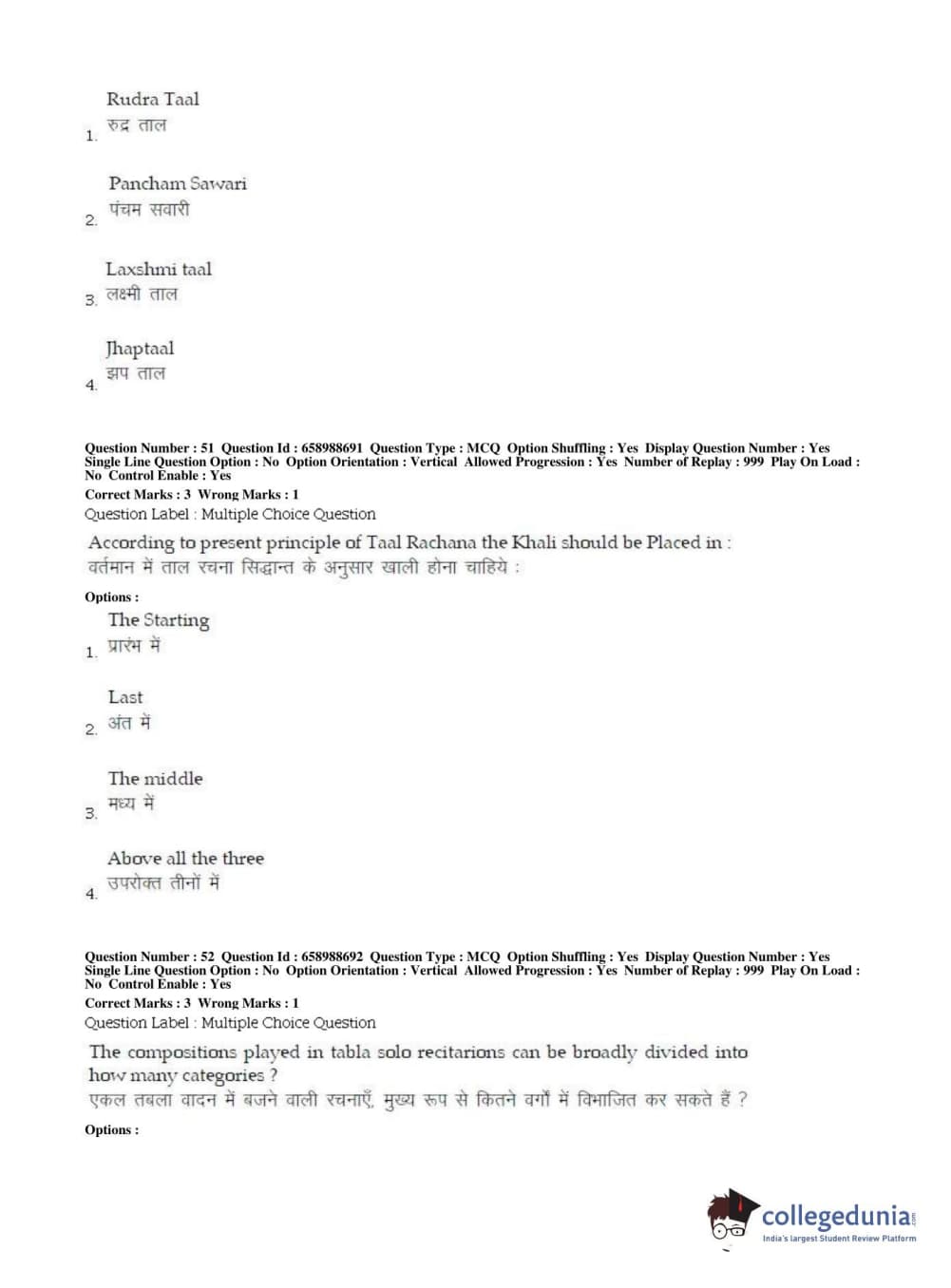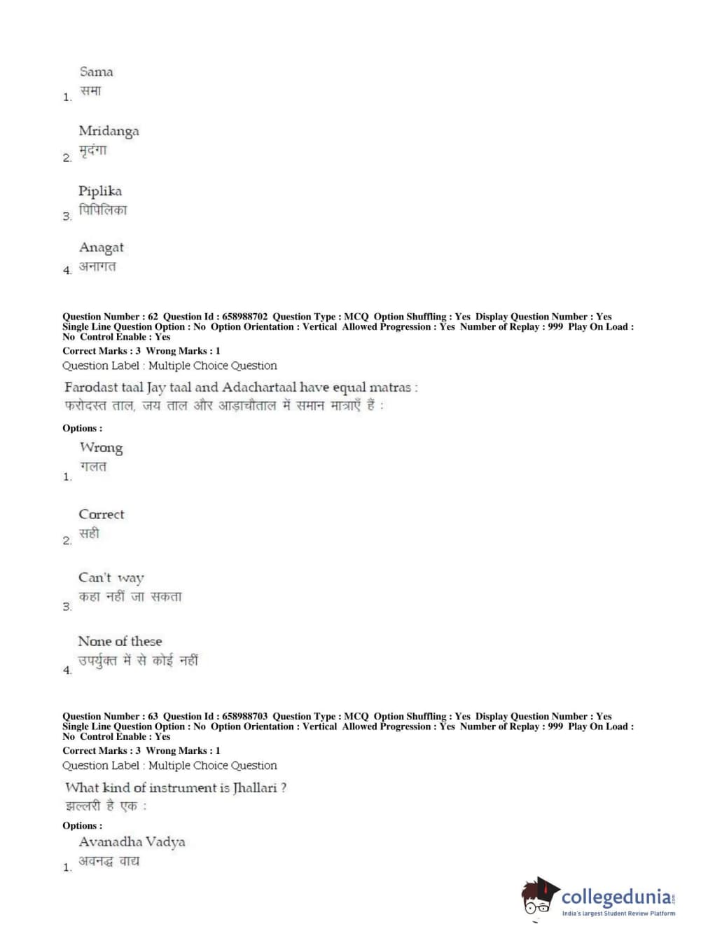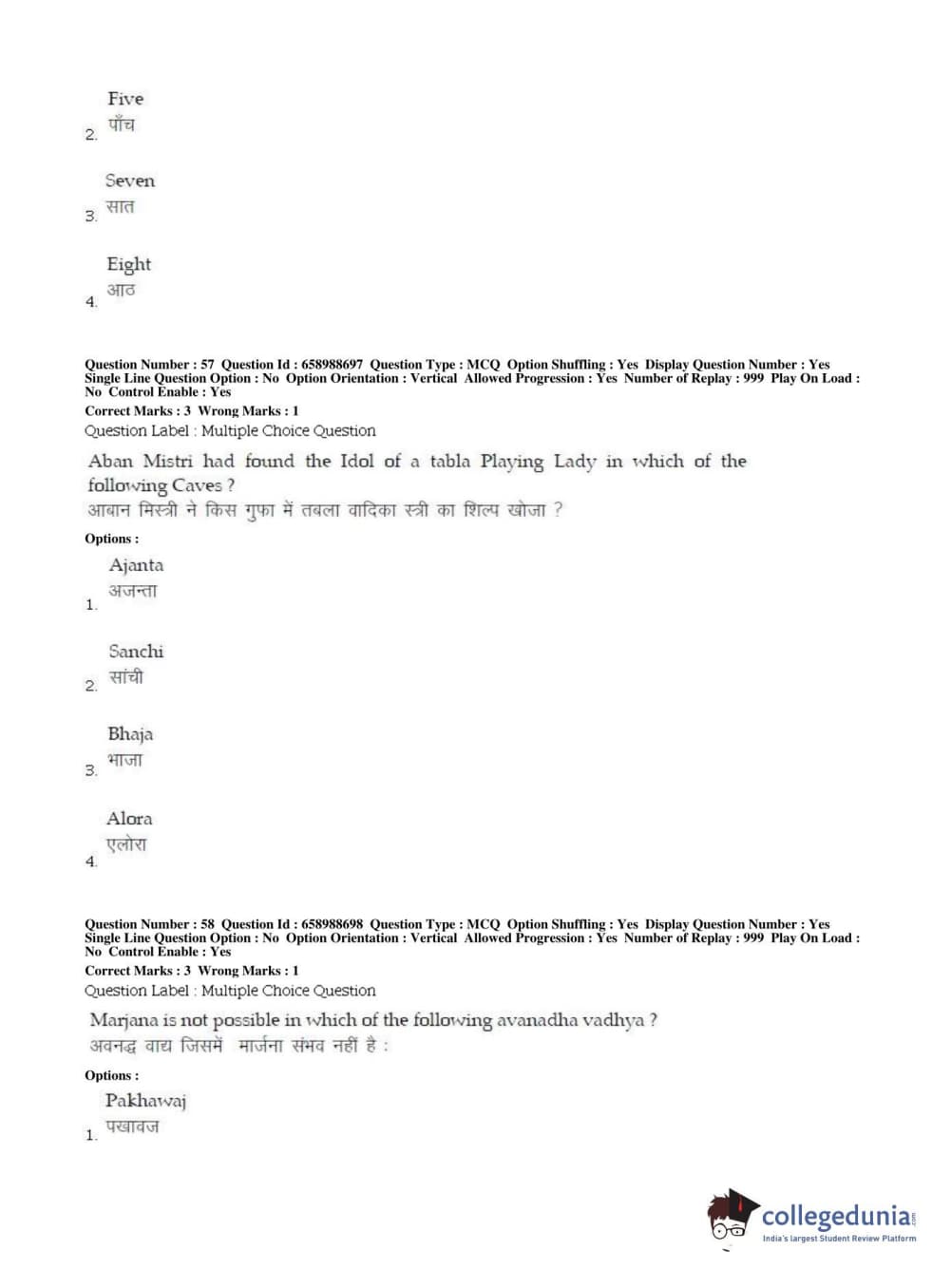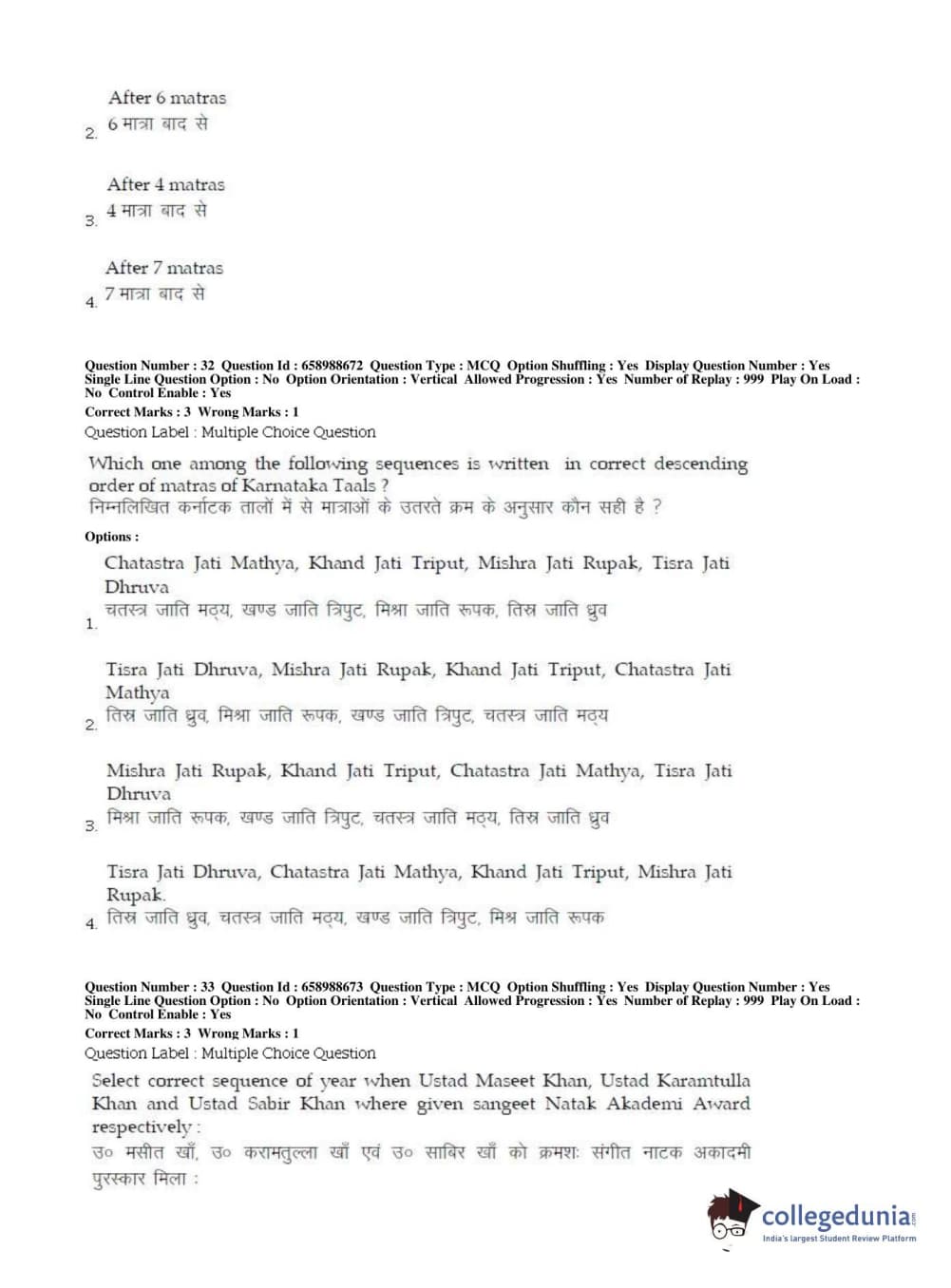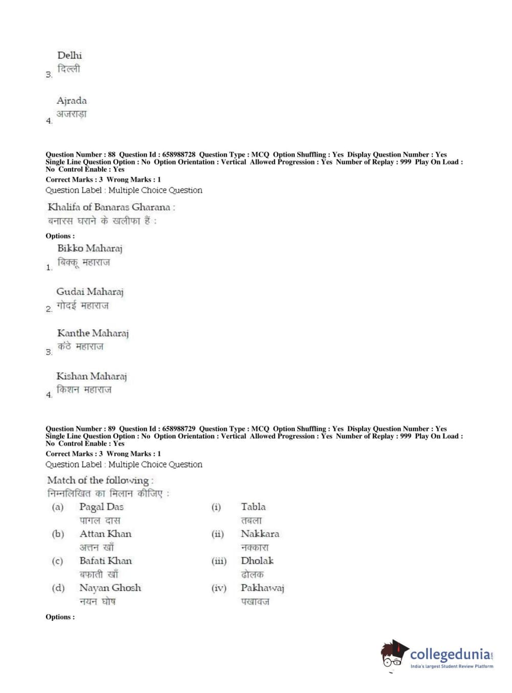 BHU PET 2019 MPA TABLA Question Paper with Answer Key PDFs, Shift 2
