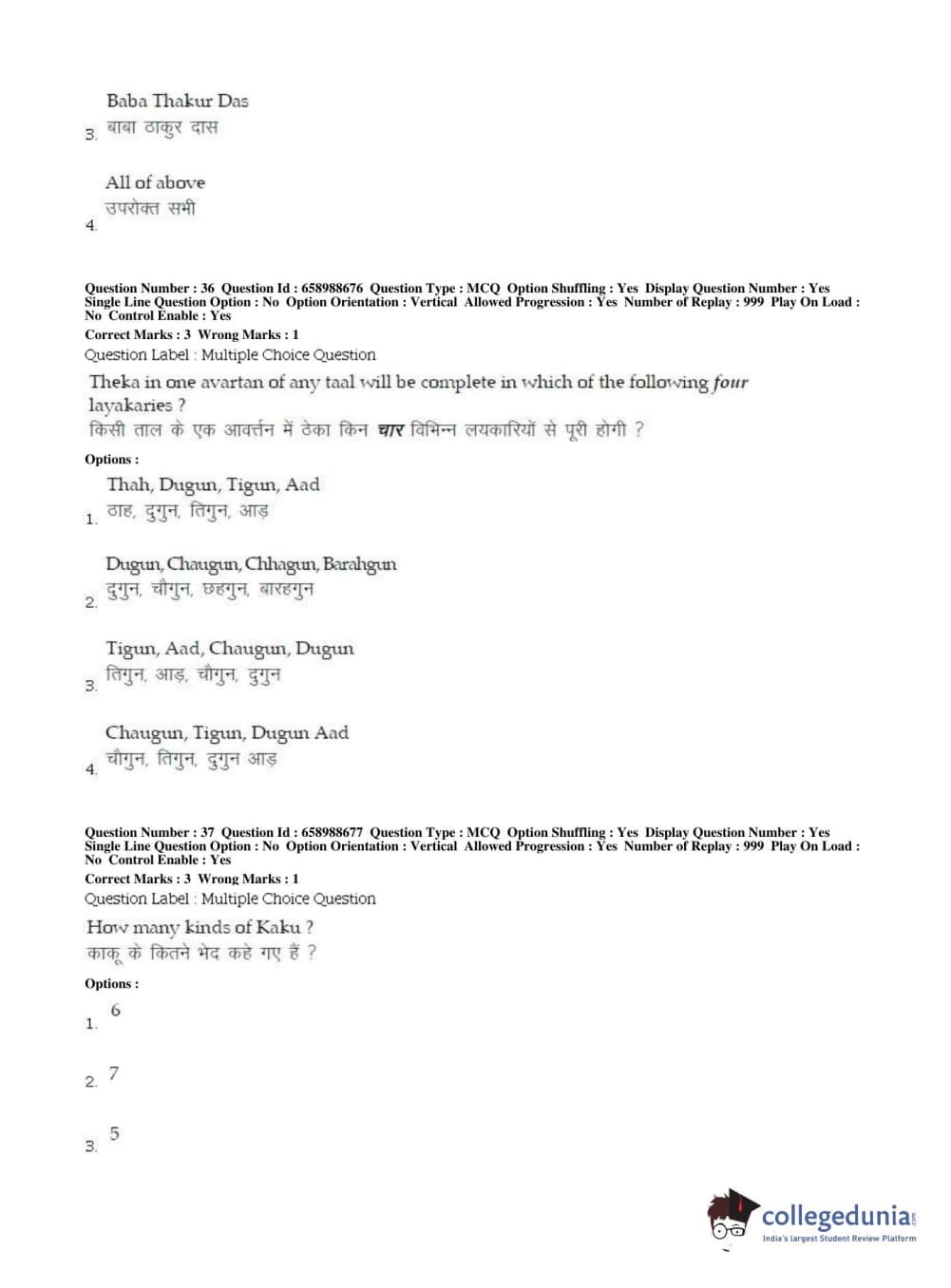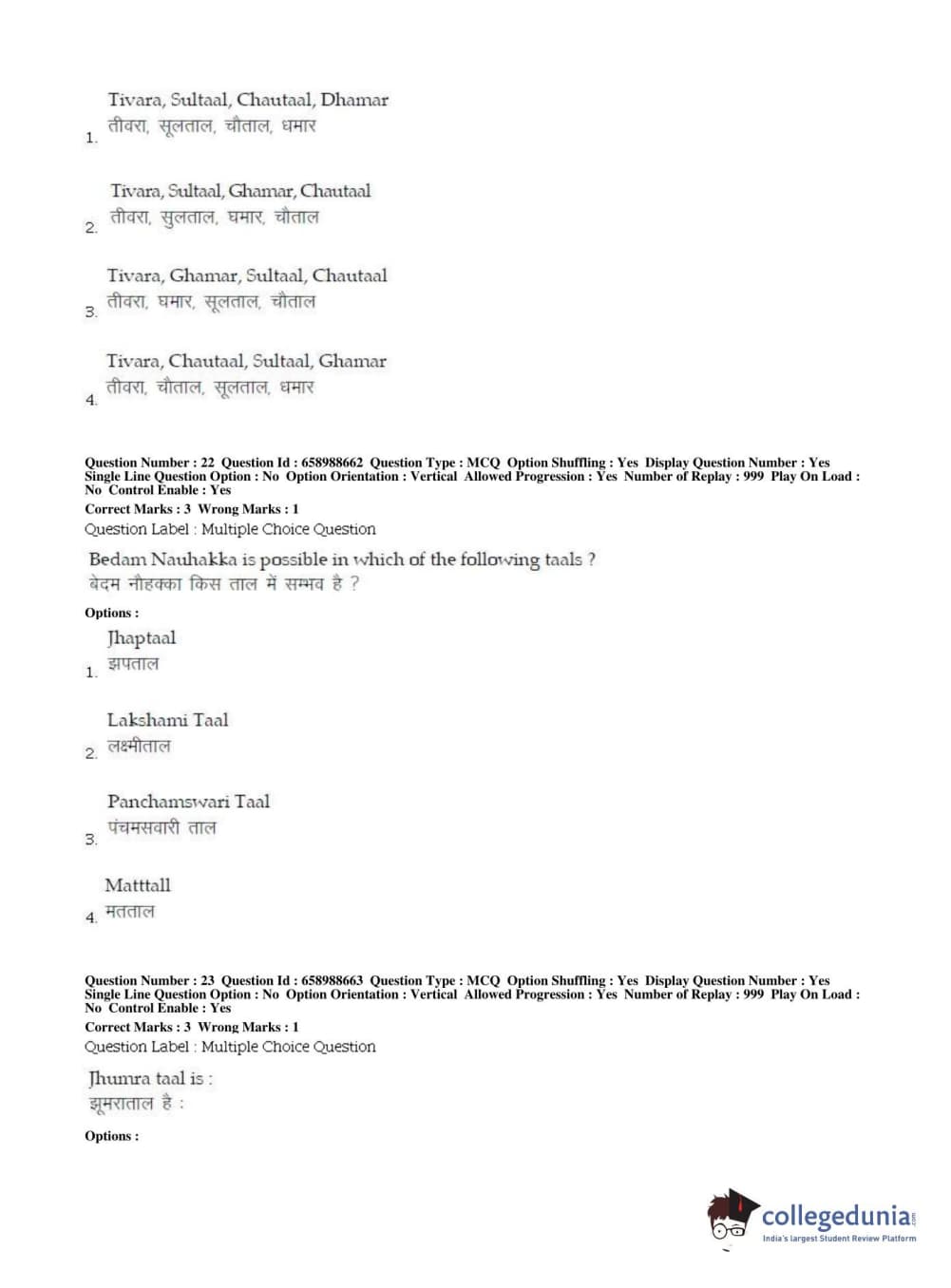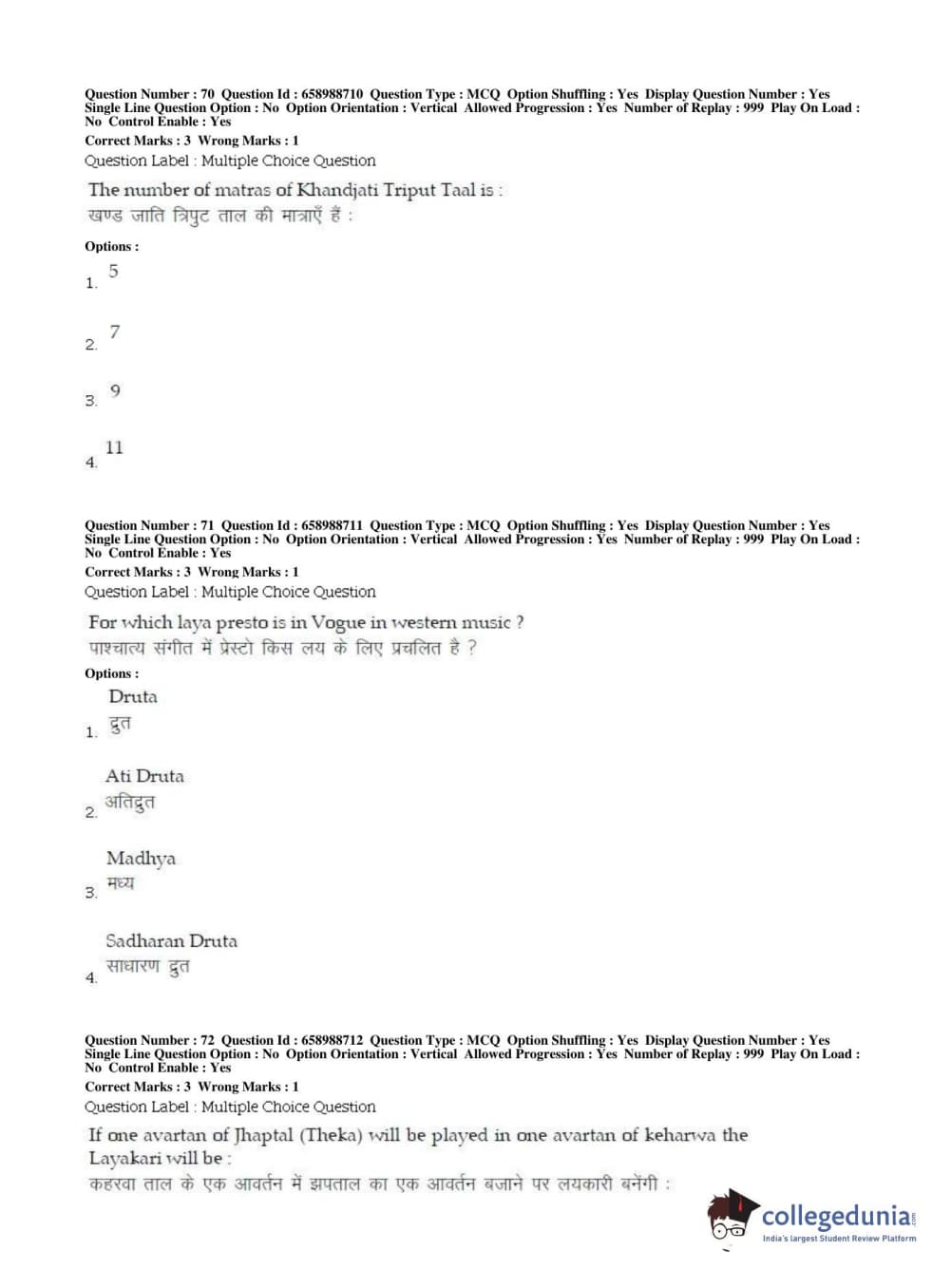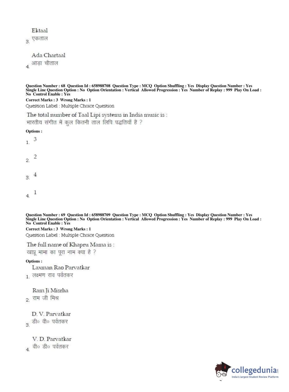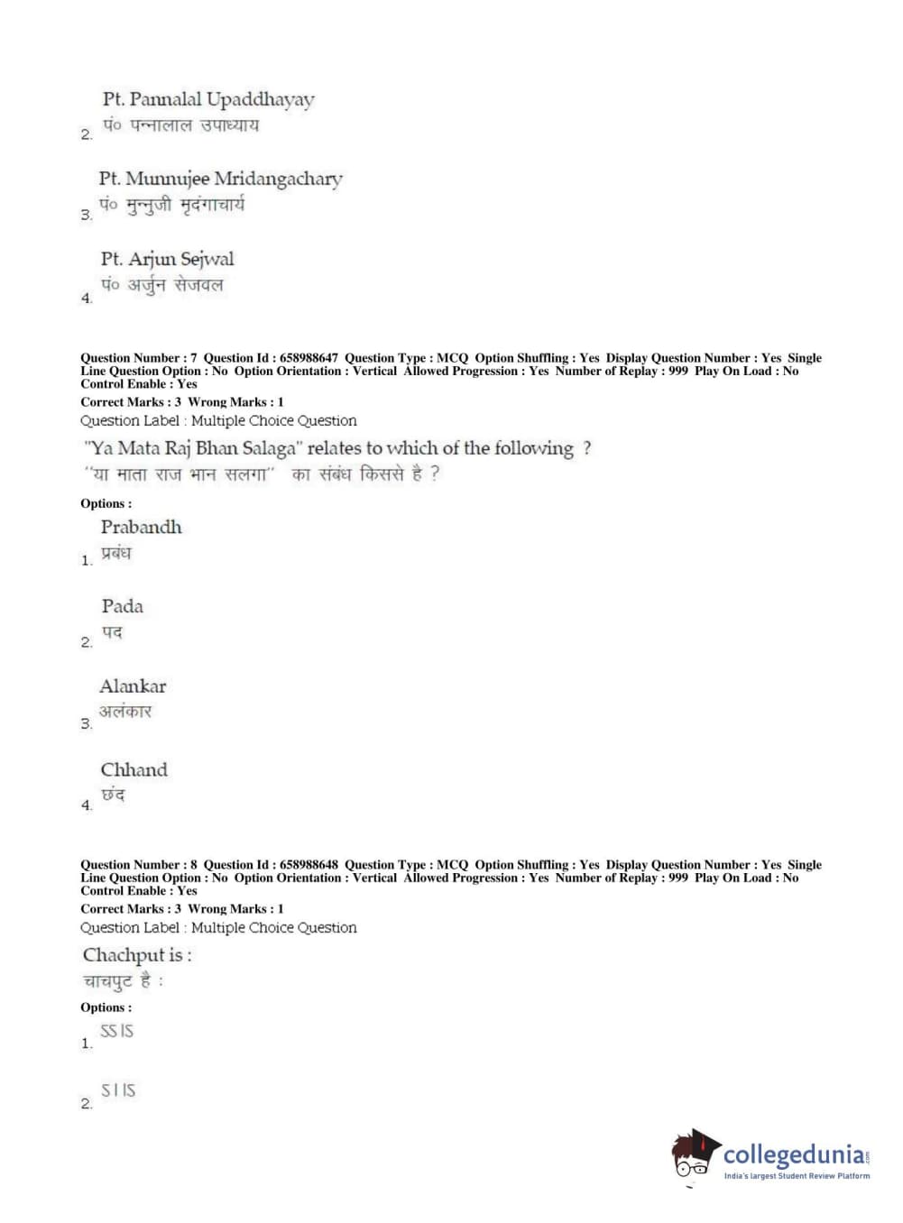 BHU PET 2019 MPA TABLA Question Paper with Answer Key PDFs, Shift 2