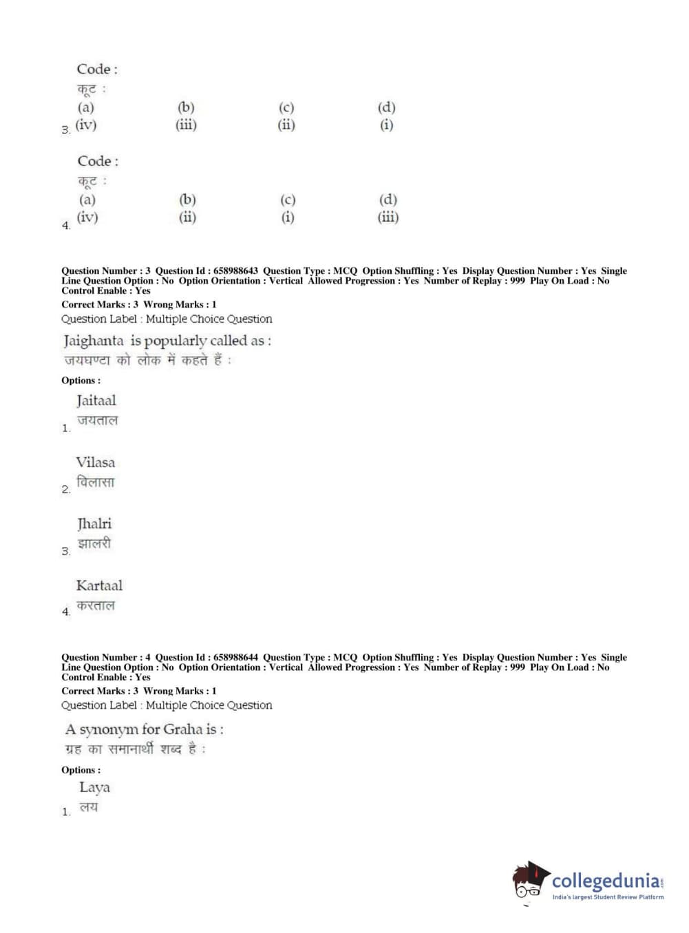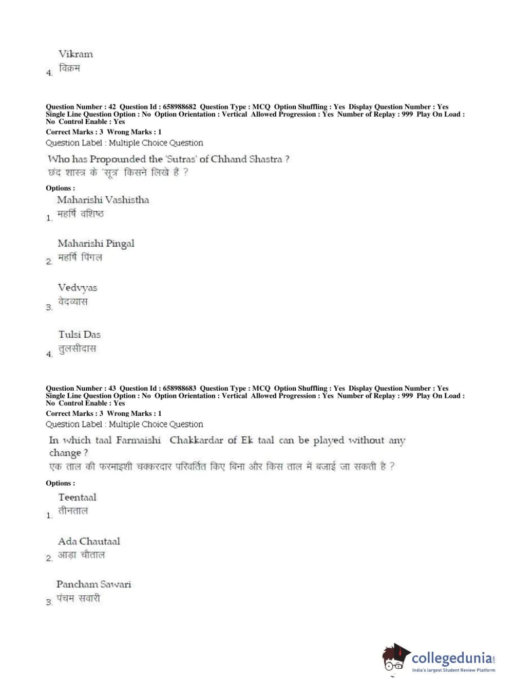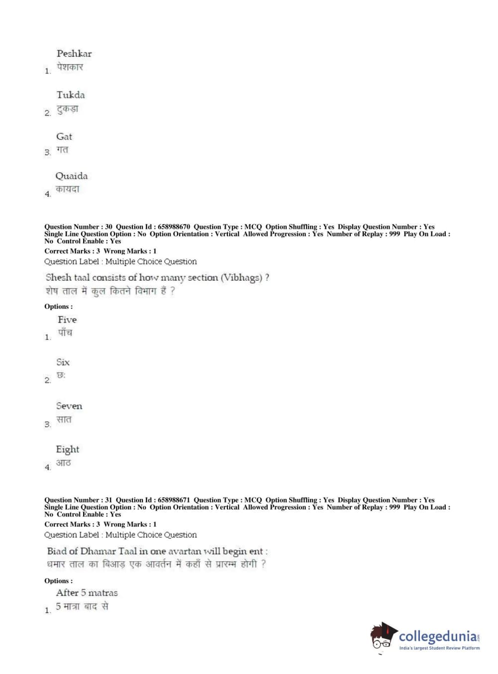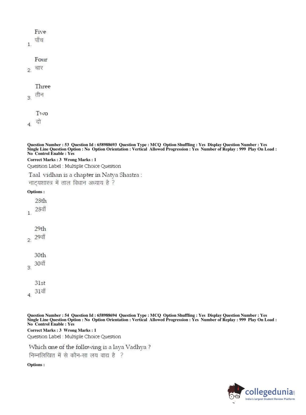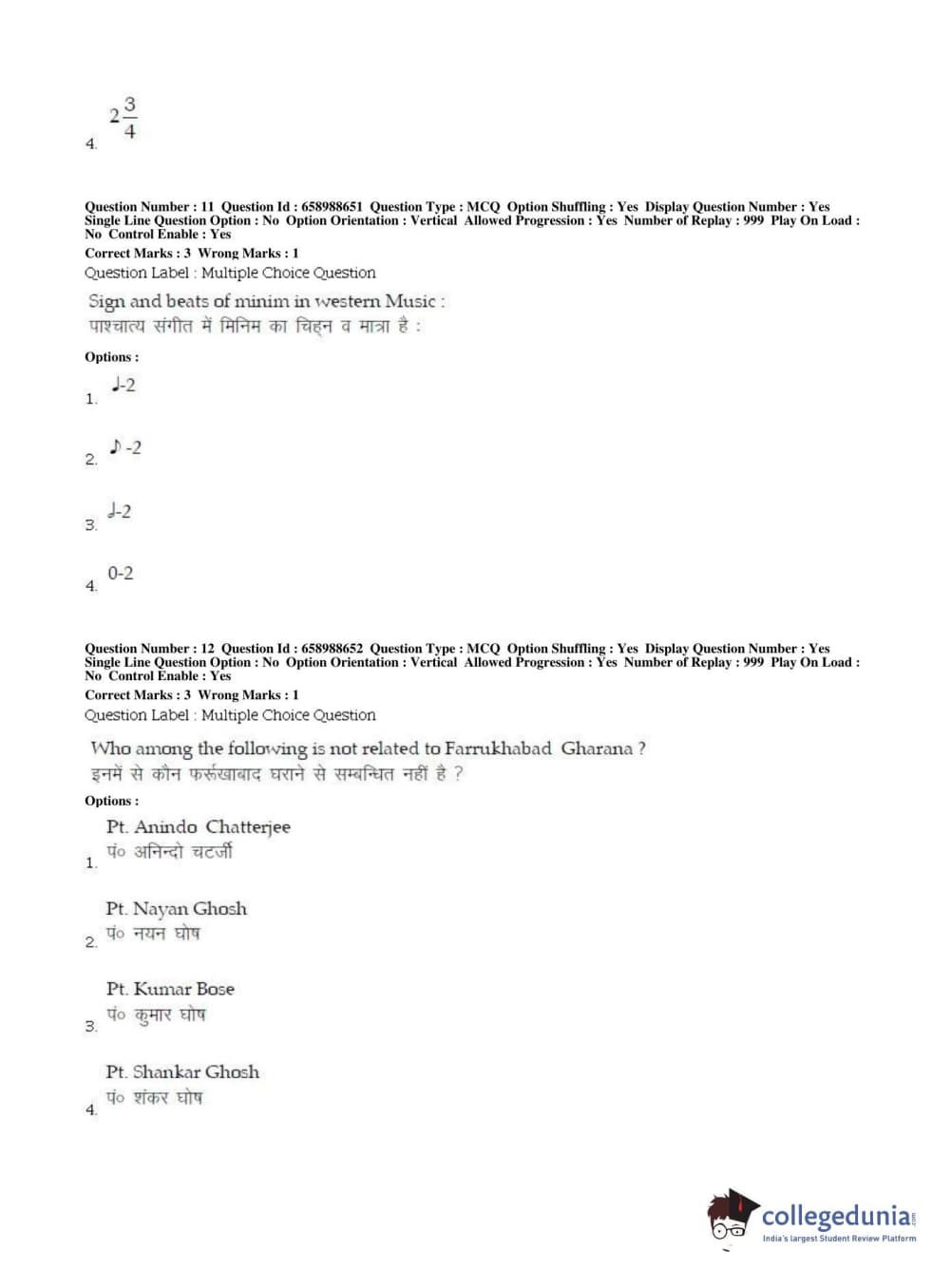BHU PET 2019 MPA TABLA Question Paper with Answer Key PDFs, Shift 2