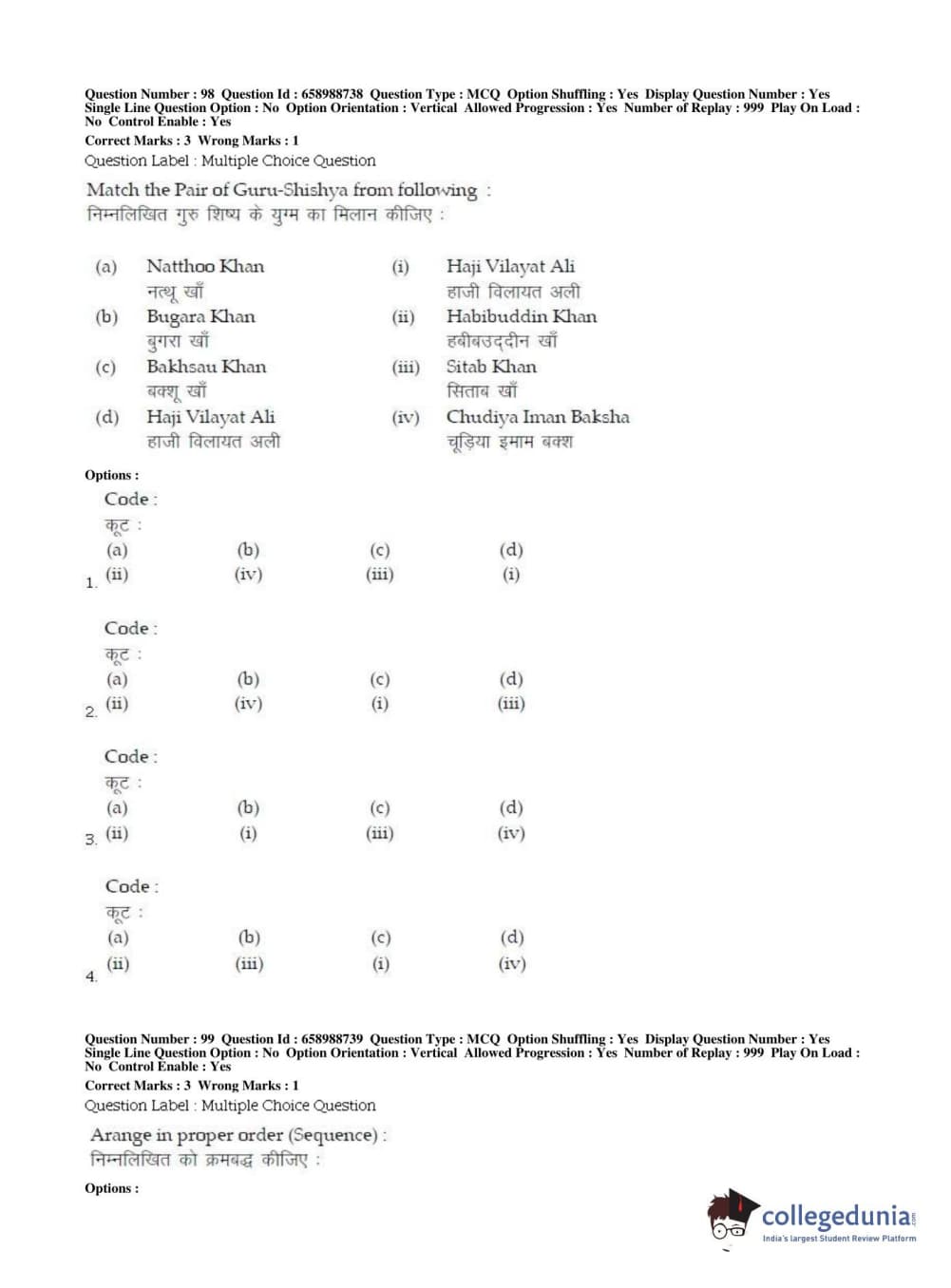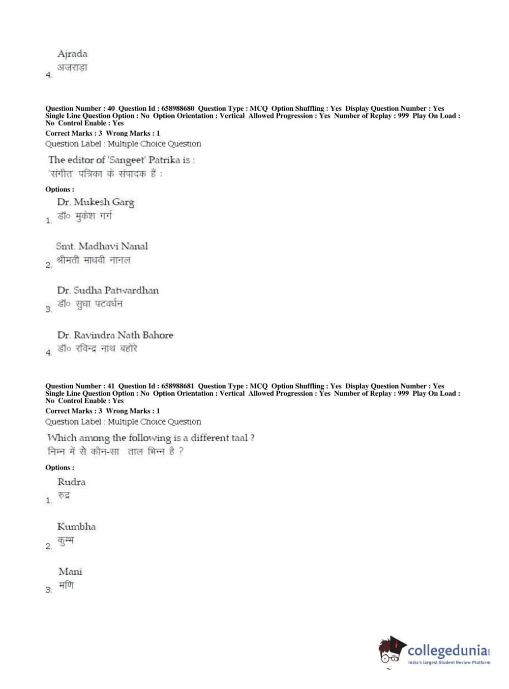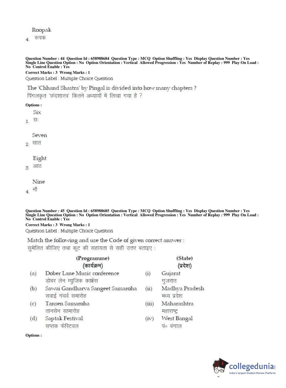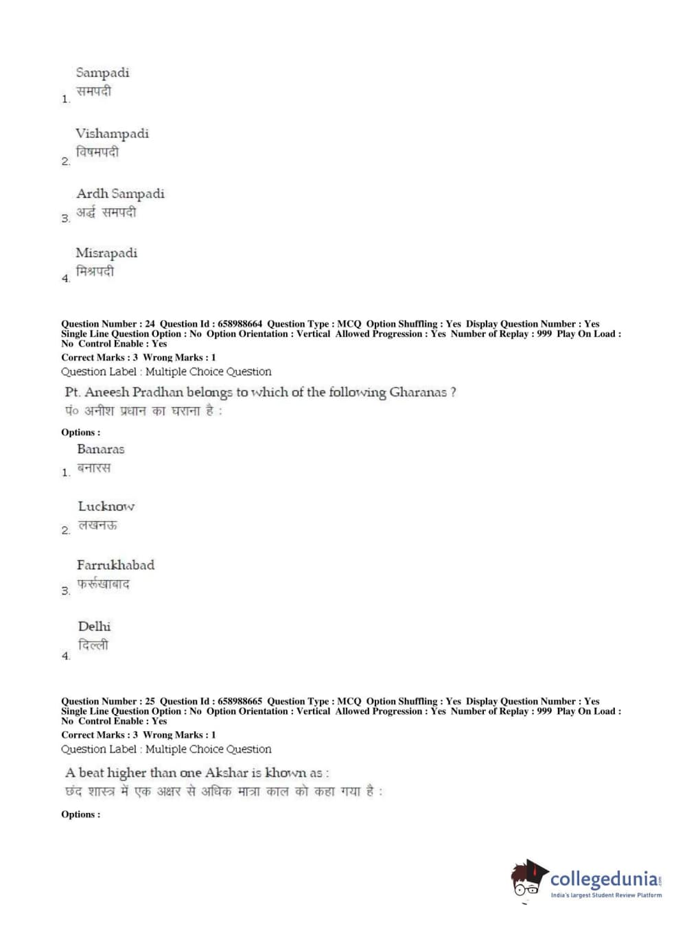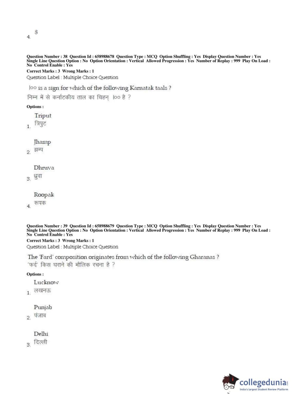 BHU PET 2019 MPA TABLA Question Paper with Answer Key PDFs, Shift 2