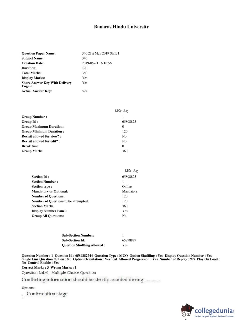 BHU PET 2019 MSC AG Question paper with answer key pdf conducted on May 21, 2019 in Shift 1 is available for download. The exam was successfully organized by Banaras Hindu University (BHU). The question paper comprised a total of 120 questions.