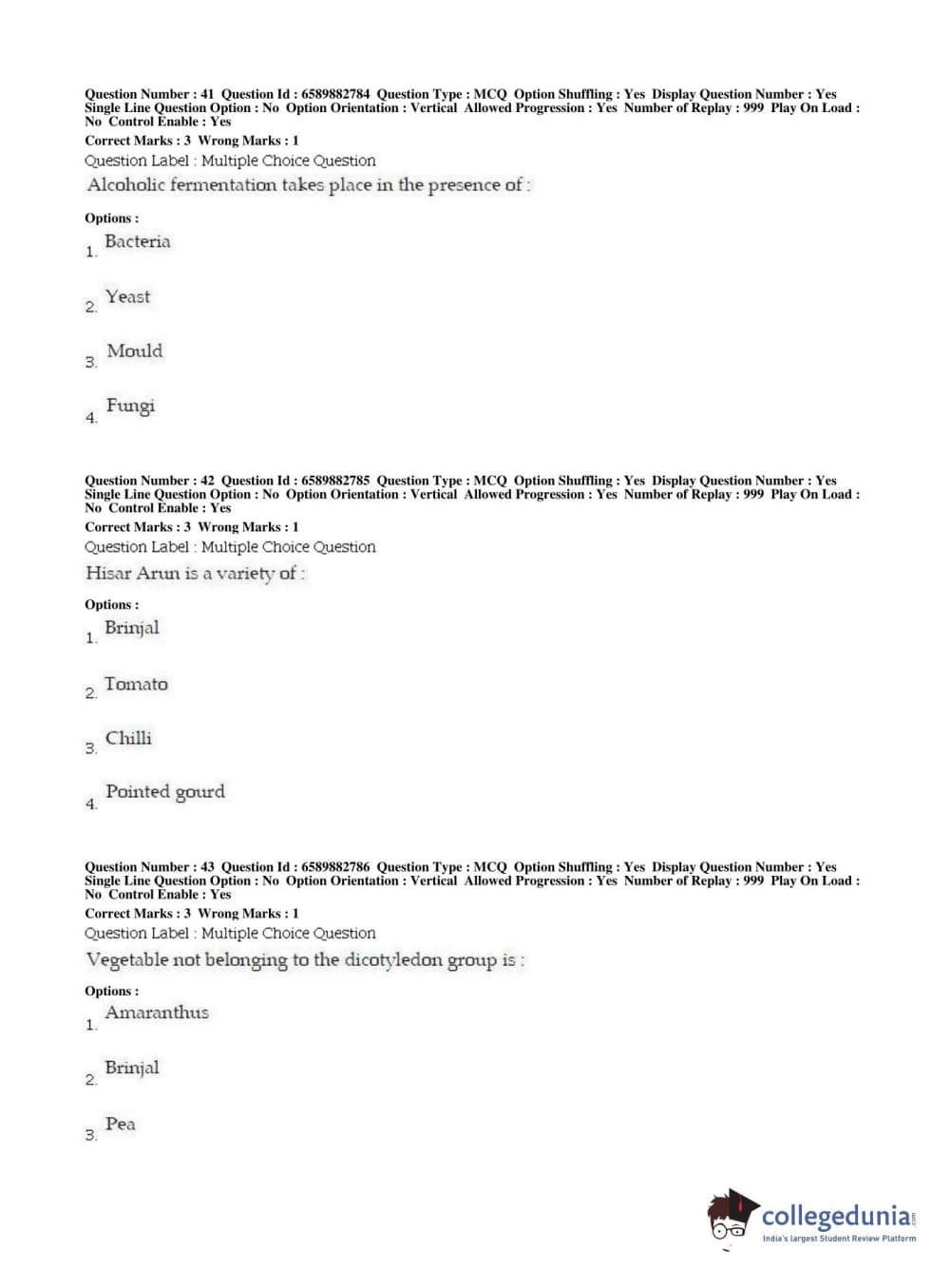 BHU PET 2019 MSC AG Question Paper with Answer Key PDFs in English ,Shift 1
