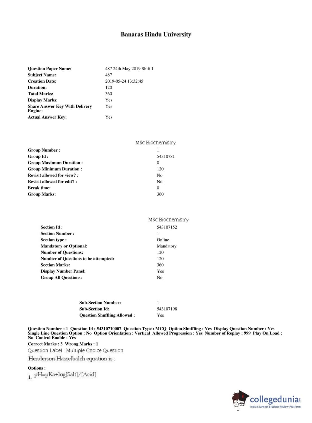 BHU PET 2019 MSC BIOCHEMISTRY Question paper with answer key pdf conducted on May 24, 2019 in Shift 1 is available for download. The exam was successfully organized by Banaras Hindu University (BHU). The question paper comprised a total of 120 questions.