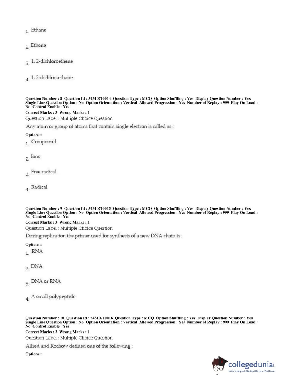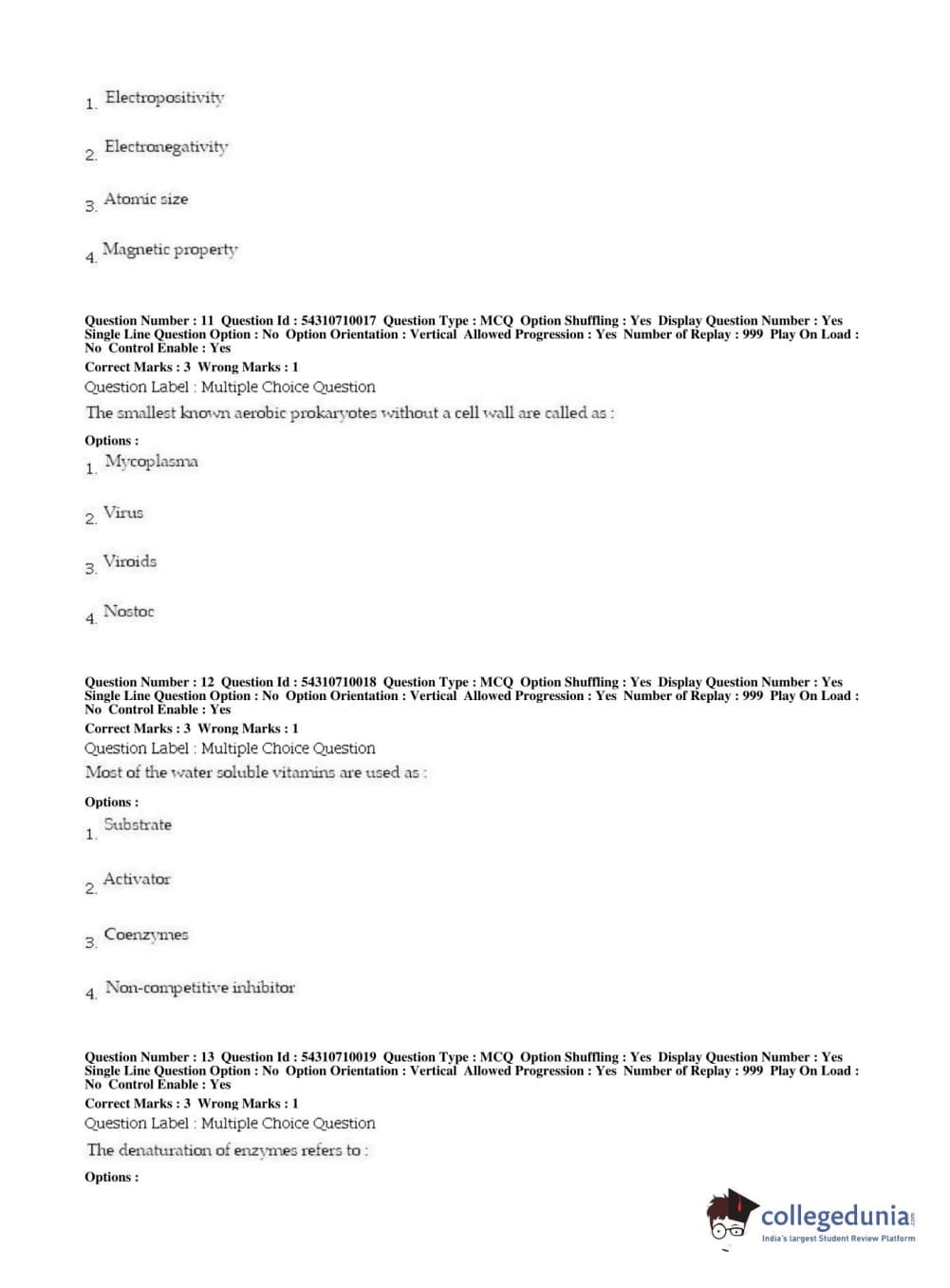 BHU PET 2019 MSC BIOCHEMISTRY Question Paper with Answer Key PDFs in English ,Shift 1