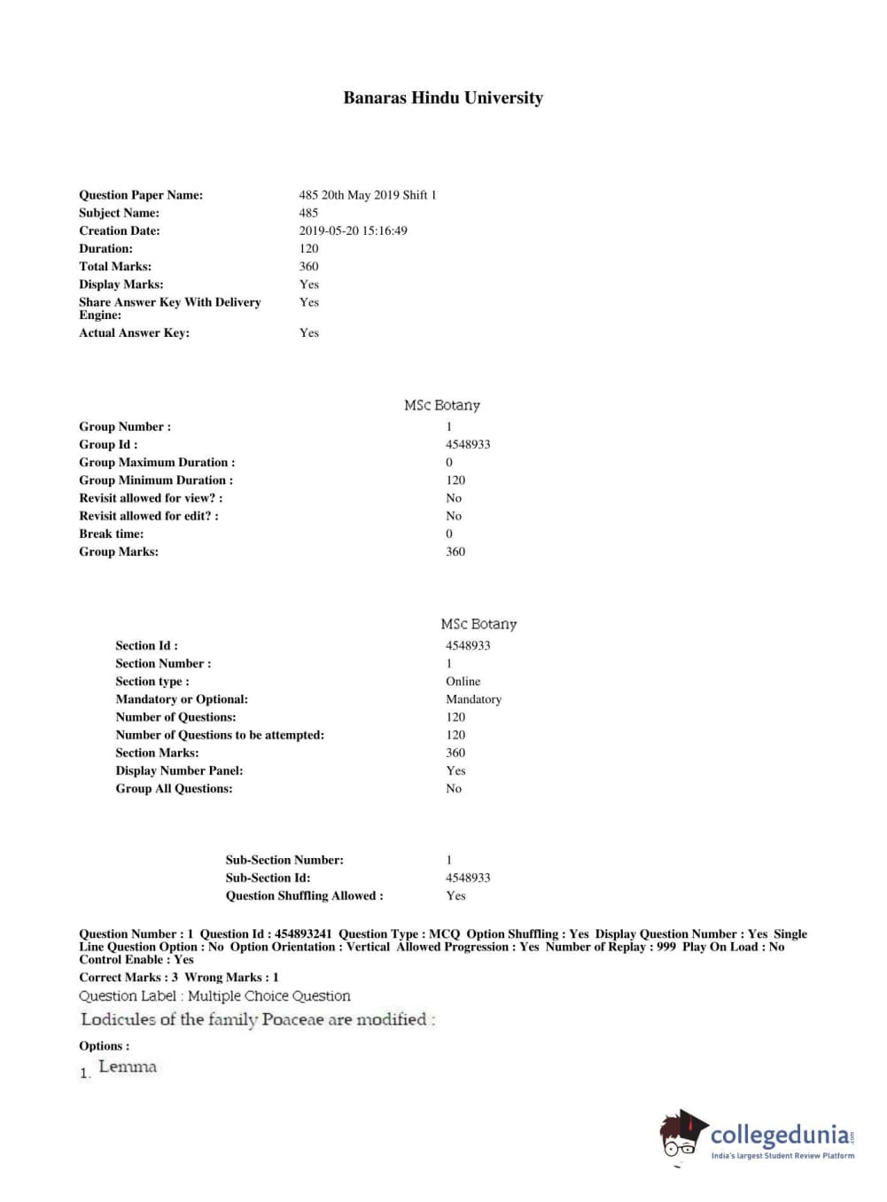 BHU PET 2019 MSC BOTANY Question paper with answer key pdf conducted on May 20, 2019 in Shift 1 is available for download. The exam was successfully organized by Banaras Hindu University (BHU). The question paper comprised a total of 120 questions.