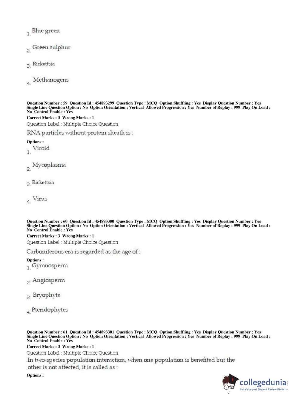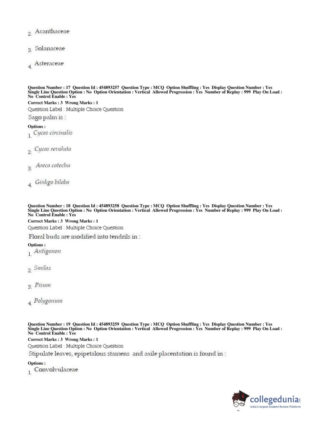 BHU PET 2019 MSC BOTANY Question Paper with Answer Key PDFs in English ,Shift 1