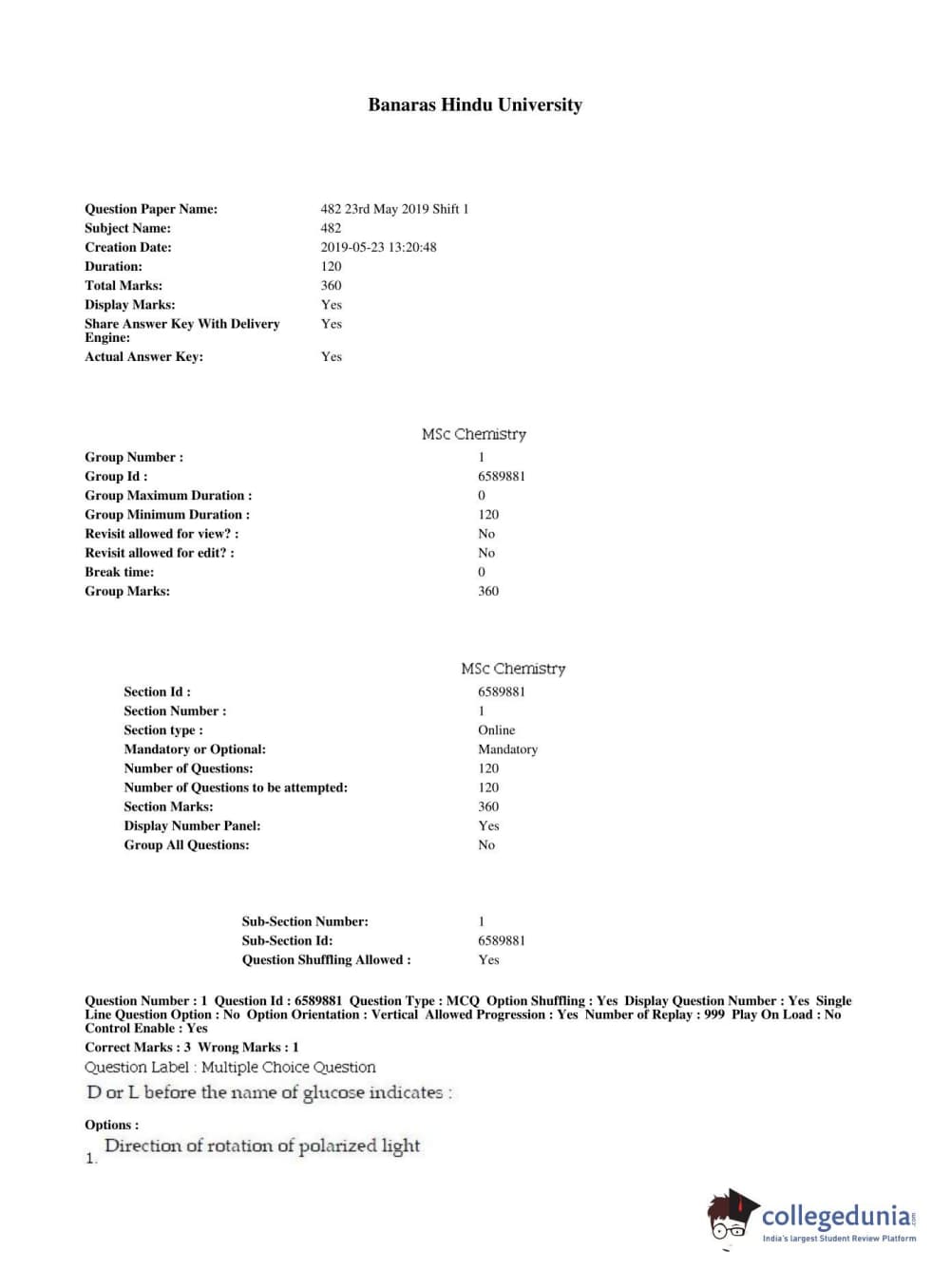 BHU PET 2019 MSC CHEMISTRY Question paper with answer key pdf conducted on May 23, 2019 in Shift 1 is available for download. The exam was successfully organized by Banaras Hindu University (BHU). The question paper comprised a total of 120 questions.
