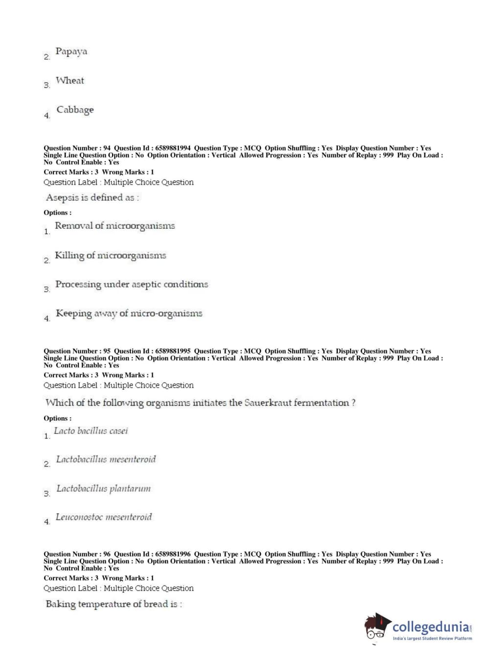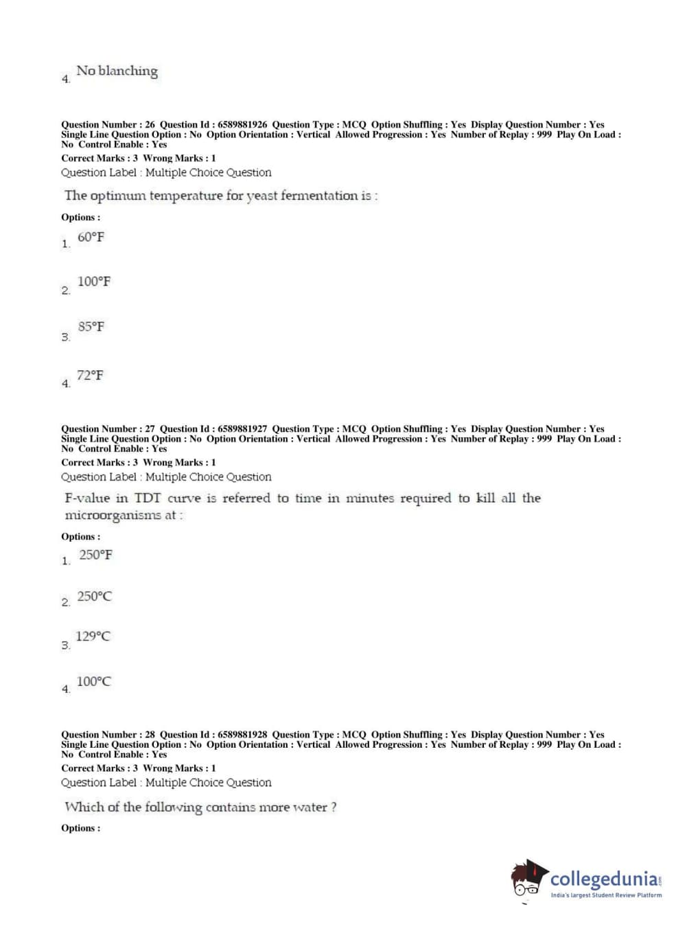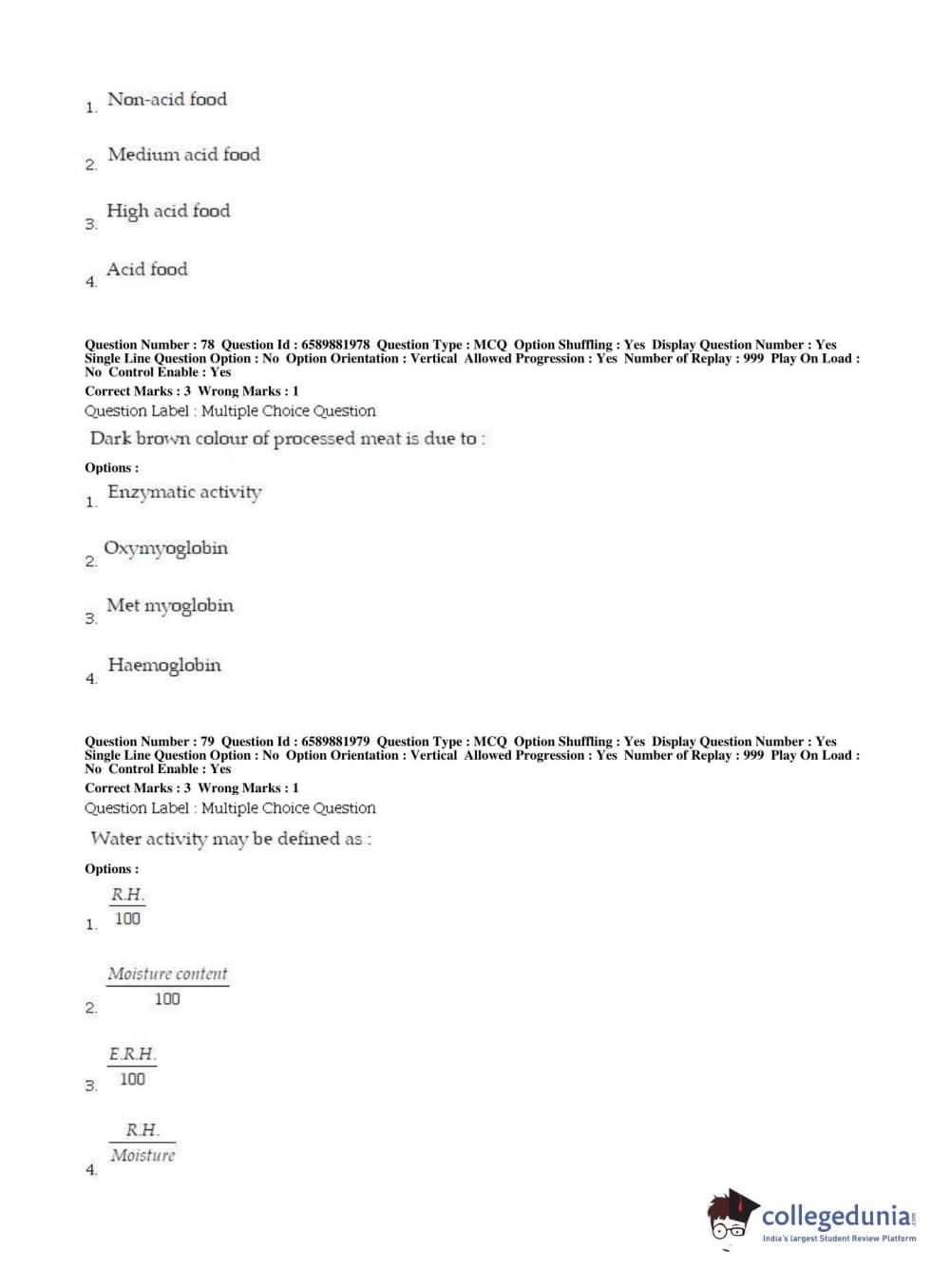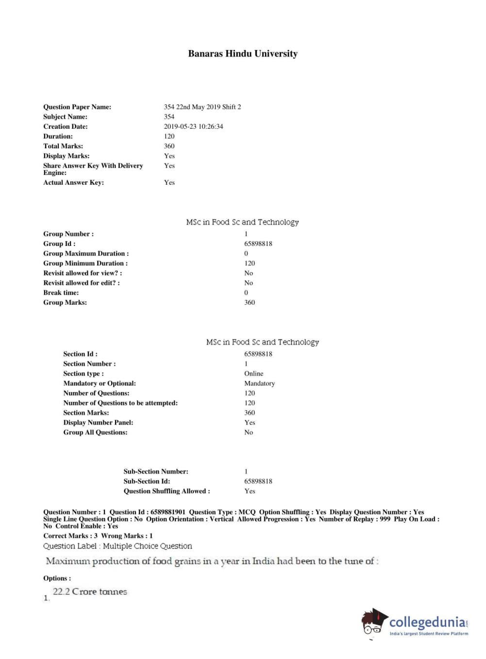 BHU PET 2019 MSC IN FOOD SC AND TECHNOLOGY Question Paper with Answer Key PDFs in English ,Shift 2