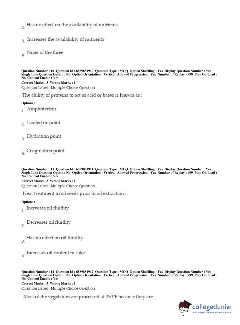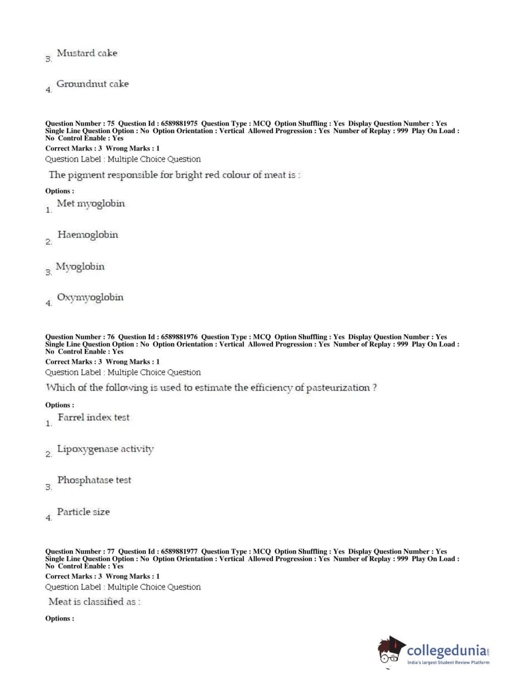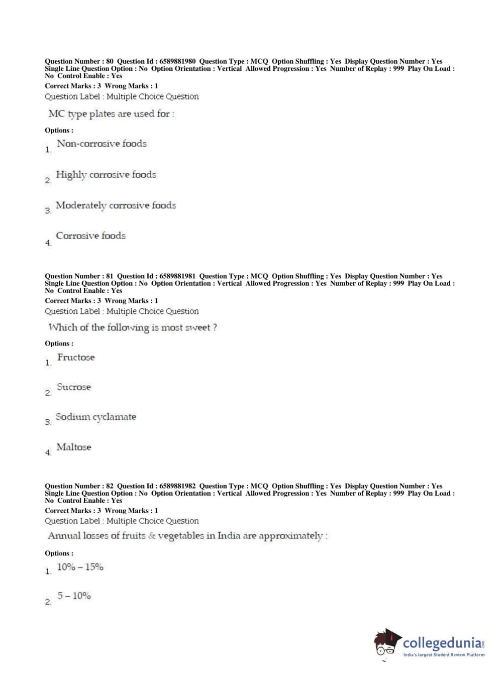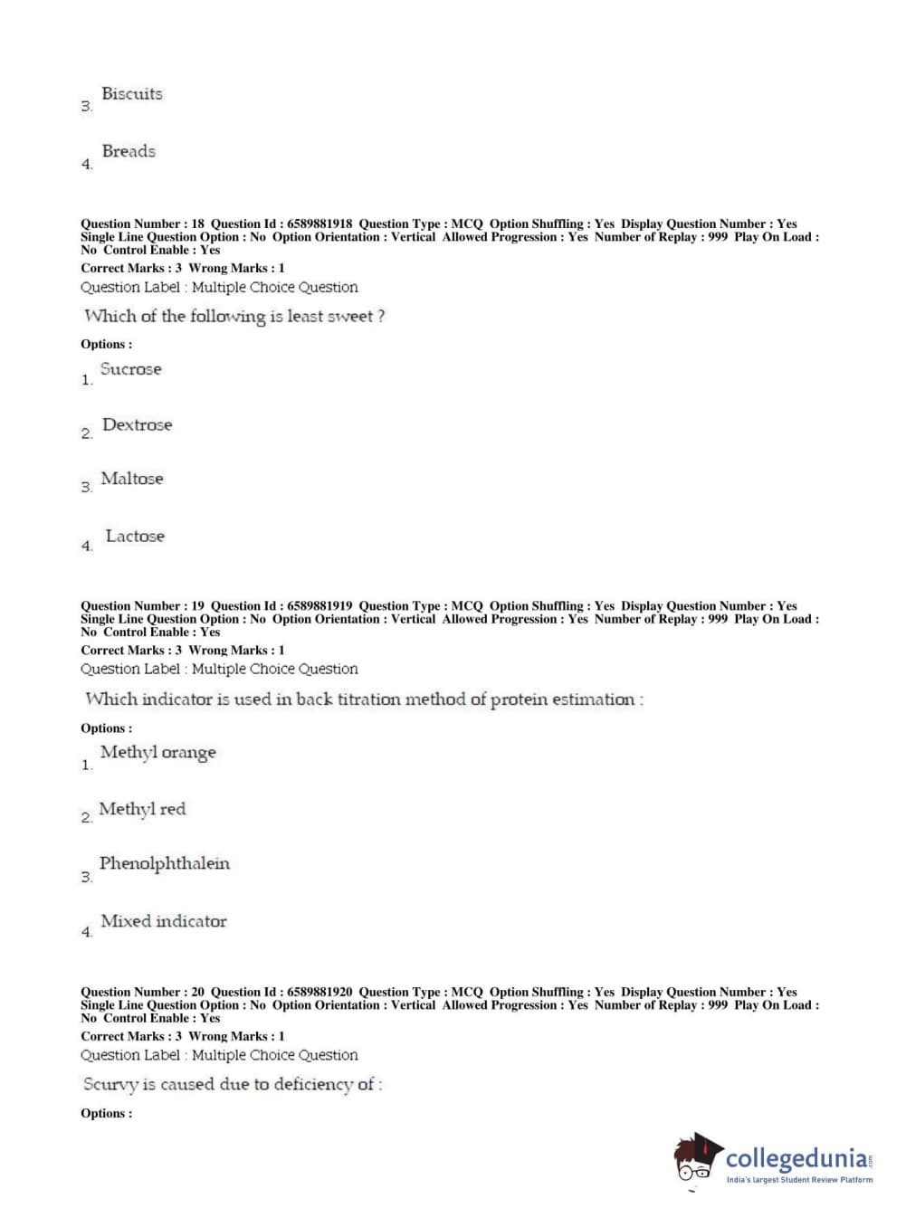 BHU PET 2019 MSC IN FOOD SC AND TECHNOLOGY Question Paper with Answer Key PDFs in English ,Shift 2