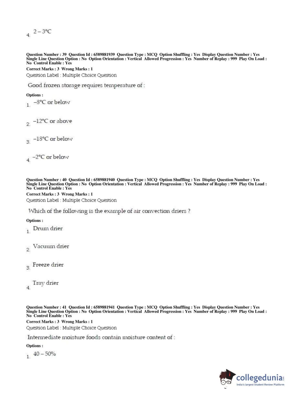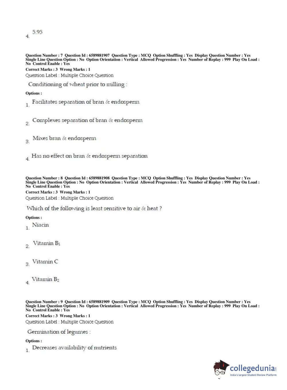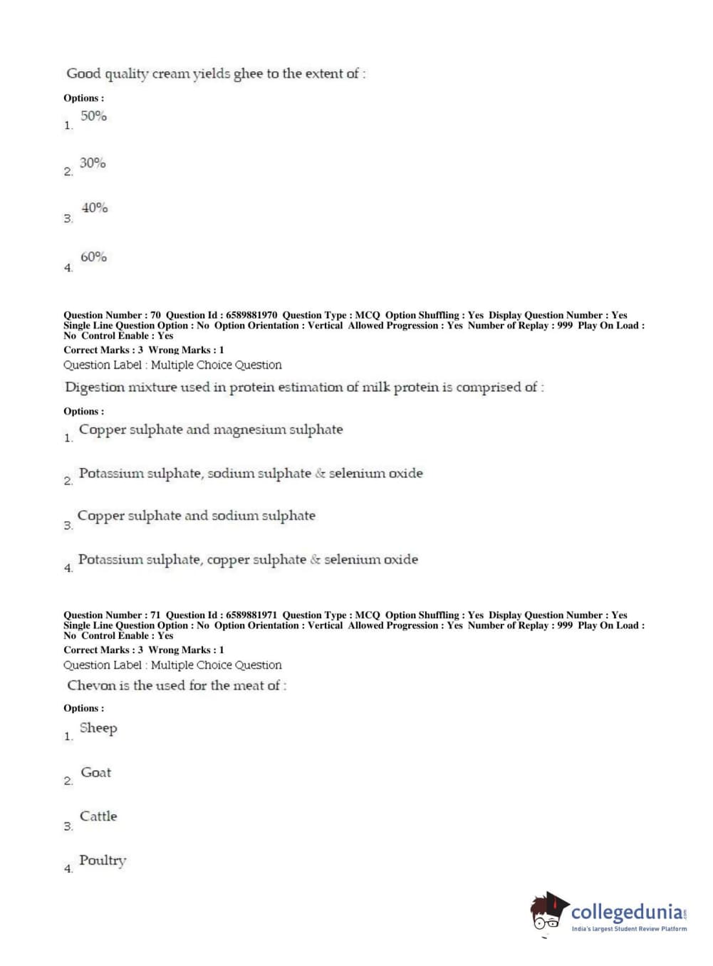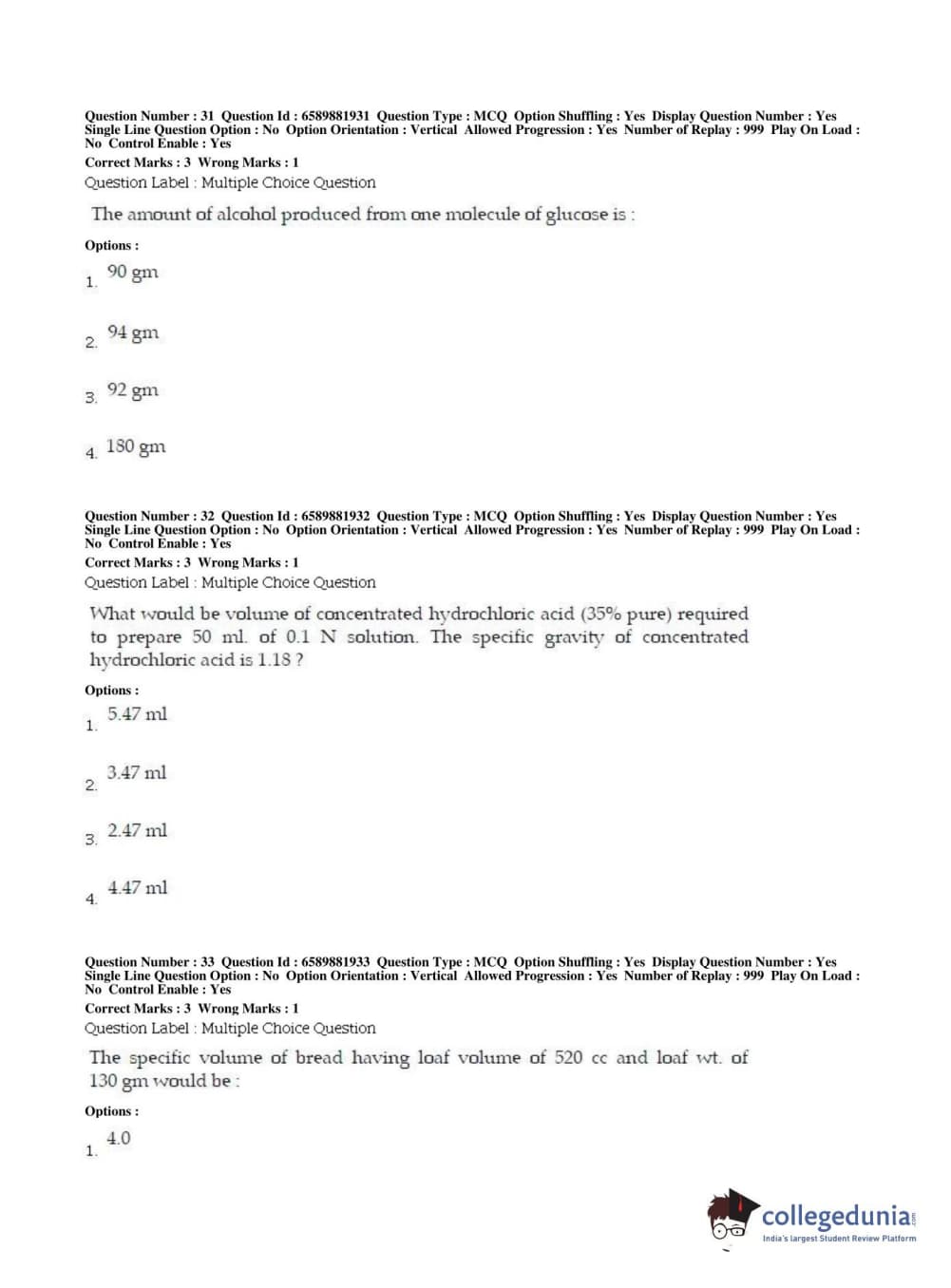 BHU PET 2019 MSC IN FOOD SC AND TECHNOLOGY Question Paper with Answer Key PDFs in English ,Shift 2