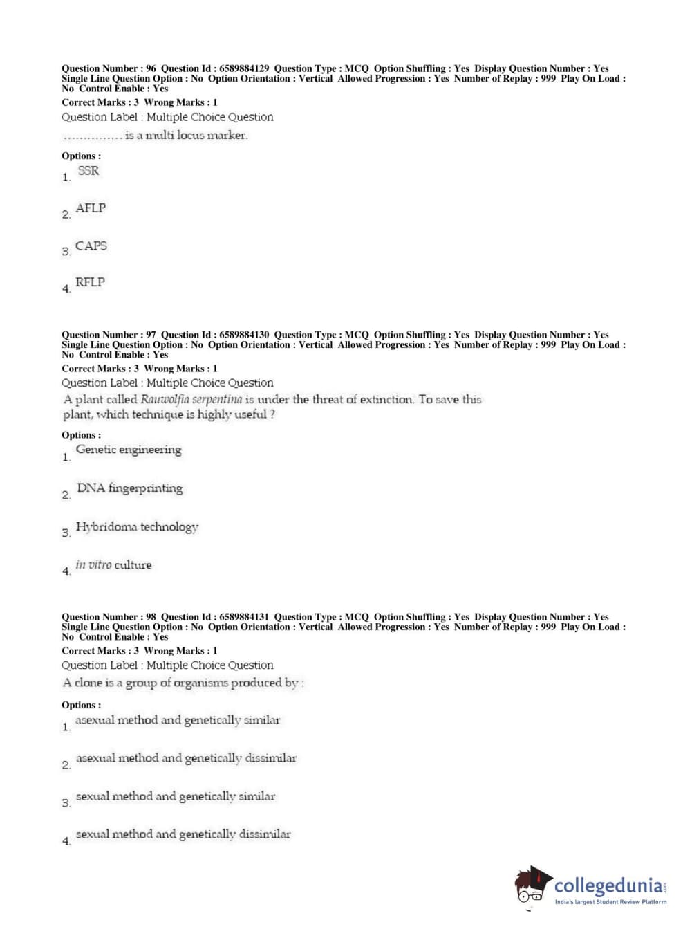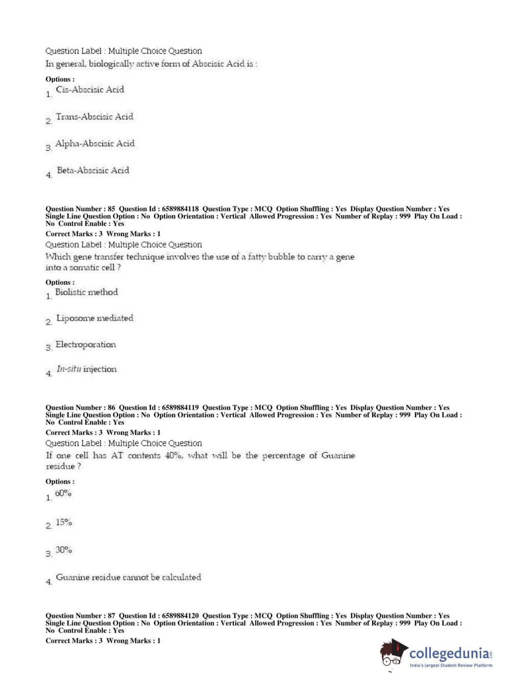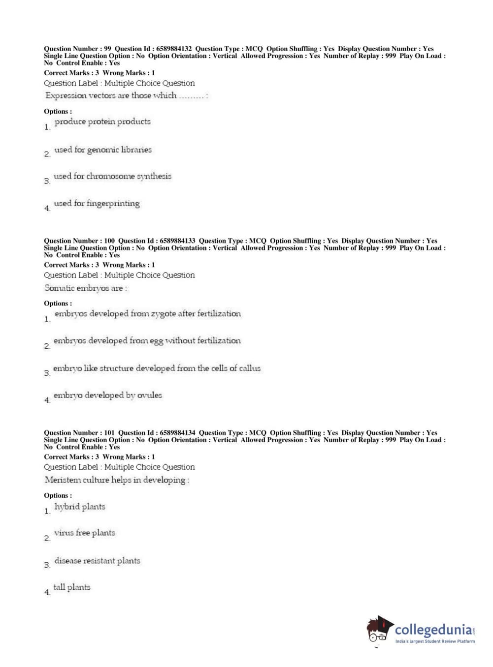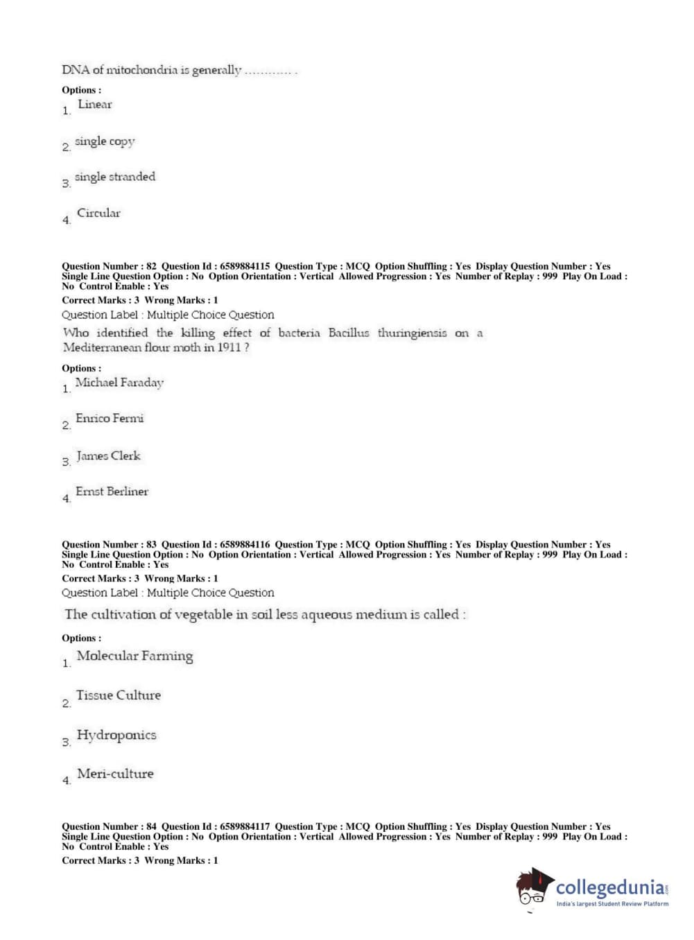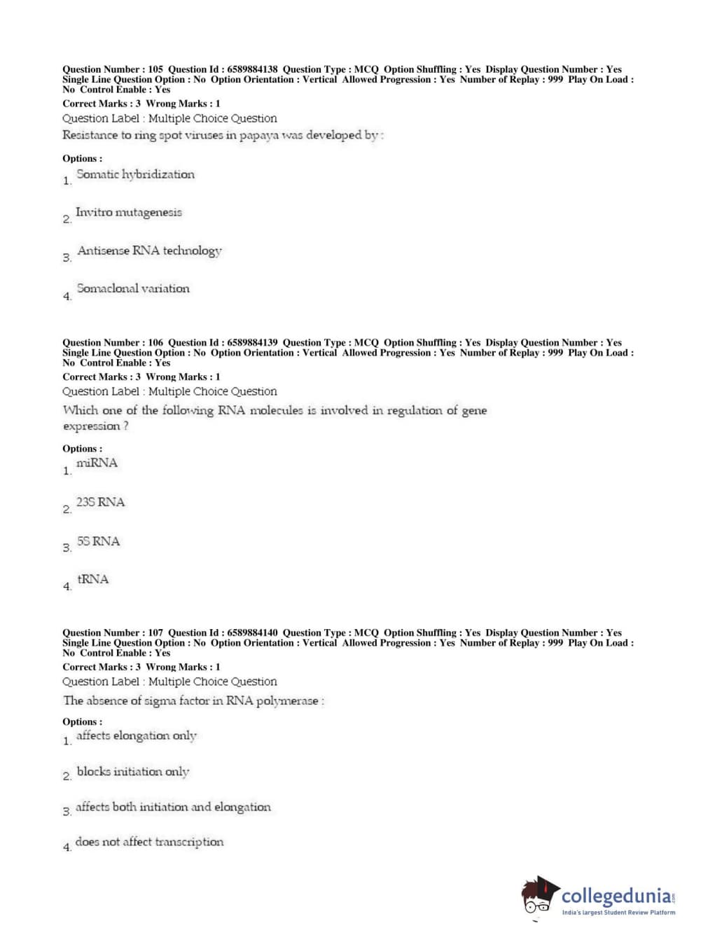 | BHU PET 2019 MSC IN PLANT BIOTECHNOLOGY Question Paper PDF | BHU PET 2019 MSC IN PLANT BIOTECHNOLOGY Answer Key PDF |