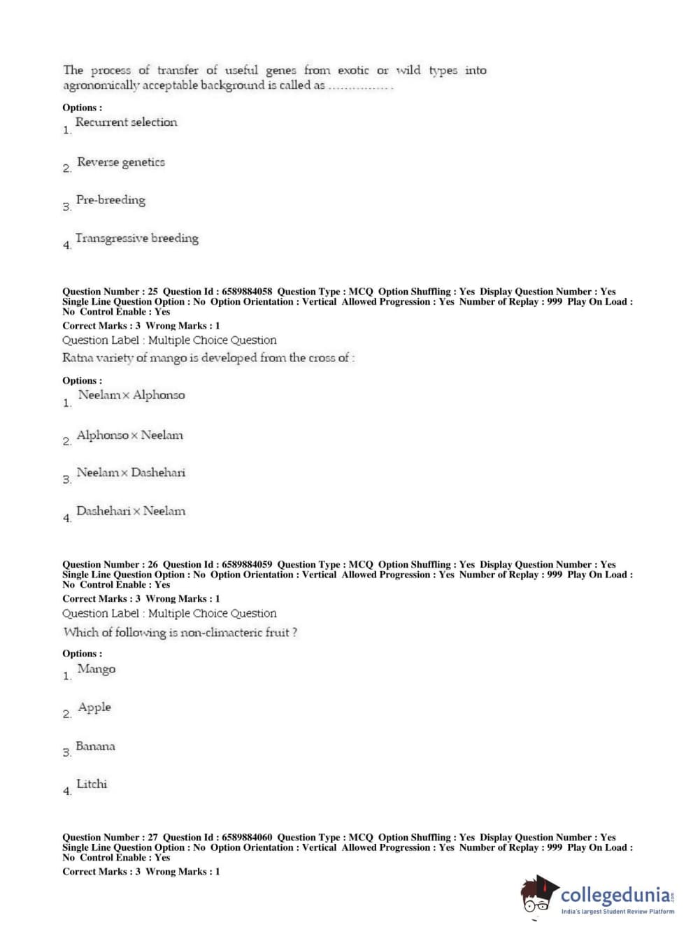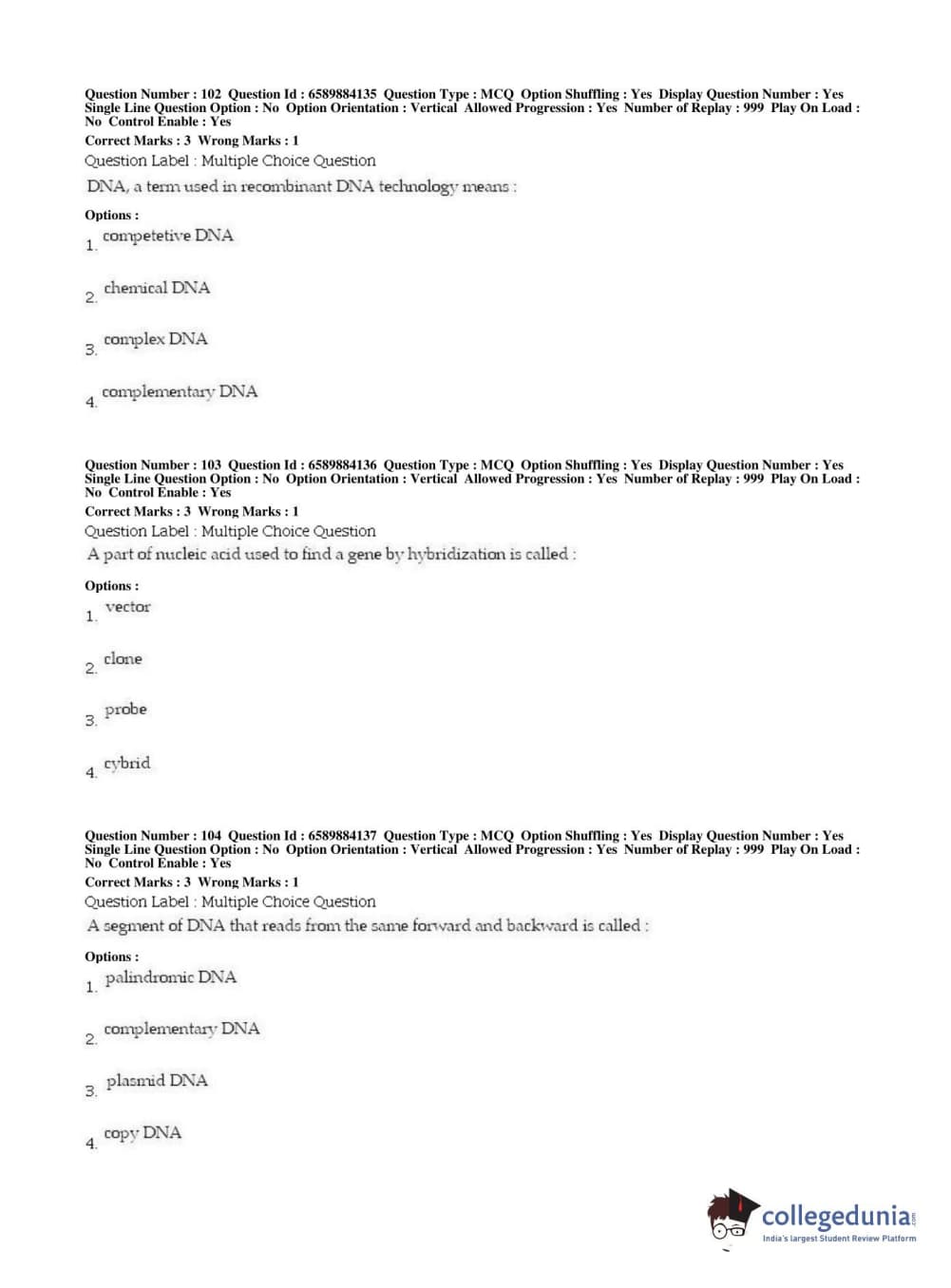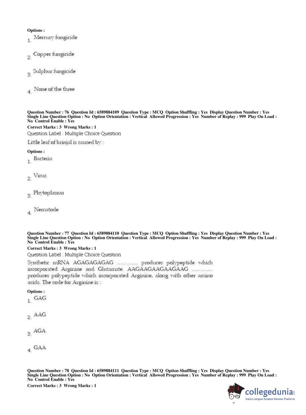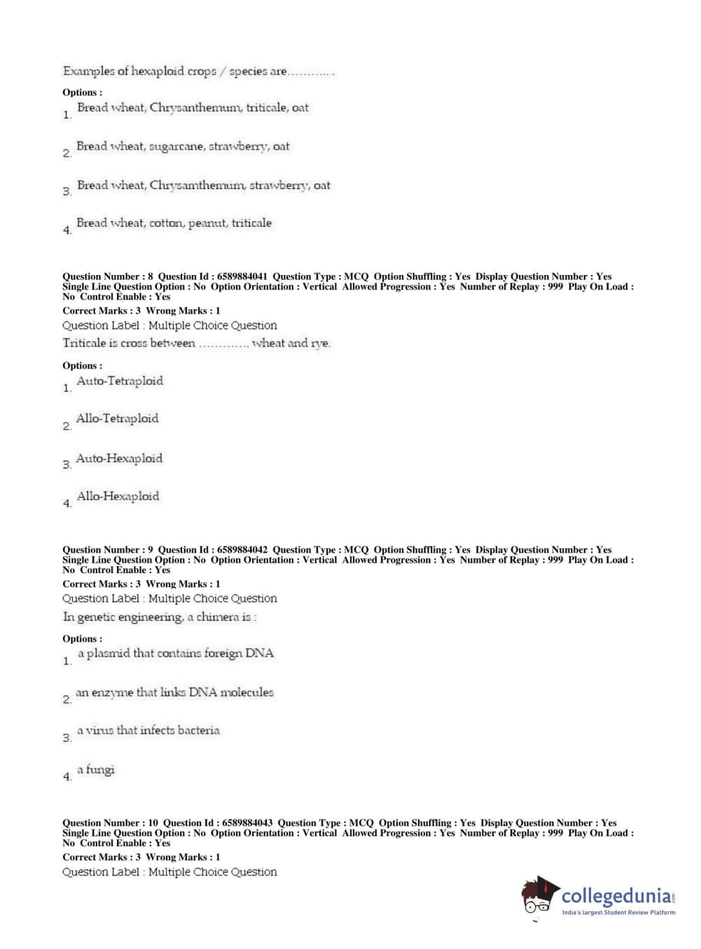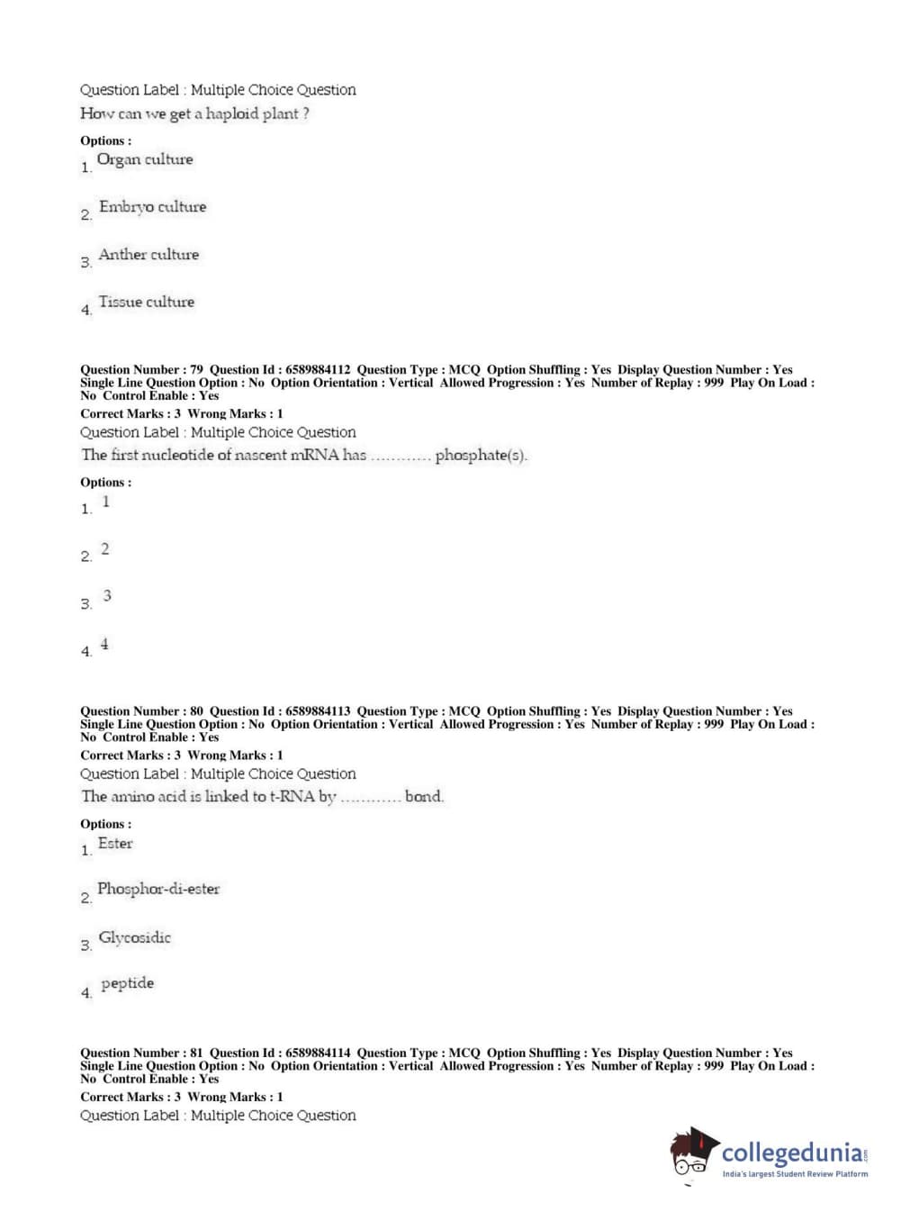 | BHU PET 2019 MSC IN PLANT BIOTECHNOLOGY Question Paper PDF | BHU PET 2019 MSC IN PLANT BIOTECHNOLOGY Answer Key PDF |