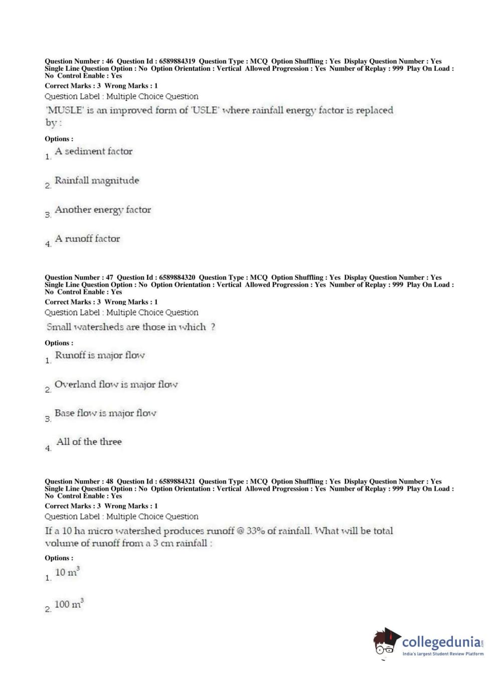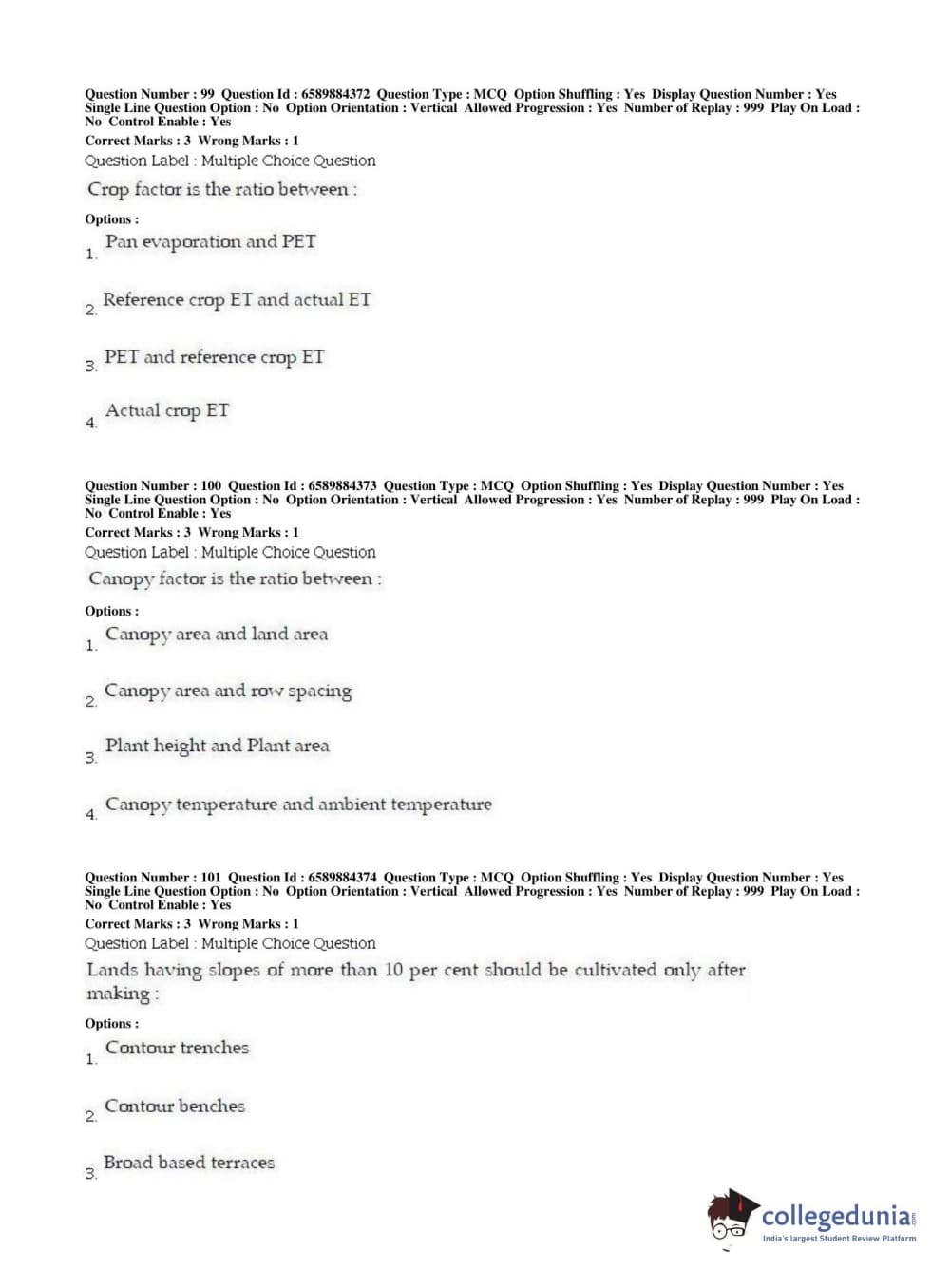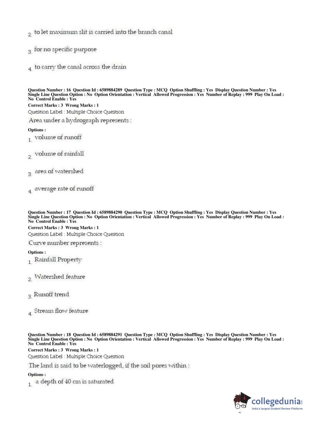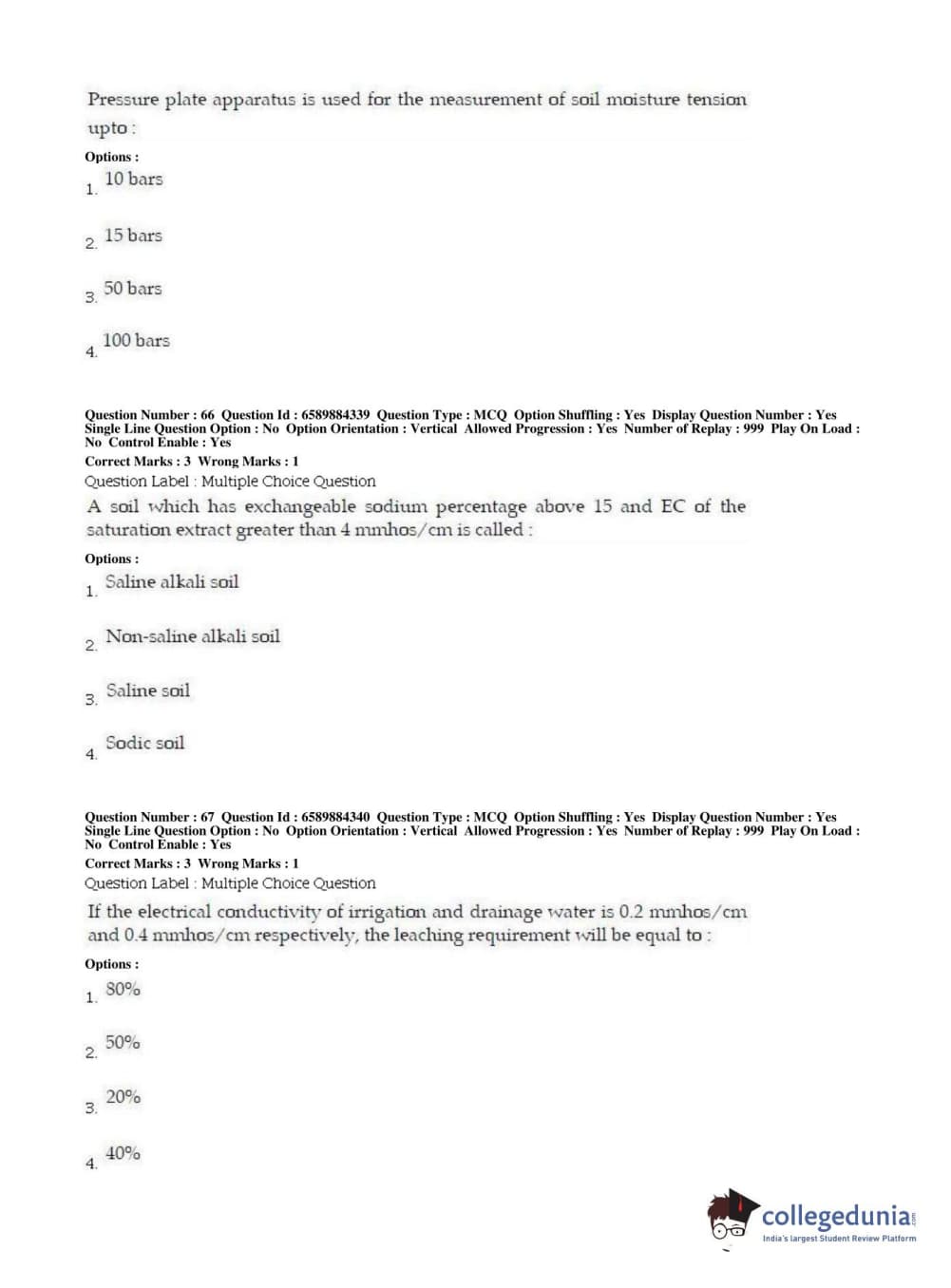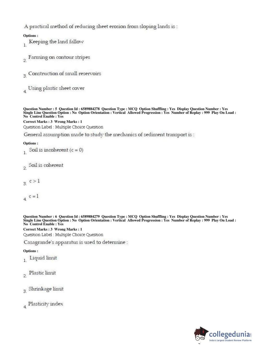 | BHU PET 2019 MTECH SOIL AND WATER CONSERVATION ENGG Question Paper PDF | BHU PET 2019 MTECH SOIL AND WATER CONSERVATION ENGG Answer Key PDF |