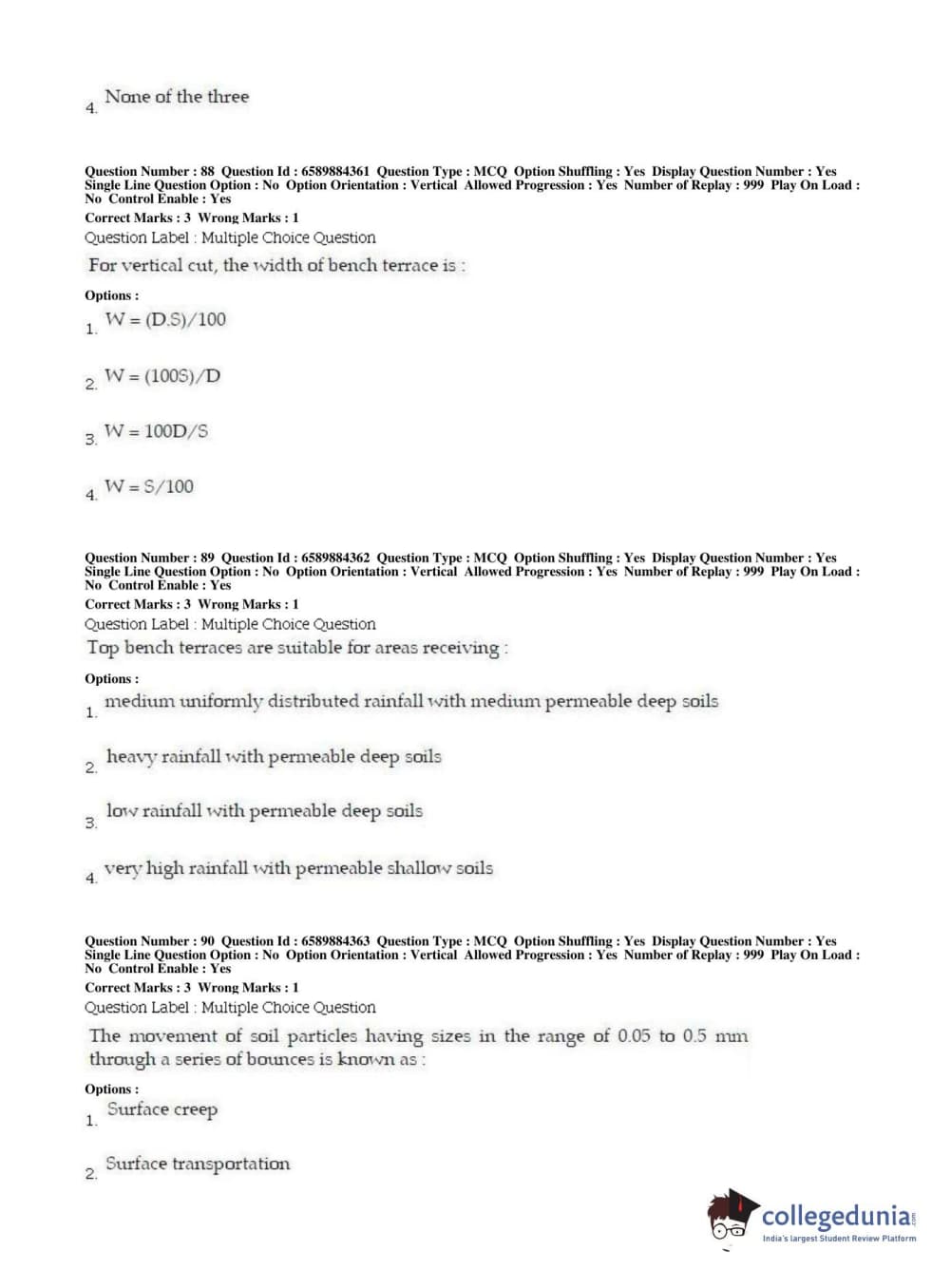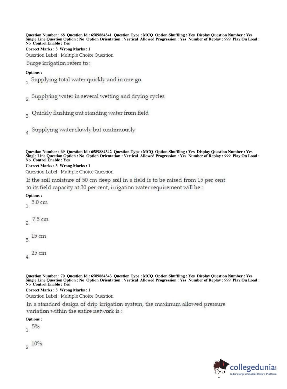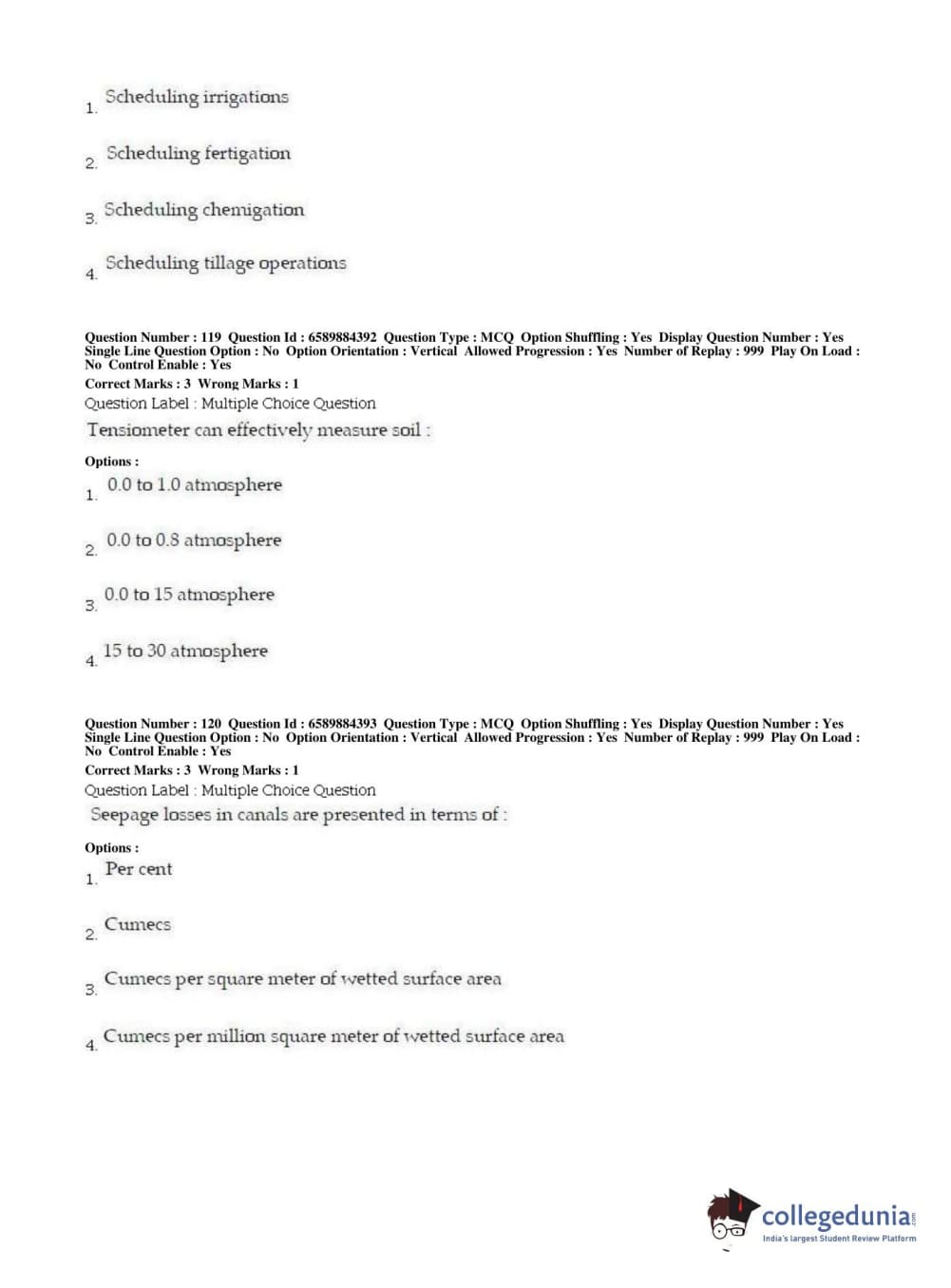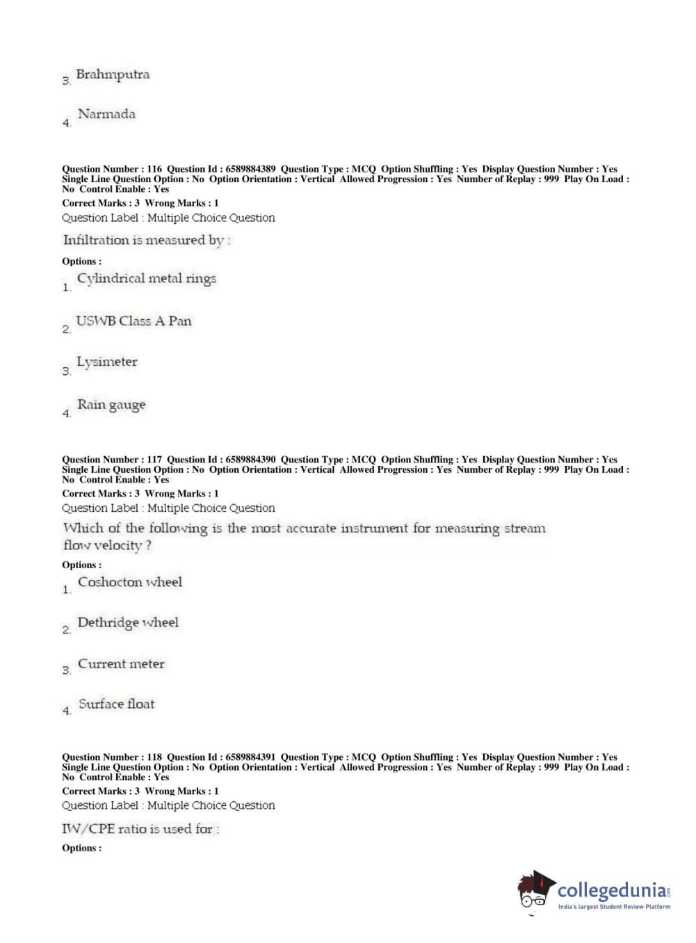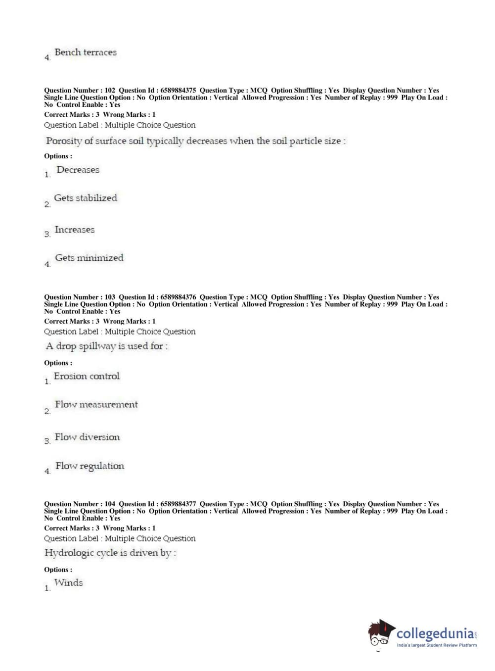 | BHU PET 2019 MTECH SOIL AND WATER CONSERVATION ENGG Question Paper PDF | BHU PET 2019 MTECH SOIL AND WATER CONSERVATION ENGG Answer Key PDF |