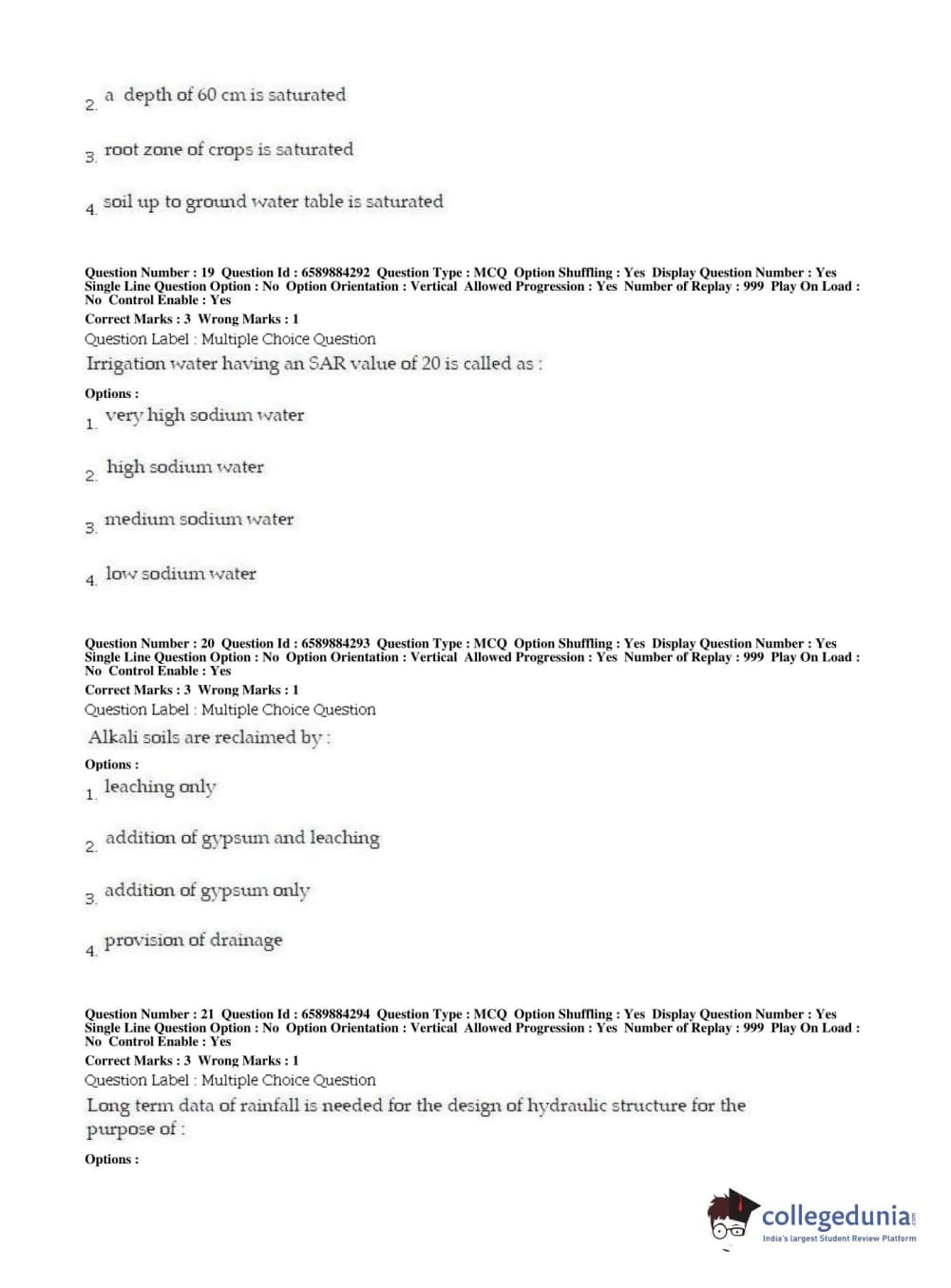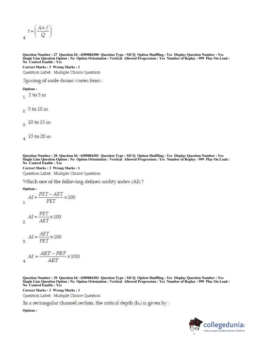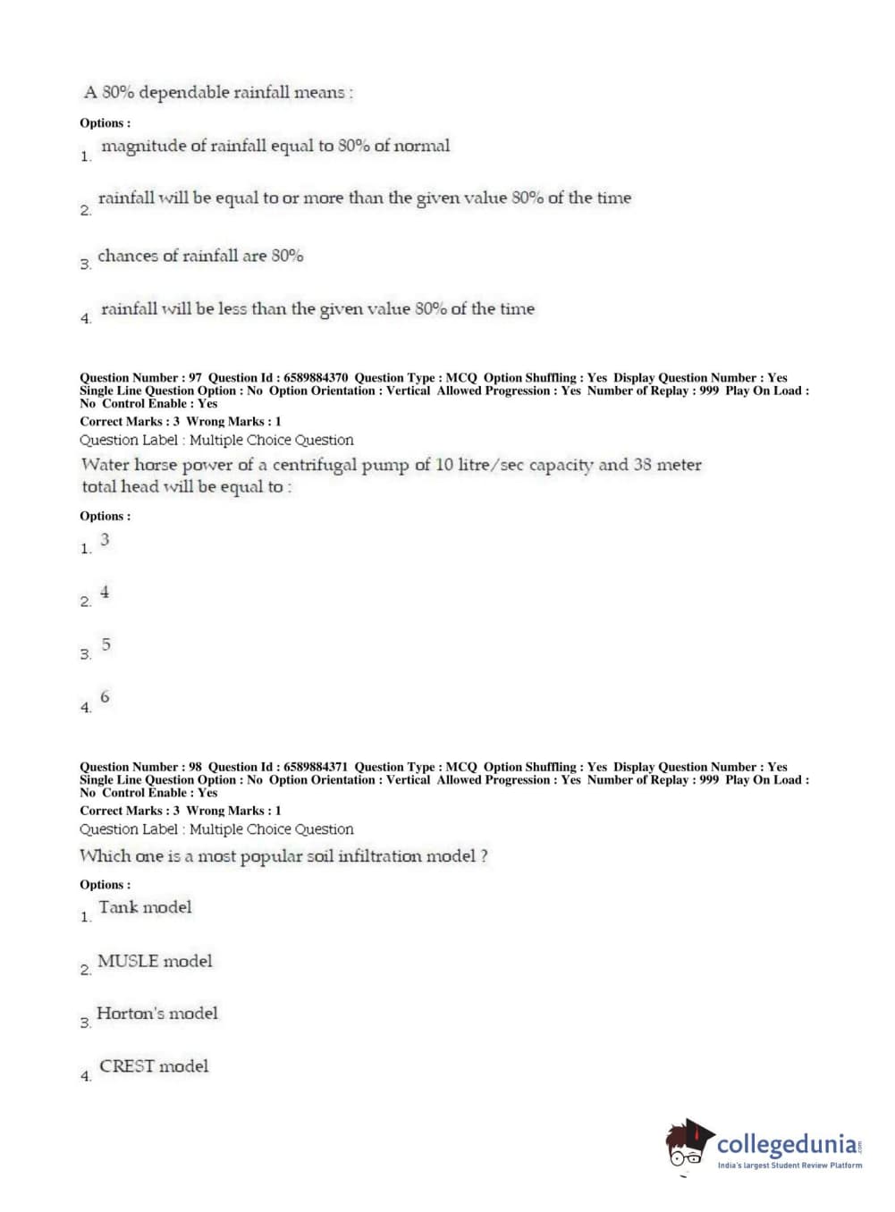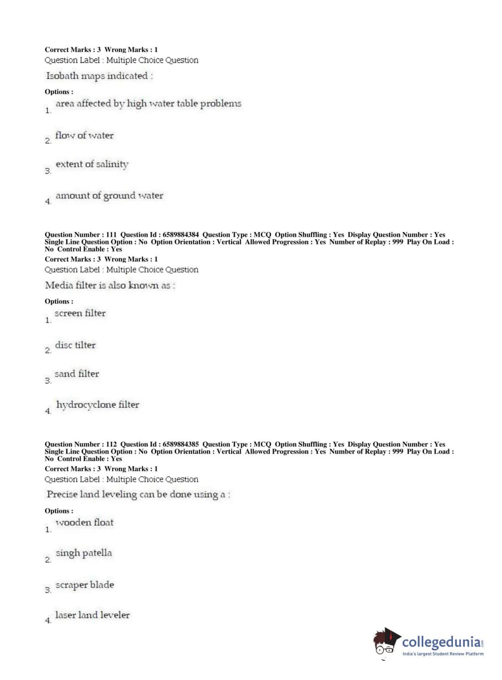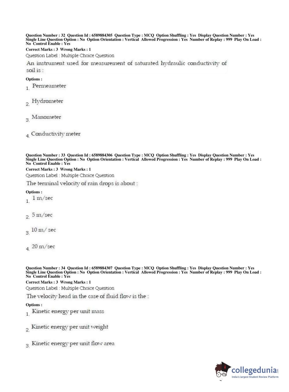 | BHU PET 2019 MTECH SOIL AND WATER CONSERVATION ENGG Question Paper PDF | BHU PET 2019 MTECH SOIL AND WATER CONSERVATION ENGG Answer Key PDF |