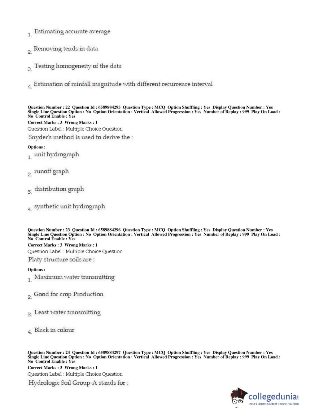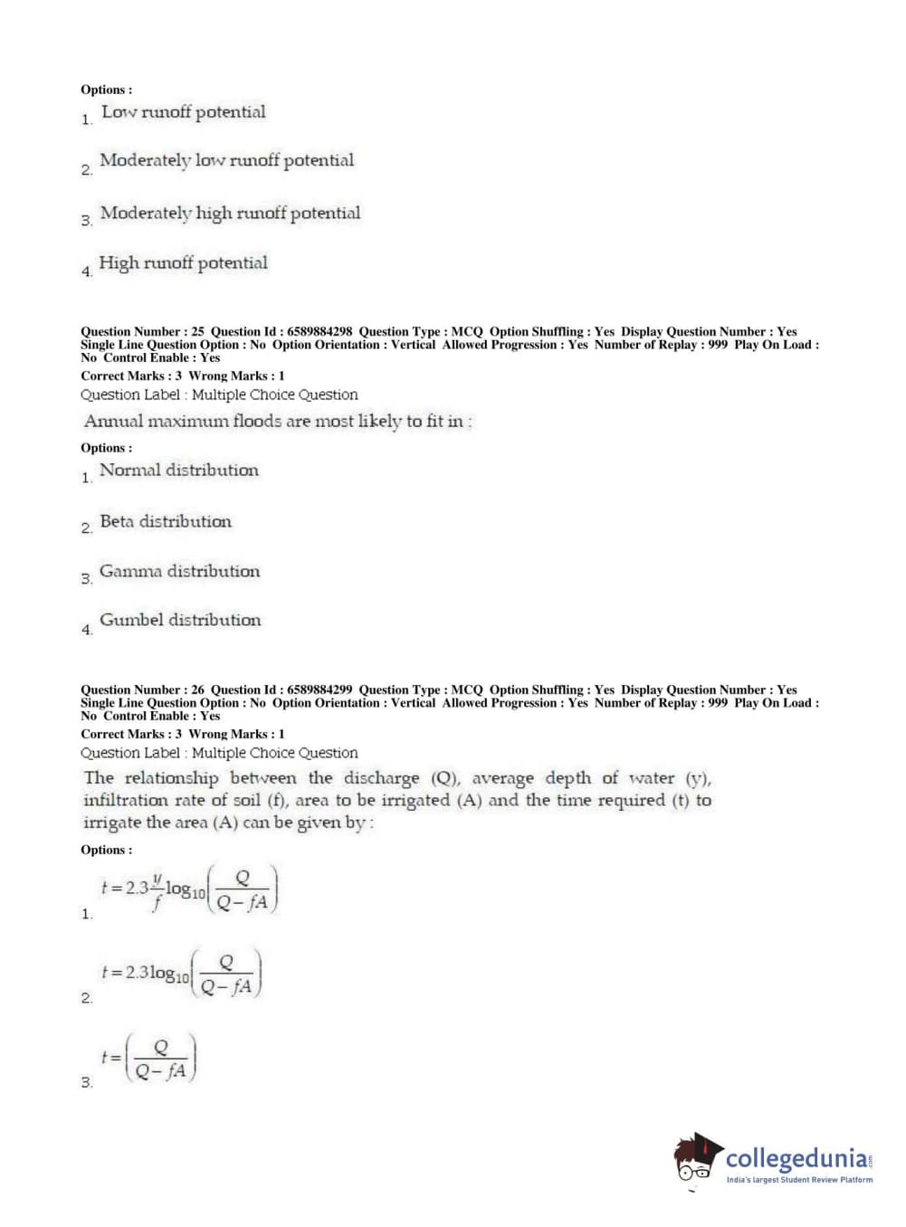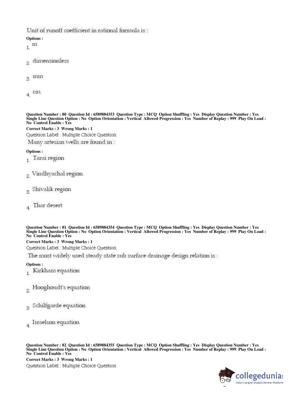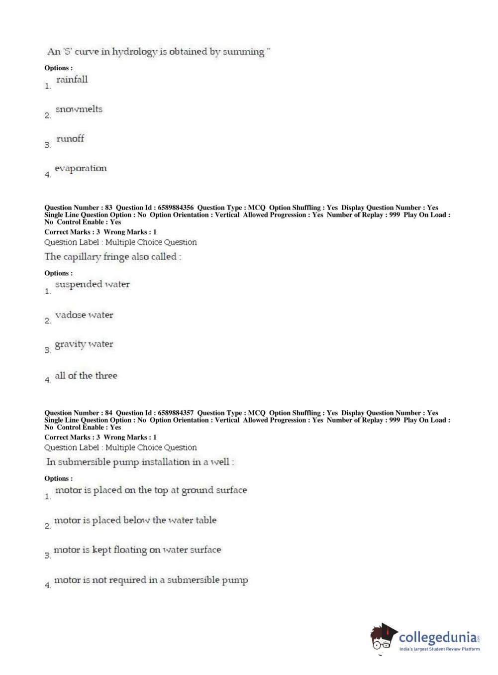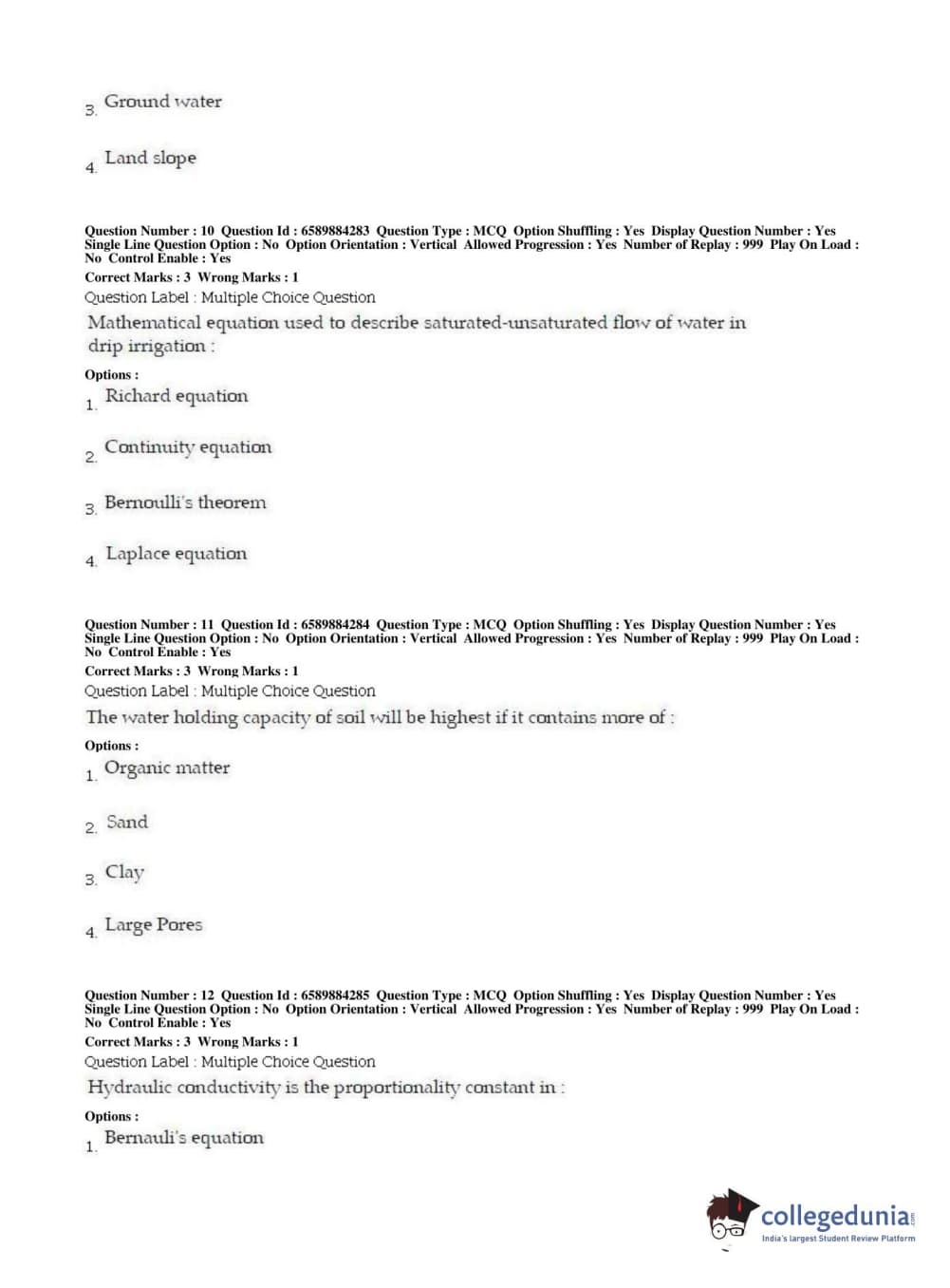 | BHU PET 2019 MTECH SOIL AND WATER CONSERVATION ENGG Question Paper PDF | BHU PET 2019 MTECH SOIL AND WATER CONSERVATION ENGG Answer Key PDF |