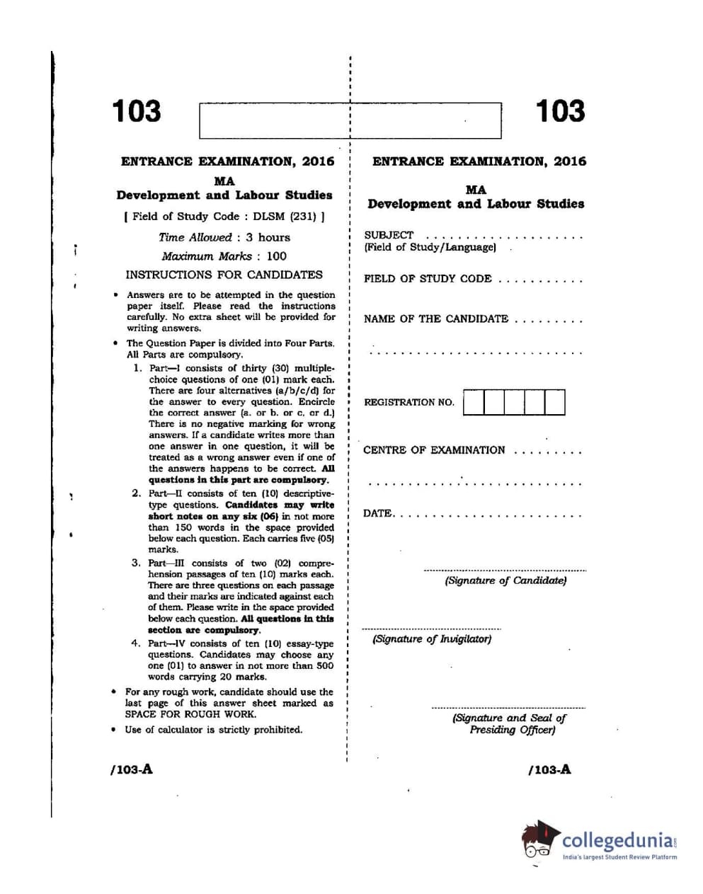 | JNUEE 2016 M.A Development and Labour Studies Question Paper PDF | JNUEE 2016 M.A Development and Labour Studies Answer Key PDF |