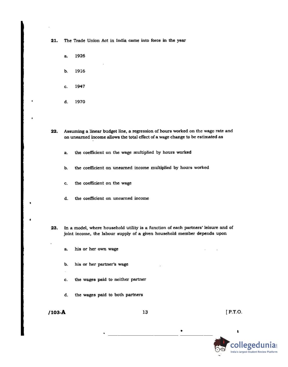 JNUEE 2016 M.A Development and Labour Studies Question paper with answer key pdf is available for download. The exam was successfully organized by Jawaharlal Nehru University (JNU). The question paper comprised a total of 66 questions.