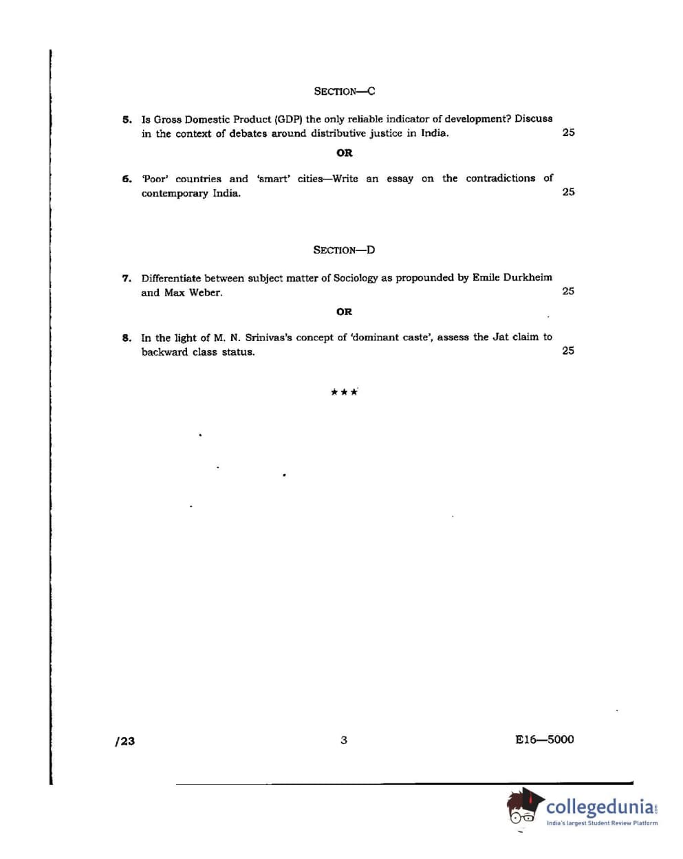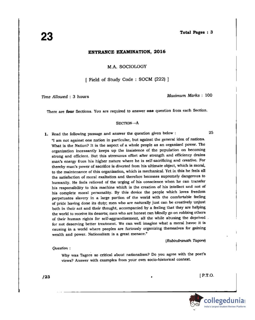 JNUEE 2016 M.A Sociology Question paper with answer key pdf is available for download. The exam was successfully organized by Jawaharlal Nehru University (JNU). The question paper comprised a total of 8 questions.