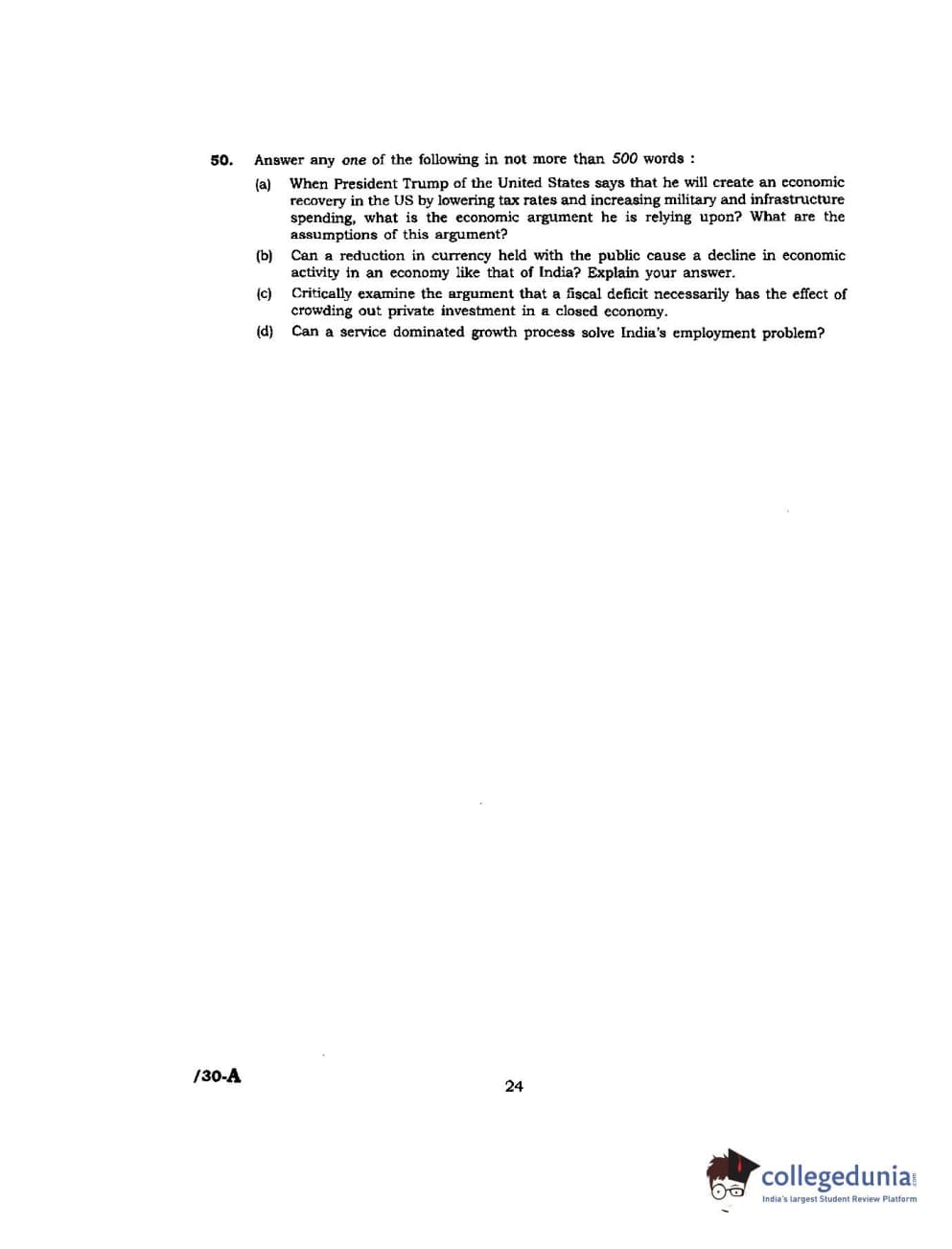 JNUEE 2017 M.A Economics Question paper with answer key pdf is available for download. The exam was successfully organized by Jawaharlal Nehru University (JNU). The question paper comprised a total of 50 questions.