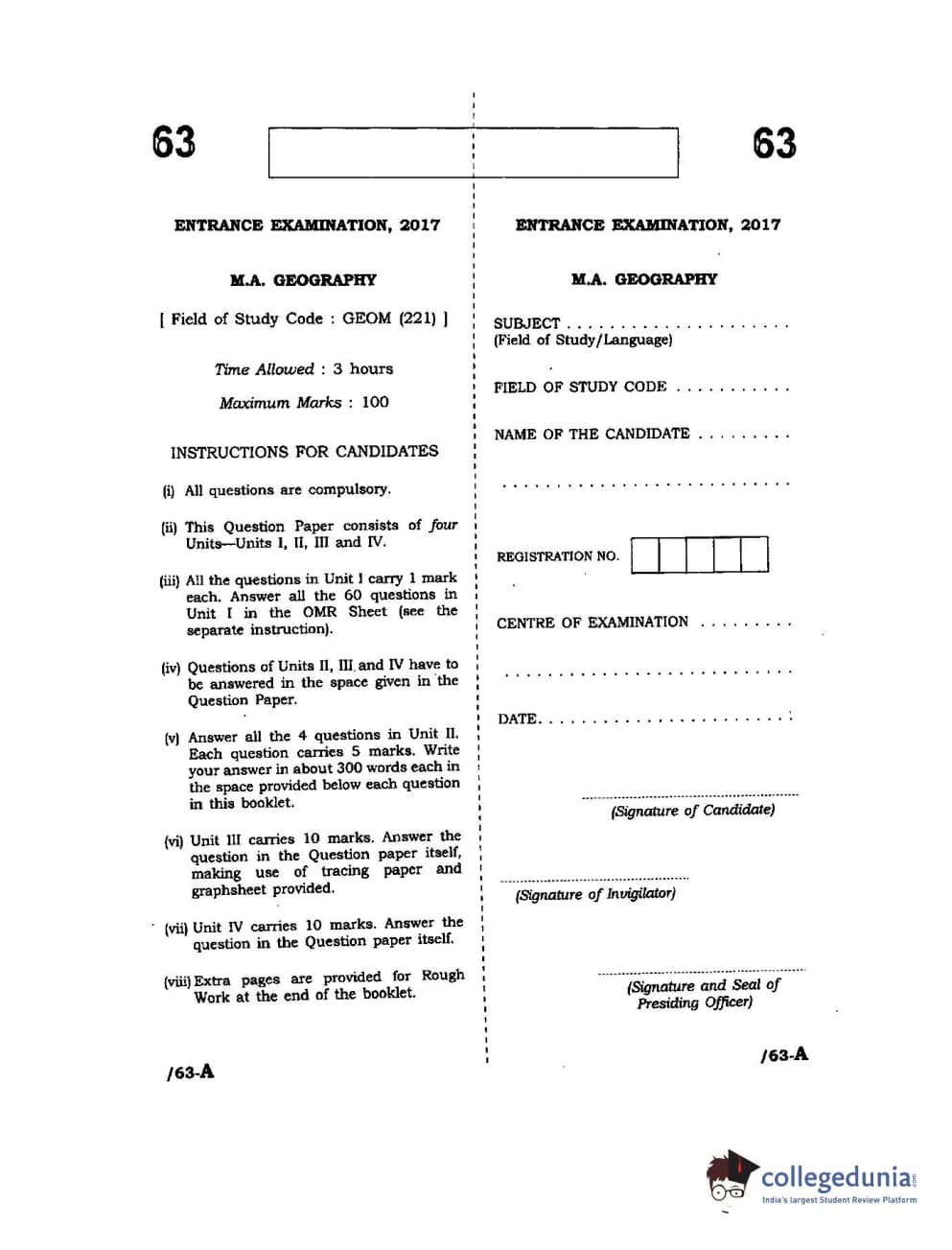 | JNUEE 2017 M.A Geography Question Paper PDF | JNUEE 2017 M.A Geography Answer Key PDF |