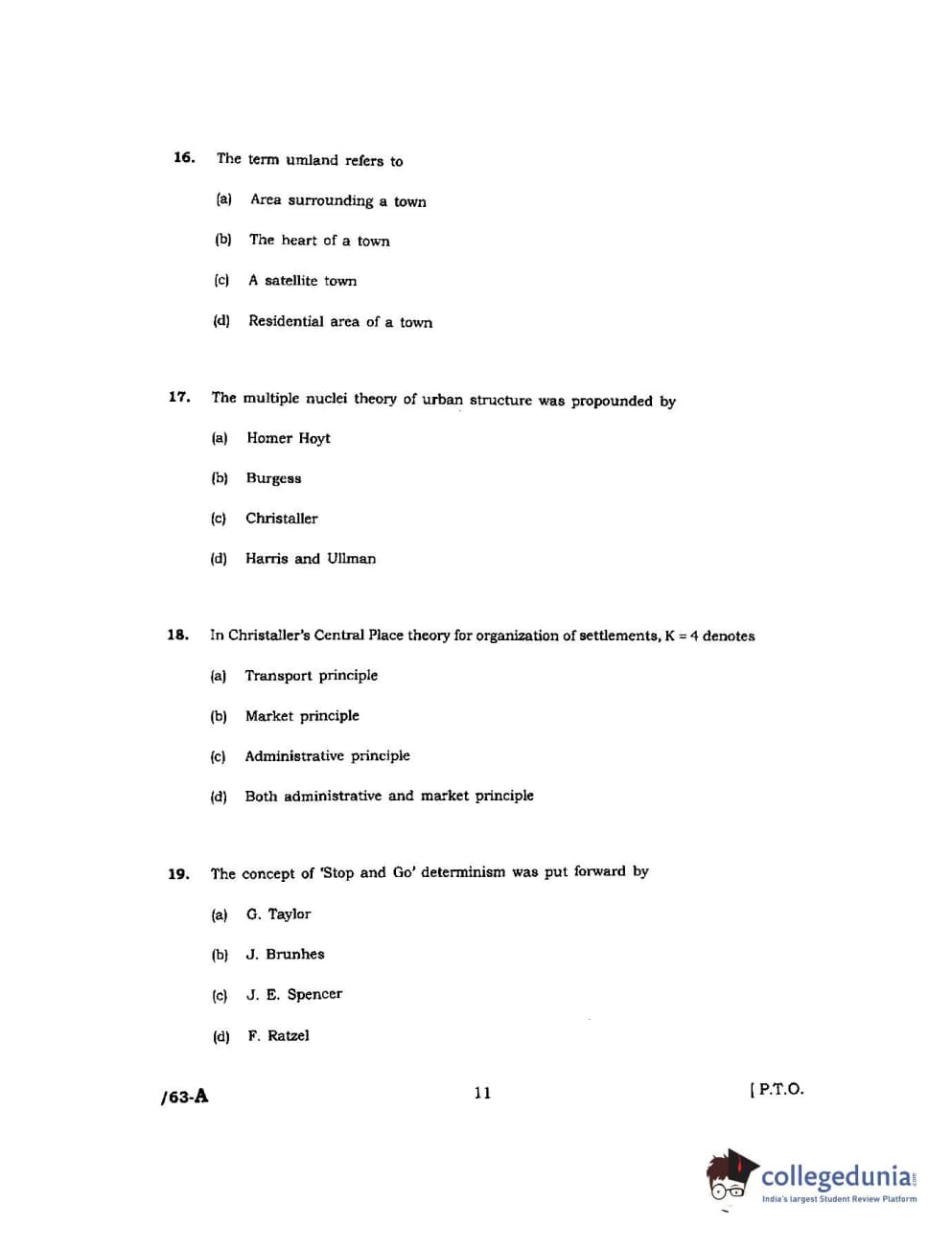 JNUEE 2017 M.A Geography Question Paper with Answer Key PDFs