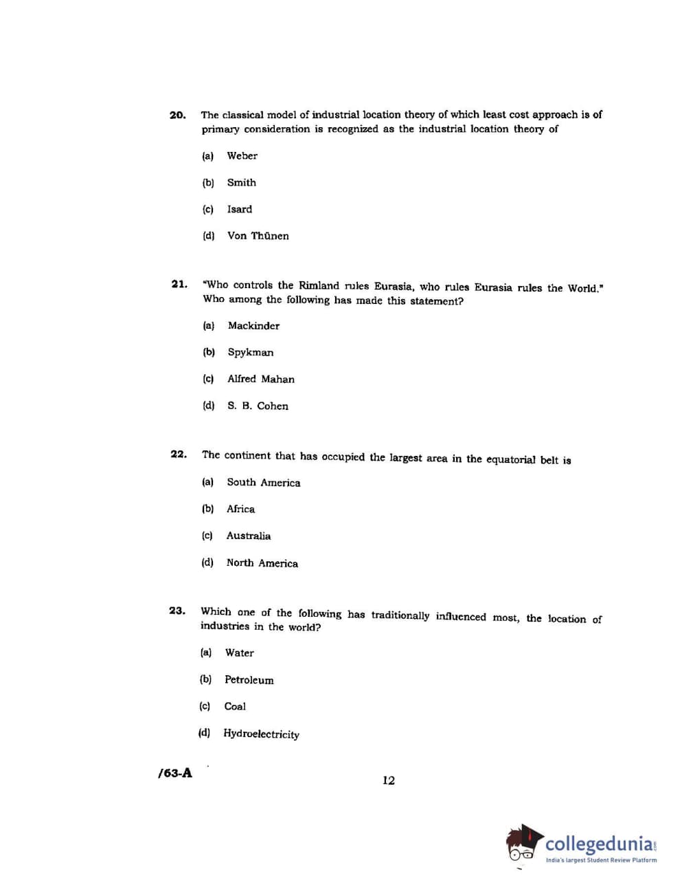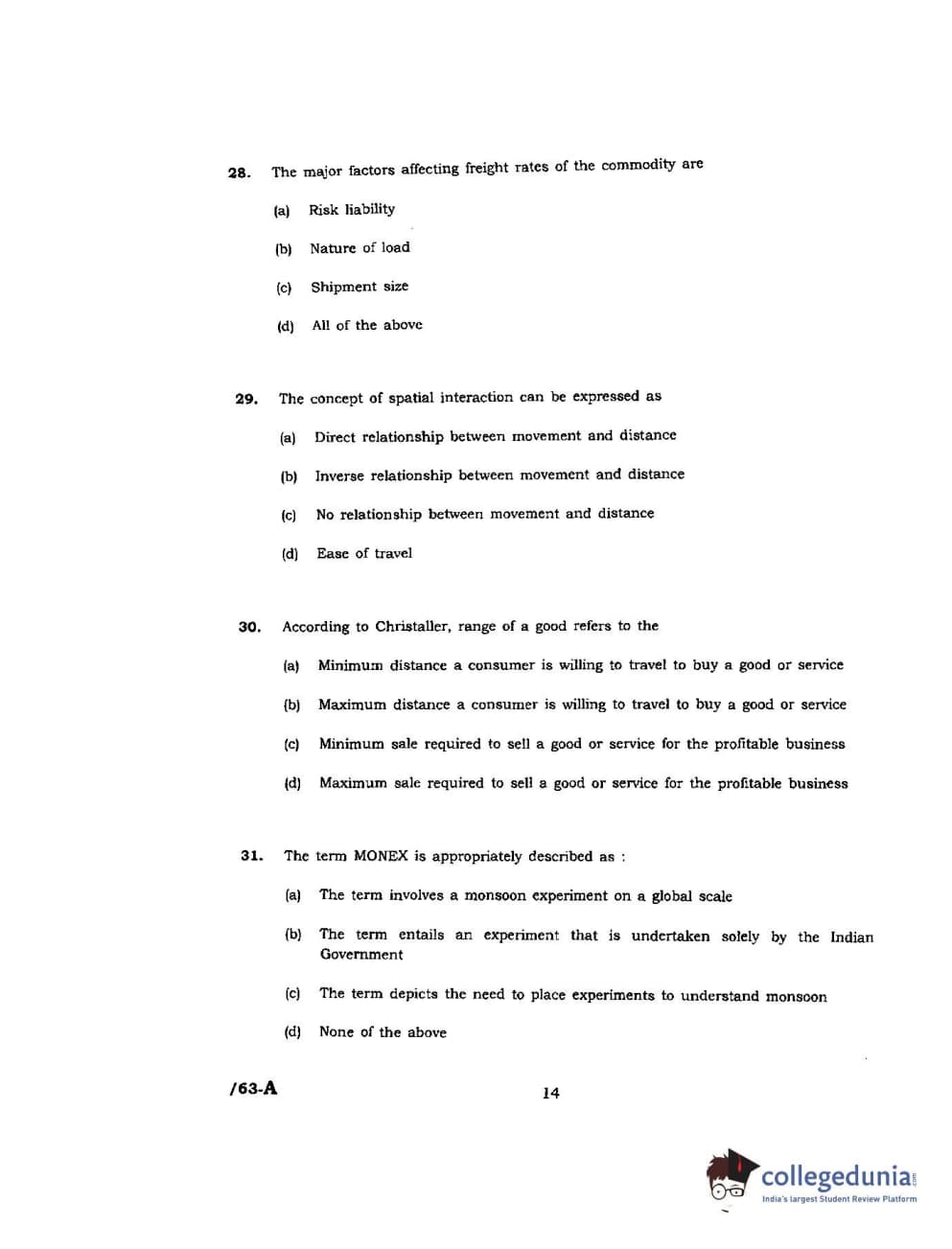 JNUEE 2017 M.A Geography Question paper with answer key pdf is available for download. The exam was successfully organized by Jawaharlal Nehru University (JNU). The question paper comprised a total of 66 questions.